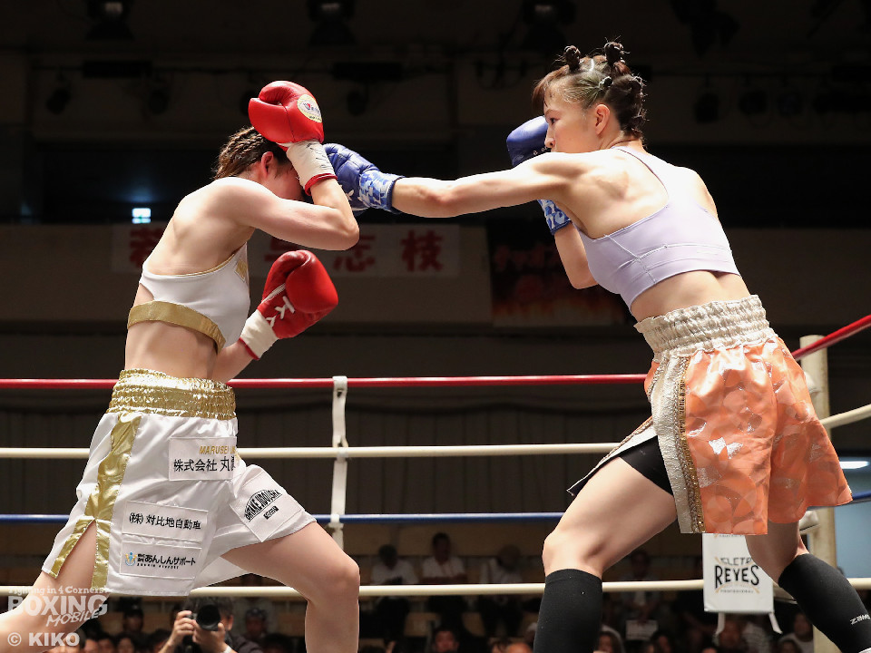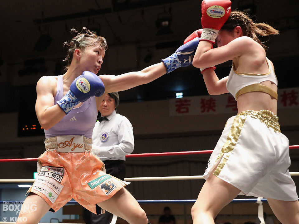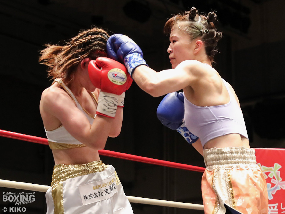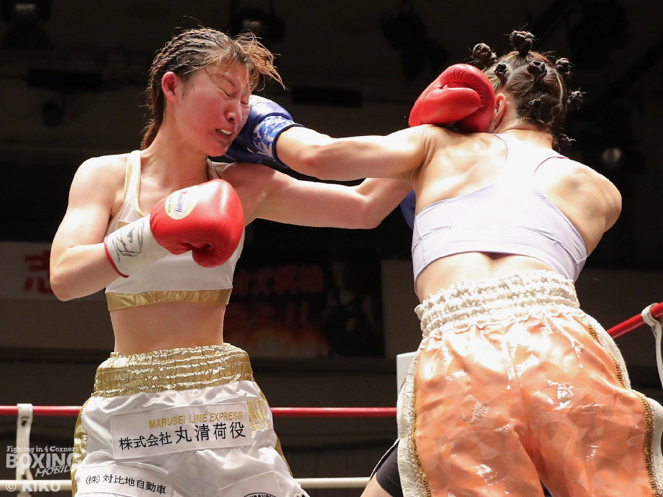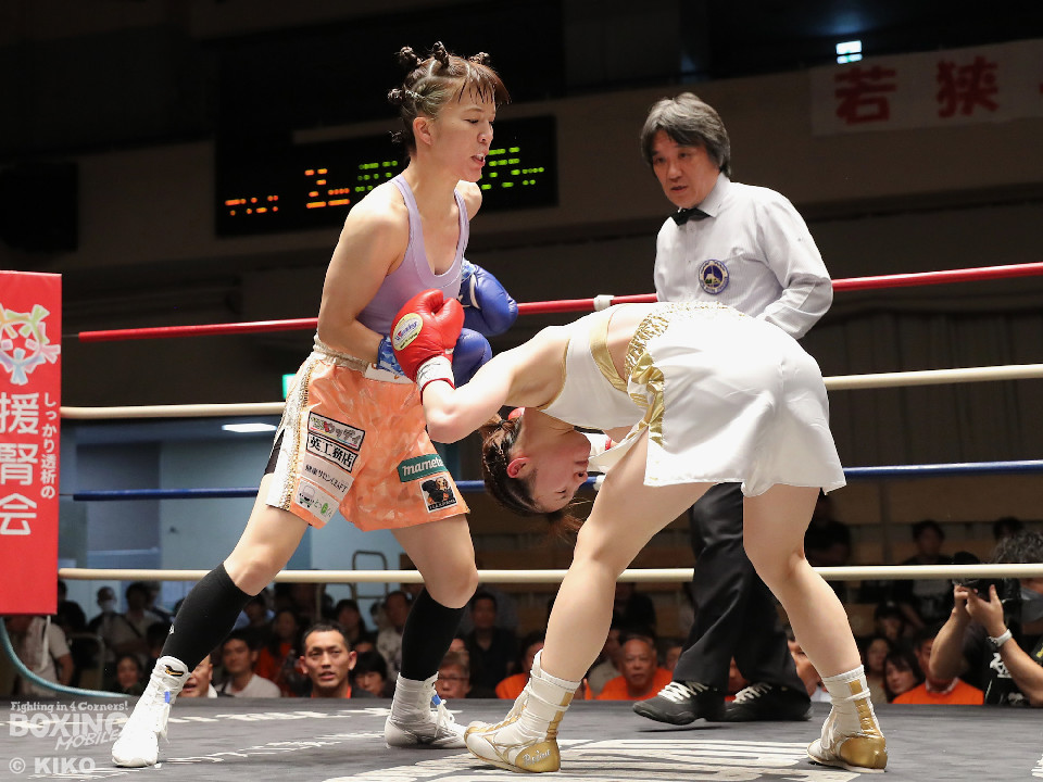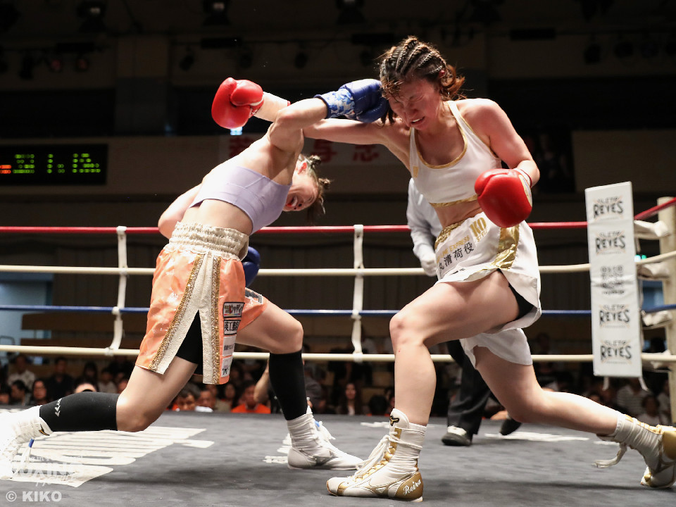 試合:ジャブの差し合いからスタート。中間距離でし烈ペース争いを繰り広げる中、守随の単発の左がヒット。2回、小林が上下の揺さぶりをかけながらワンツーを狙えば、守随もリターンの右で譲らず。3回、小林はヘッドバッティングの反則で減点1。その後は、距離がかみ合わない中、守随がパンチをまとめて攻勢をアピール。4回、頭がぶつかり我慢の展開が続く中、守随が折々でワンツーを好打。5回、再び頭がぶつかると鼻をぶつけた守随に対し、レフェリーは30秒の休憩を与えた。6回、右ストレートを交錯させるが、距離がかみ合わず。それでも守随が左右をまとめてジャッジに攻勢を印象付けた。守随が今年5月以来の再起戦を飾った。
