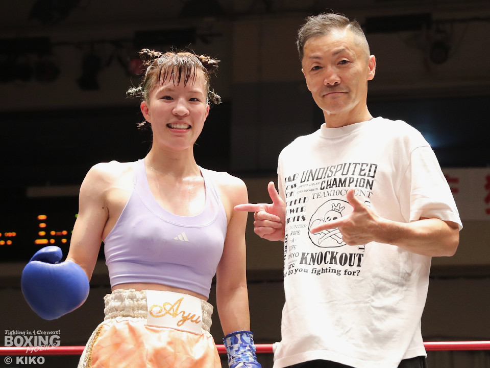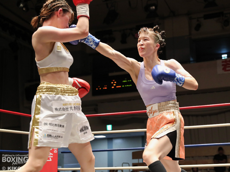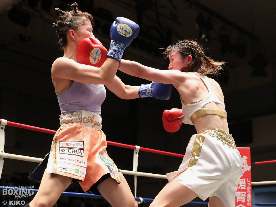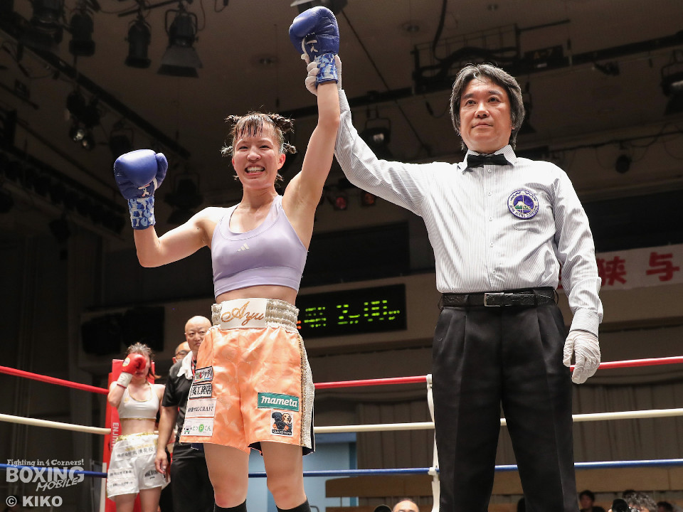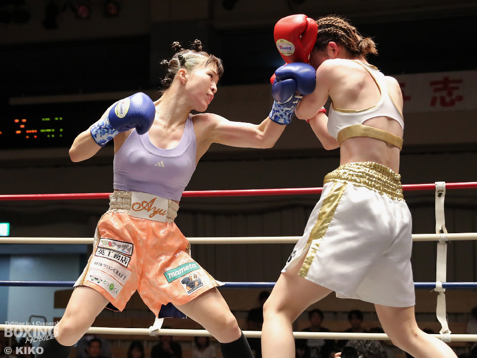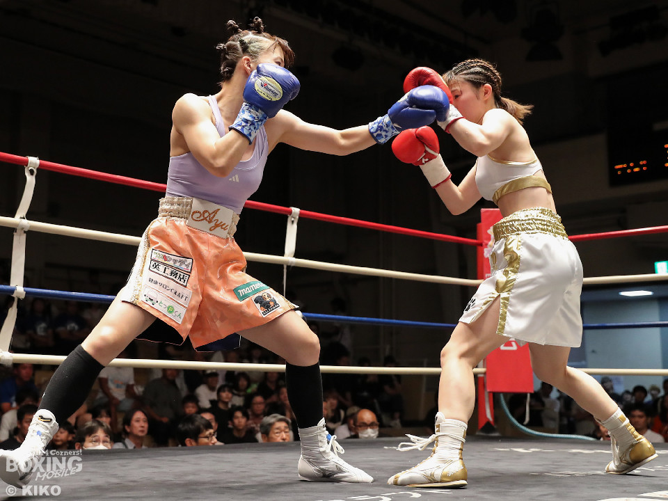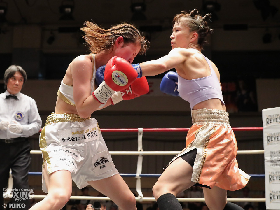 試合:ジャブの差し合いからスタート。中間距離でし烈ペース争いを繰り広げる中、守随の単発の左がヒット。2回、小林が上下の揺さぶりをかけながらワンツーを狙えば、守随もリターンの右で譲らず。3回、小林はヘッドバッティングの反則で減点1。その後は、距離がかみ合わない中、守随がパンチをまとめて攻勢をアピール。4回、頭がぶつかり我慢の展開が続く中、守随が折々でワンツーを好打。5回、再び頭がぶつかると鼻をぶつけた守随に対し、レフェリーは30秒の休憩を与えた。6回、右ストレートを交錯させるが、距離がかみ合わず。それでも守随が左右をまとめてジャッジに攻勢を印象付けた。守随が今年5月以来の再起戦を飾った。