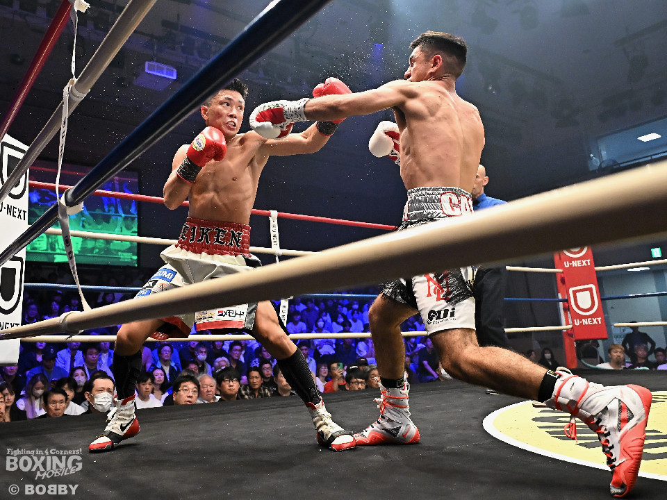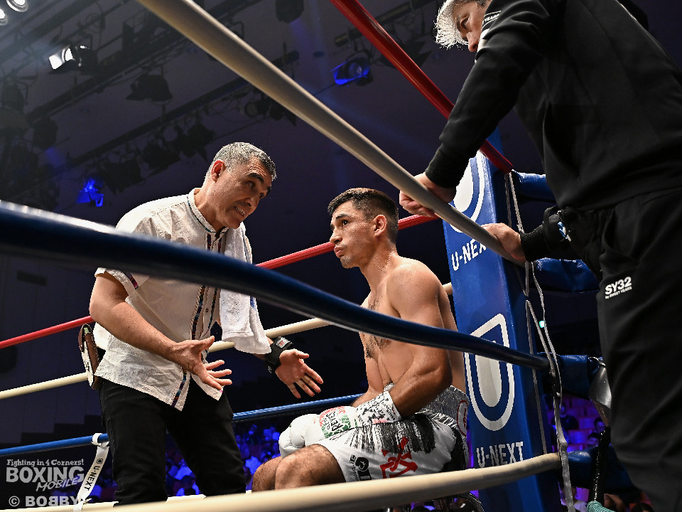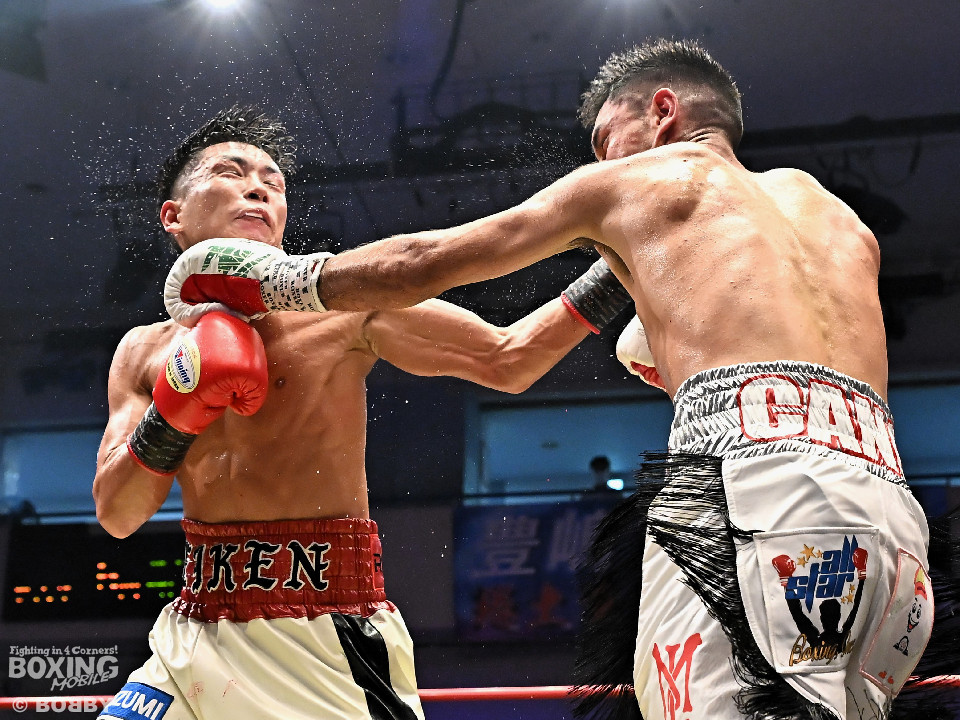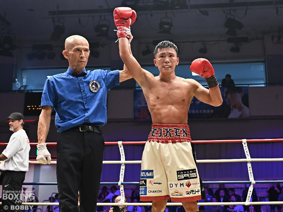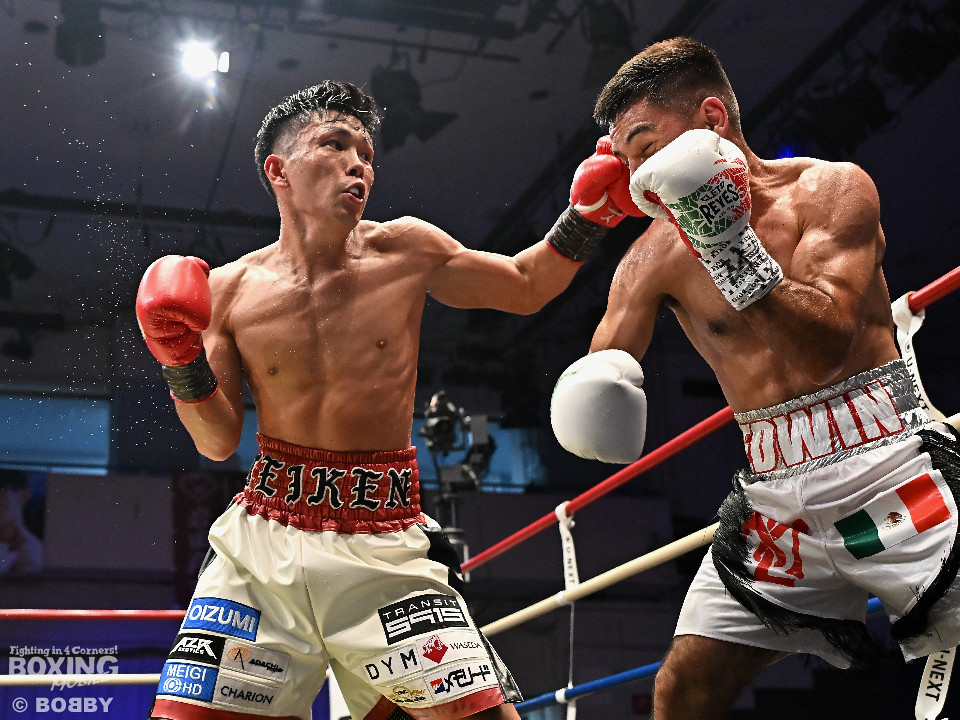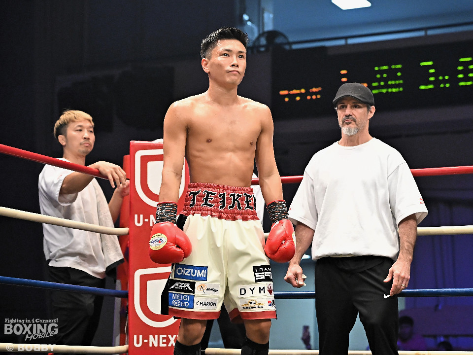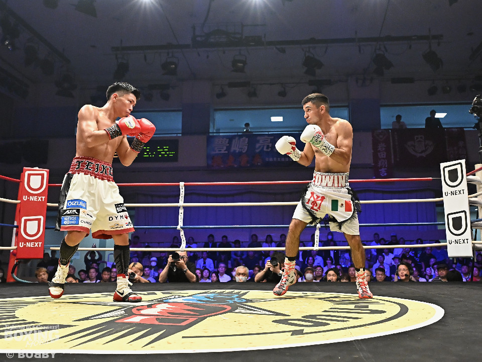 試合:岩田が今年3月の世界戦以来の再起戦のリングに上がった。拳を交えたのは世界ランカーのカノ。会場がピーンと張り詰める中、岩田が右ボディストレートを差し込み先制攻撃。2回、サウスポーのカノはサークリングしながらジャブを飛ばすが岩田は冷静に対応。3回、岩田は攻め急がずプレスをかけて左ボディを好打。足を使いながら回るカノだが、少し苦しくなってきたか。5回、岩田はワンツーを叩き込むと積極的な攻撃を展開。時折、左フックを返したカノだがパワーレスの印象。6回、岩田は右ボディアッパーを突き刺すと手数を増やして攻勢。守勢を強いられたカノは、肩で息をしながらなんとか返す状態。カノは偶然のバッティングで前頭部をカット。7回、岩田は距離を詰めて右ボディアッパーで痛烈に倒すとレフェリーは10カウントを数えた。岩田がKO勝ちで復活を遂げた。