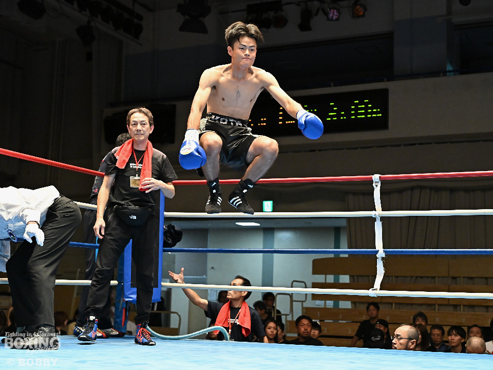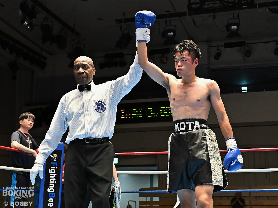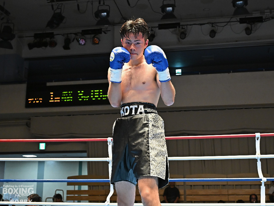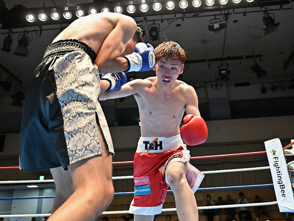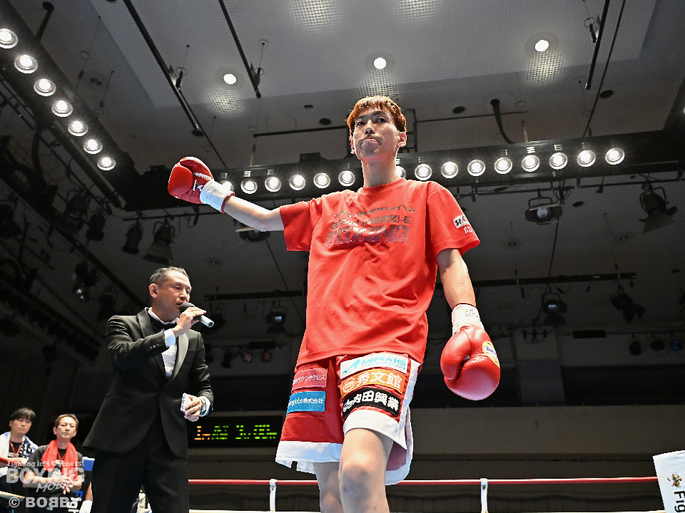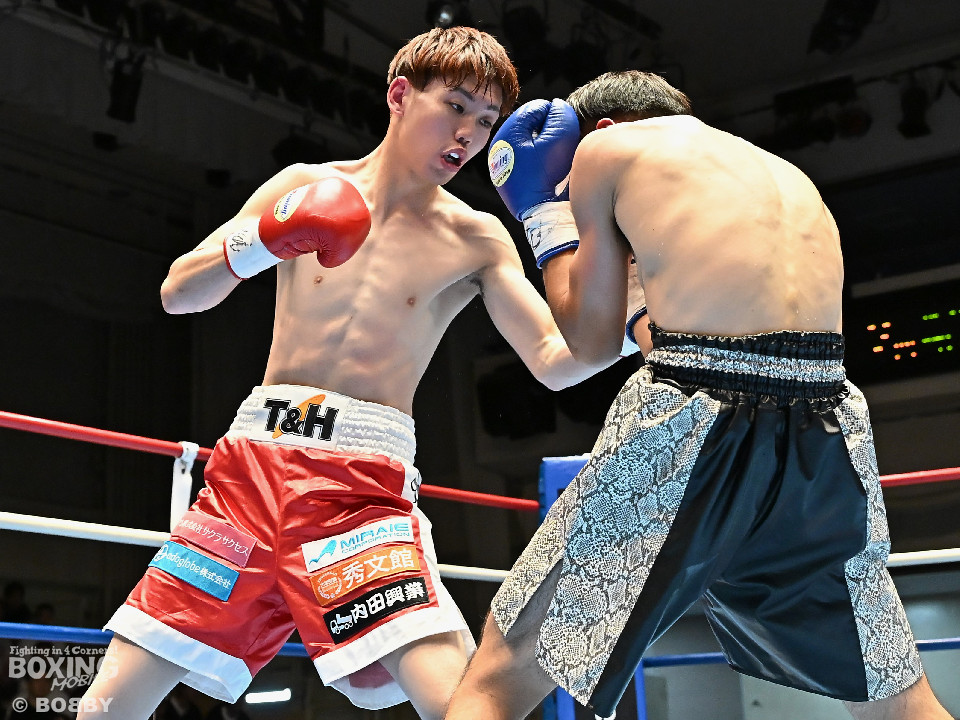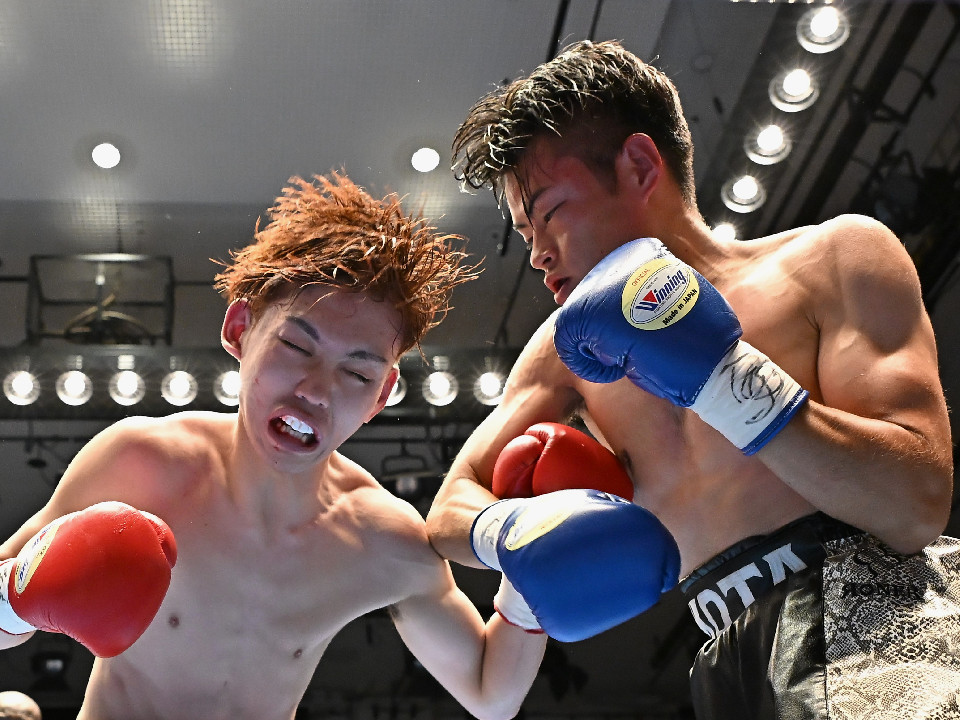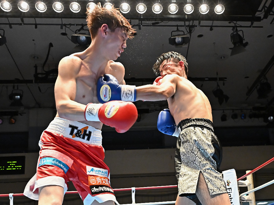 試合:今治が独特のリズムで右ストレートから切り込むが、永瀬は右ストレートを合わせると、ワンツーを再三決めてペースを掌握。2回、今治は前進しながら左フックで膝を揺らすと得意の乱打戦に持ち込む。距離を取りワンツーを返した永瀬だが、相手のしつこさに手を焼いた。3回、今治は豊富な手数で押し込みアグレッシブな姿勢。永瀬は要所でワンツーをヒット。4回、永瀬は右ボディストレートを差し込むが、勢いを止めるまでには至らず。今治は最後まで馬力を活かして攻め立てた。ジャッジ2者の支持を得た今治がB級昇格を決めた。