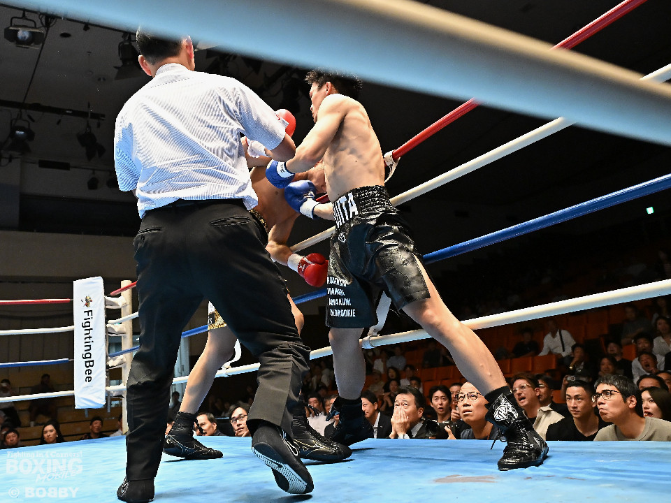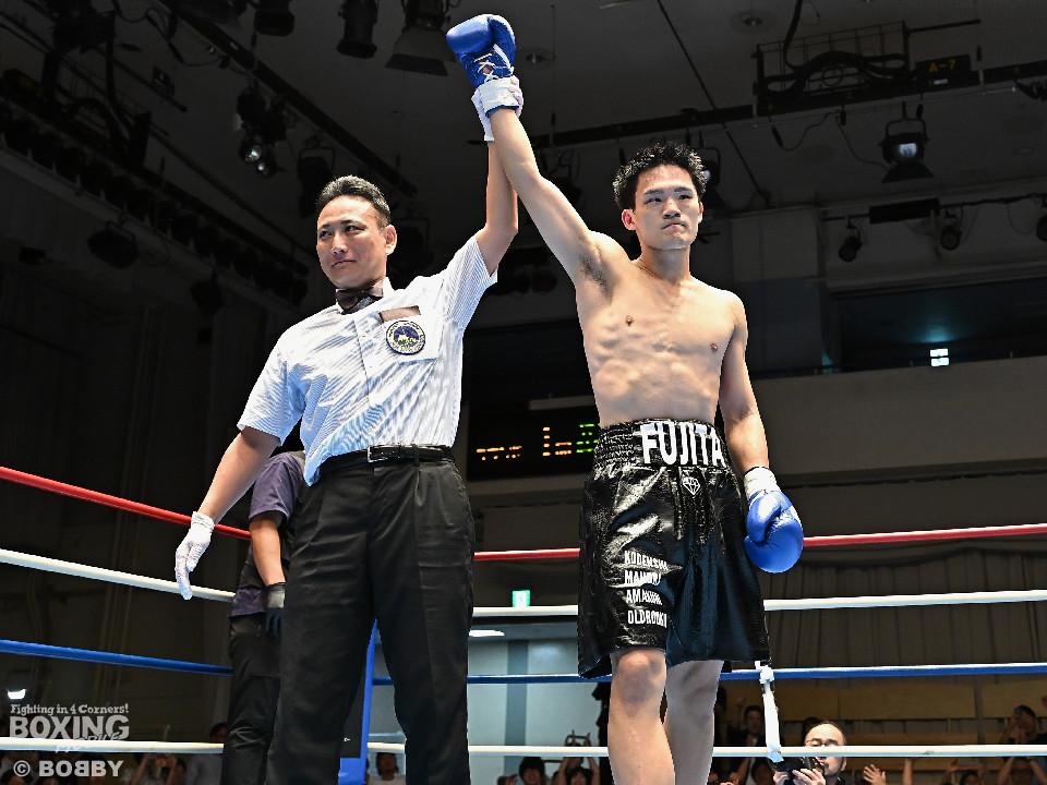 試合:前日本王者の藤田とランキング入りを狙う小林の対戦した。小林がジャブを飛ばしてワンツーを狙うが藤田は右フックを叩きつけてダウンを奪った。立ち上がった小林は強気の姿勢を見せてグイグイと攻めるとワンツーで効かせて猛追。喧嘩を買った藤田は真っ向から応戦。火が出るような打ち合いで会場がヒートアップする中、サウスポーにスイッチした藤田は右フックでグラっとさせるとレフェリーが割って入った。藤田が初回KO勝ちで再起に成功した。