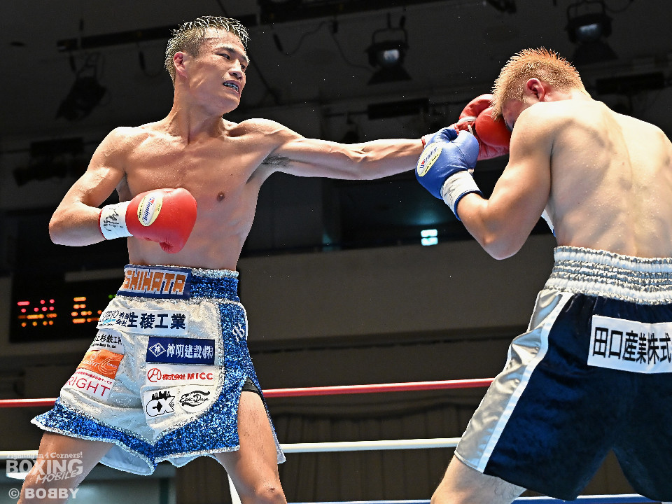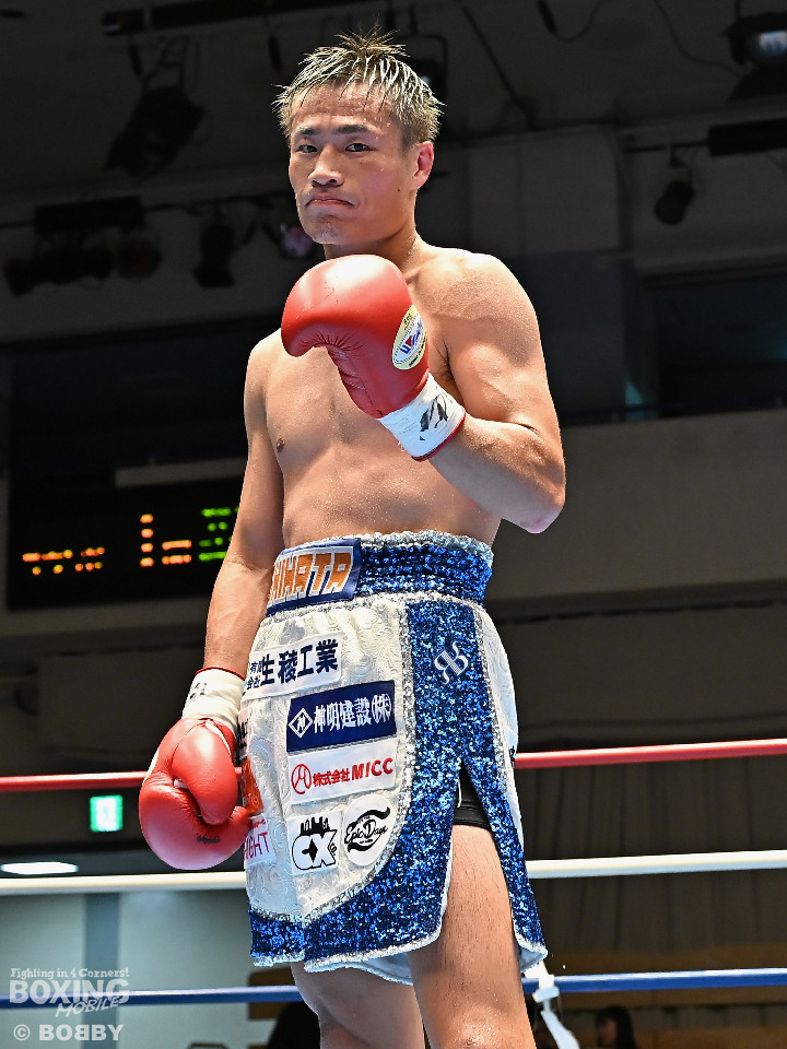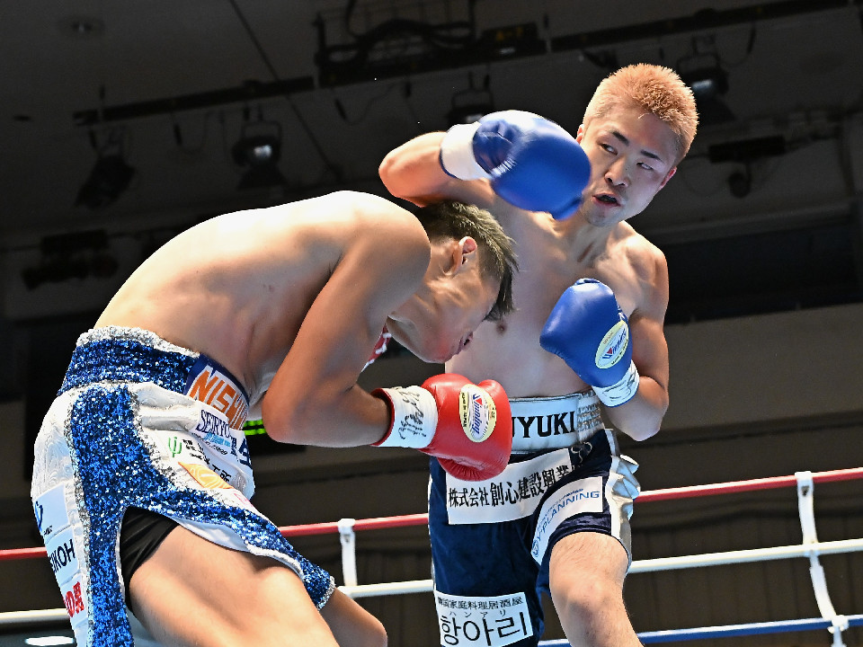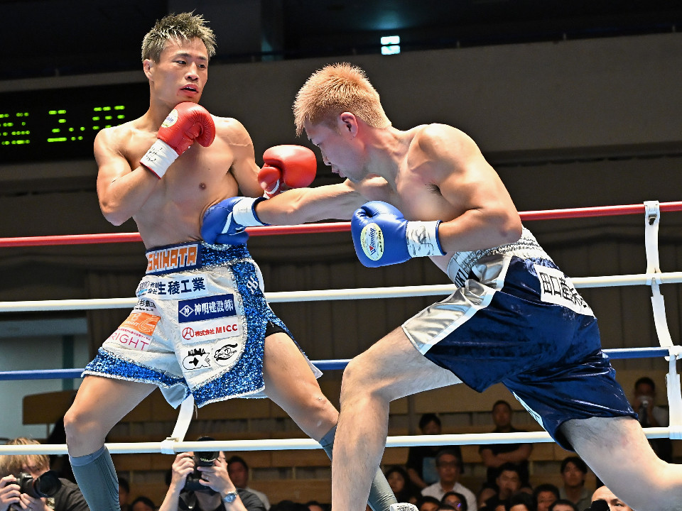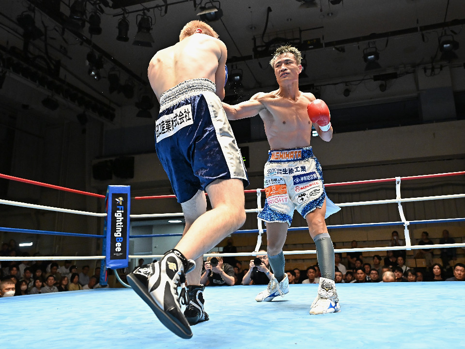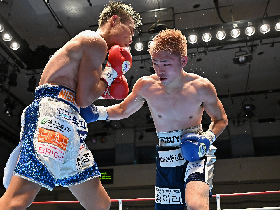 試合:西畑は右フックを強振すると上下に打ち分け先制攻撃。後手に回った佐藤だがコツコツとボディに返した。2回、西畑はボディに叩き込みハイペースに攻め込む。佐藤は耐えながらも左ボディを突き刺した。3回、佐藤は粘り強くボディに集めるが、ペースを取り切るまでには至らず。4回、西畑は左右フックでグイグイと攻め立てると佐藤も真っ向から応戦。ここは西畑が馬力で押し切った。5回、佐藤はプレスをかけて右ボディストレートで反撃。打ち合いを嫌った西畑は距離を取りジャブから組み立てた。6回、西畑は足を使いながらワンツーをヒット。7回、西畑は前後の動きを意識しながらワンツーを再三ヒット。佐藤は苦しくなってきた。8回、佐藤は左ボディから手数を増やして驚異の粘りを見せて山場を作った。西畑が大差判定勝ちで再起戦を飾った。