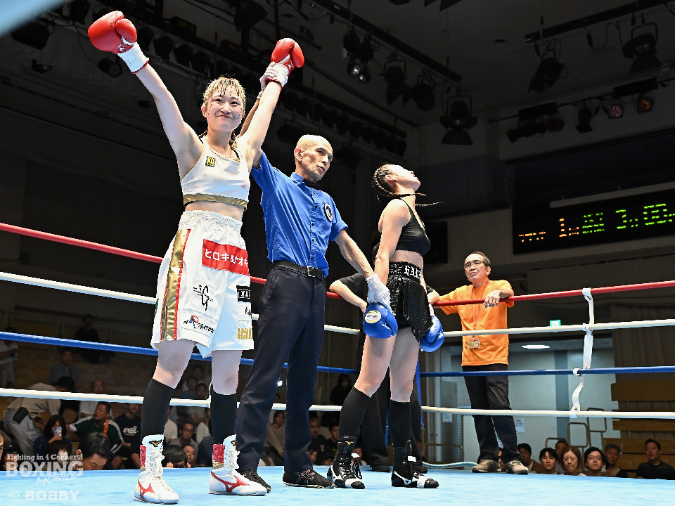 試合:サウスポー樋口が足でリズムを取りながらワンツーで積極的な攻撃。2回、アダムスはジャブから右ストレートにつなげるが樋口は冷静に対応。単発の左ストレートをヒット。3回、樋口は左ストレートで右目上を切り裂くとプレスをかけてポイントを加点。5回も樋口はフットワークを駆使しながら丁寧なボクシングでペースを維持。6回、アダムスはワンツーを繰り出し逆転を狙う。しかし樋口は、リズムを保ちペースを渡さなかった。1年ぶりのリングの樋口が連勝を飾った。