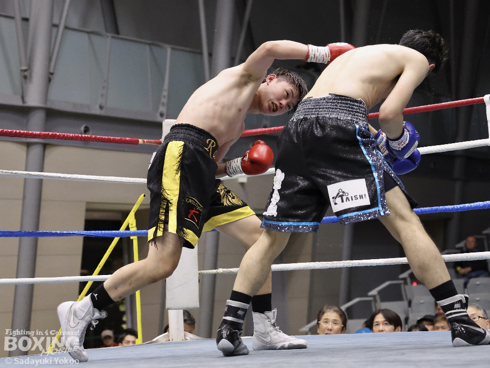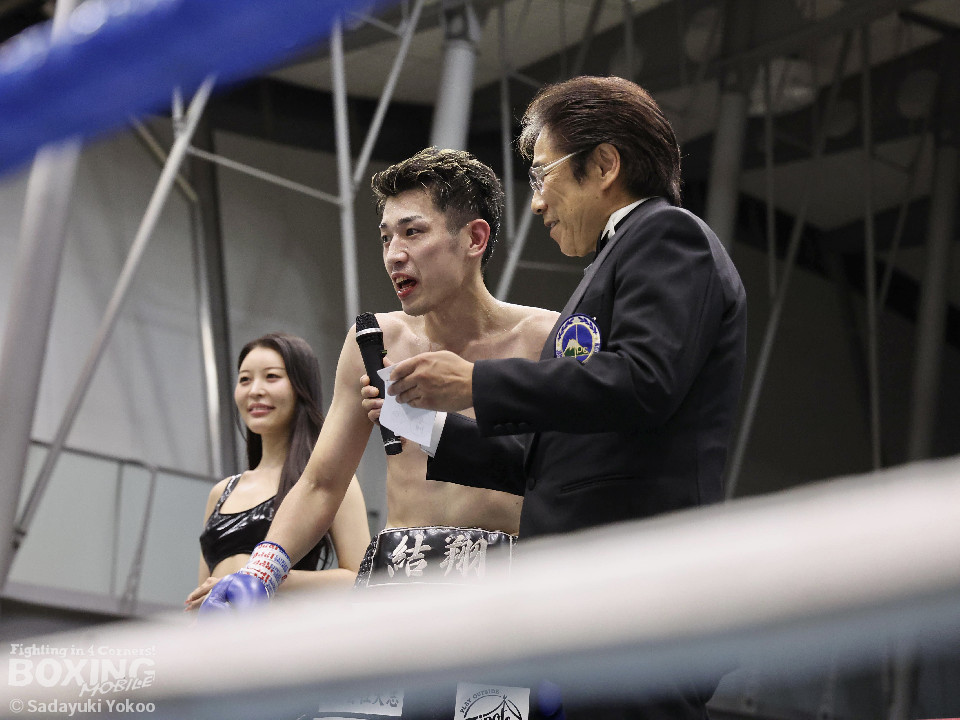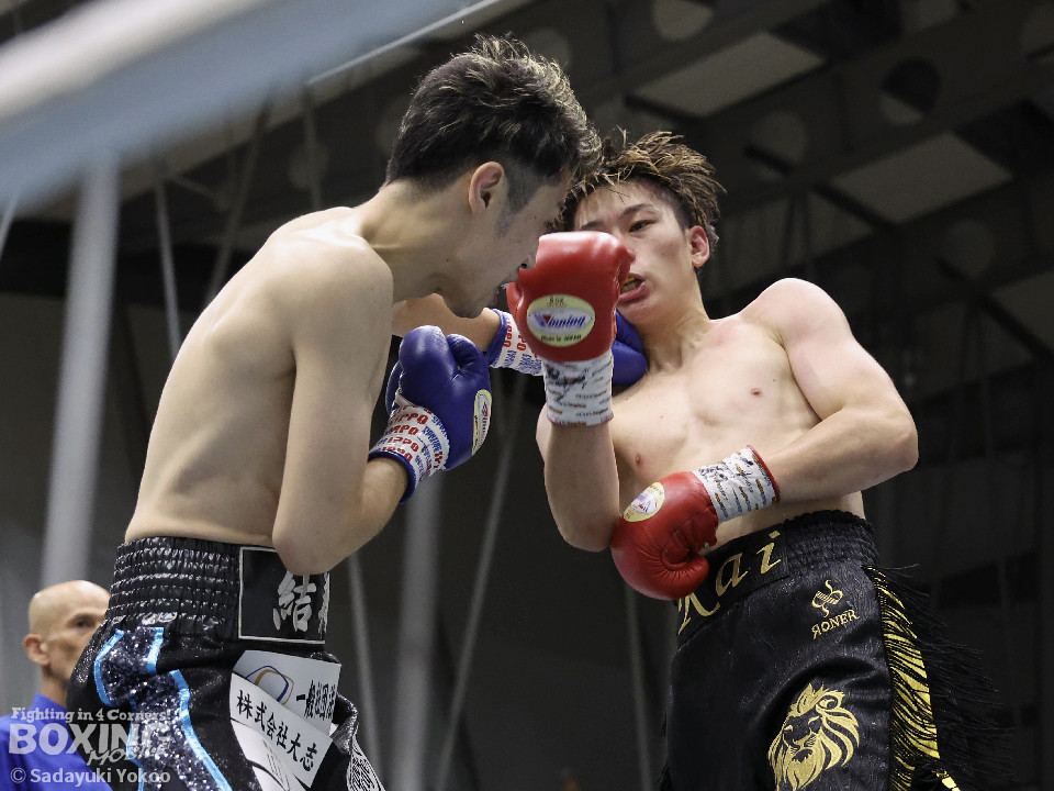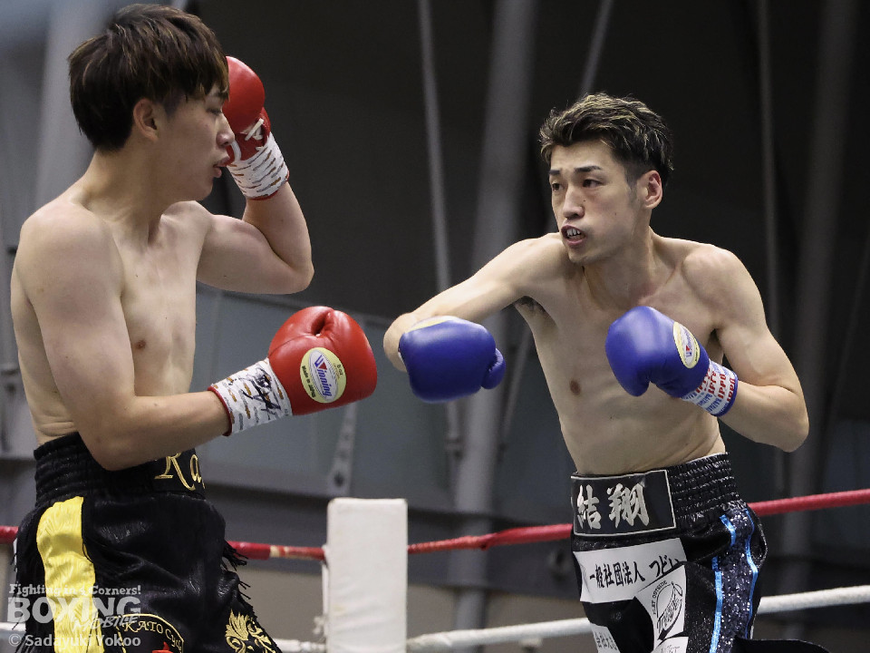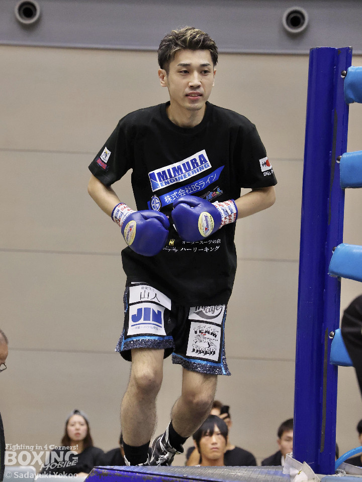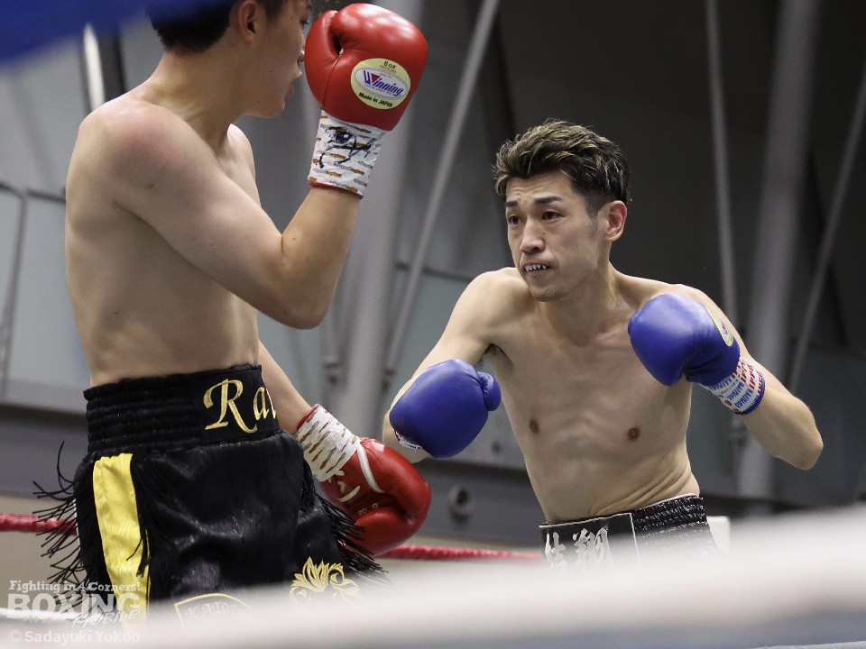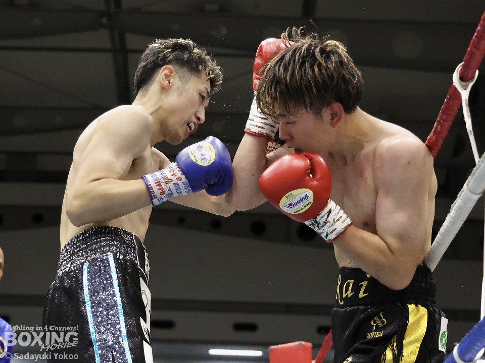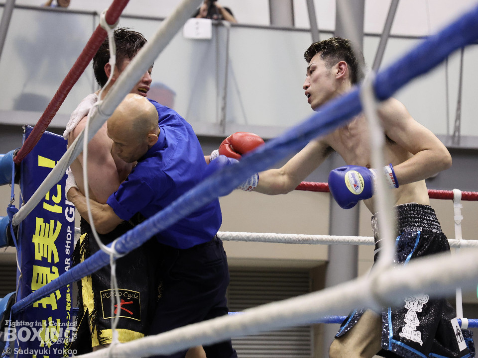 試合:初回、加藤がキレのあるワンツーを先制、対する中里も右ストレートを返し対抗。2回〜3回、加藤が上体を柔らかく動かしながらアッパーをねじ込み、中里は距離を詰め右ストレートを返し、一進一退の攻防を繰り広げる。4回、中里の右ストレートが炸裂!ダウンを先取、立ち上が上がった加藤だがダメージは隠せず、チャンスと見た中里が一気にラッシュをかけレフェリーストップでTKO勝利を手繰り寄せた。5日後に37歳の誕生日を迎える自身、初のTKO勝利を喜んだ。