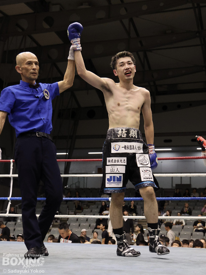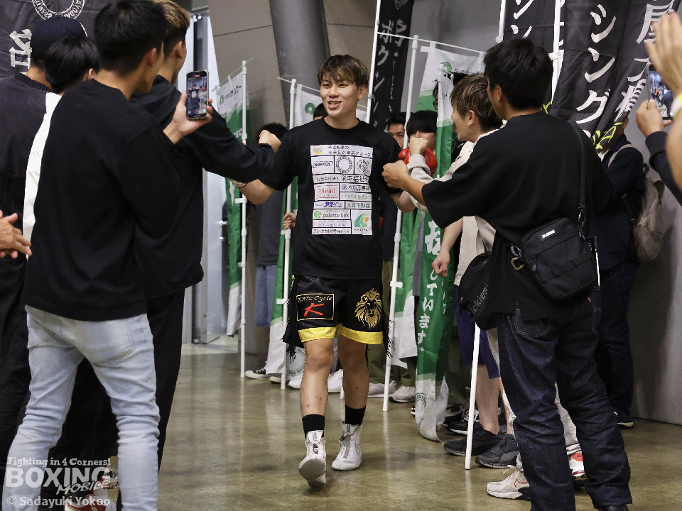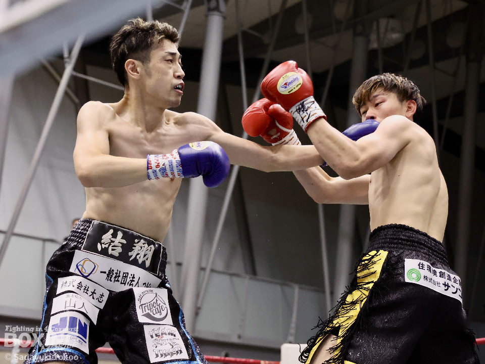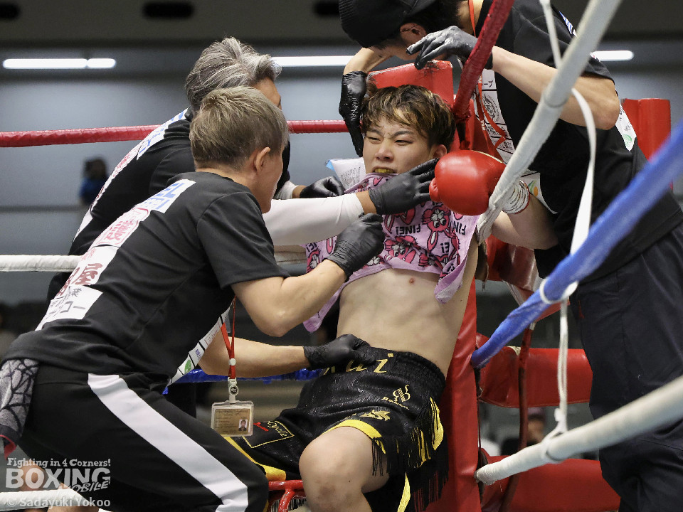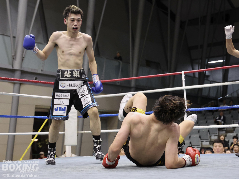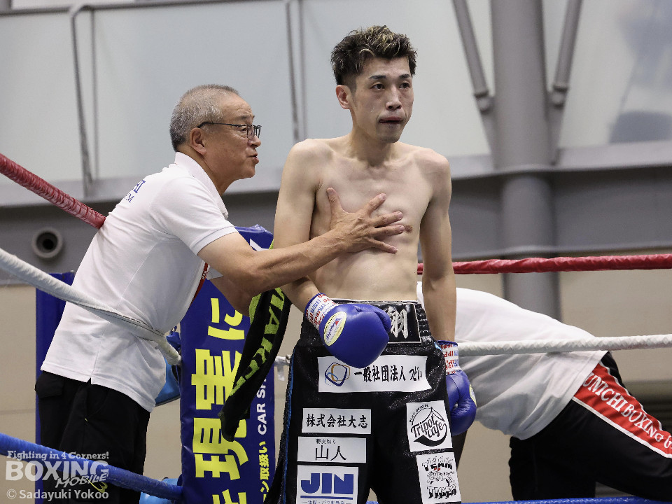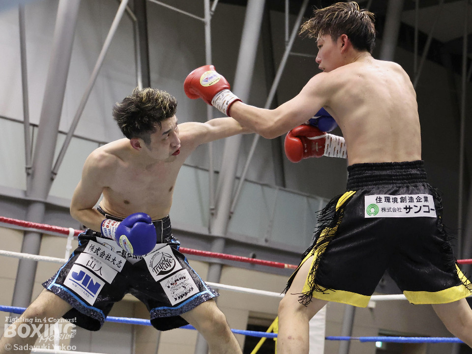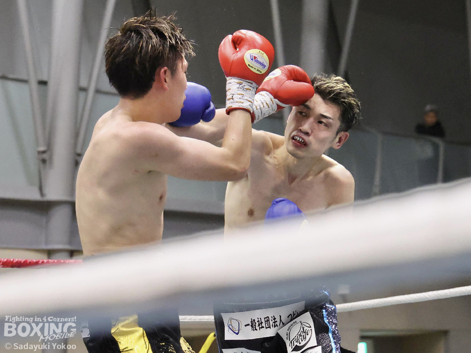 試合:初回、加藤がキレのあるワンツーを先制、対する中里も右ストレートを返し対抗。2回〜3回、加藤が上体を柔らかく動かしながらアッパーをねじ込み、中里は距離を詰め右ストレートを返し、一進一退の攻防を繰り広げる。4回、中里の右ストレートが炸裂!ダウンを先取、立ち上が上がった加藤だがダメージは隠せず、チャンスと見た中里が一気にラッシュをかけレフェリーストップでTKO勝利を手繰り寄せた。5日後に37歳の誕生日を迎える自身、初のTKO勝利を喜んだ。