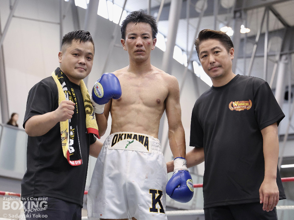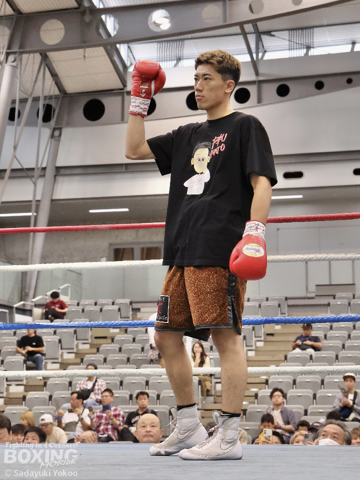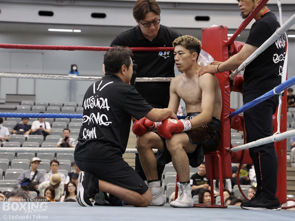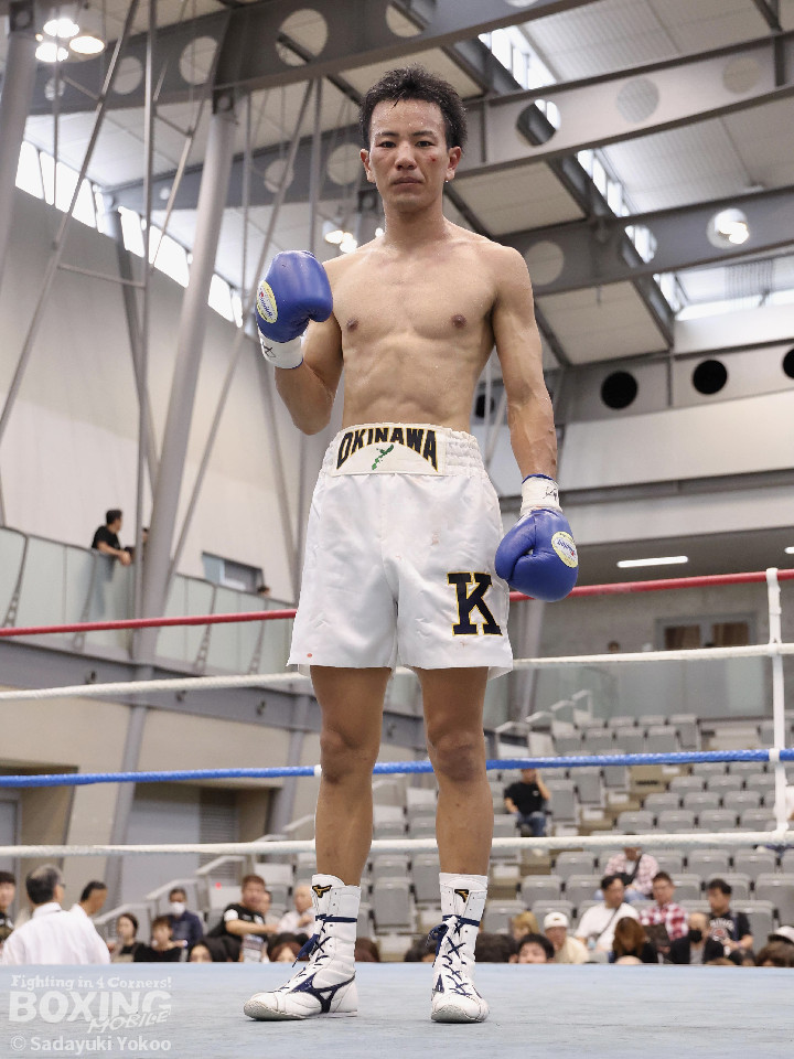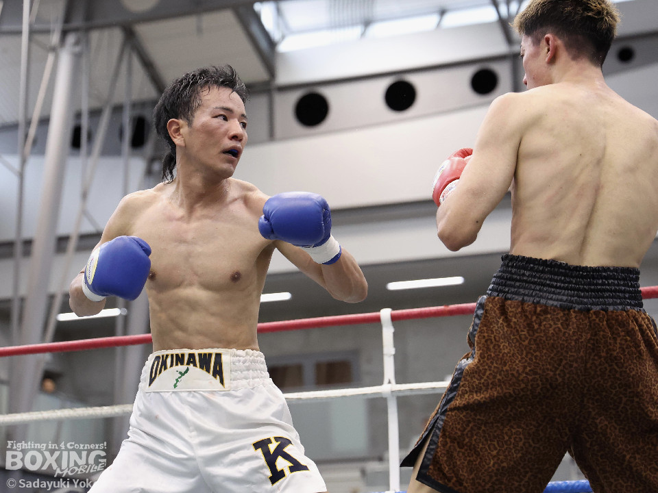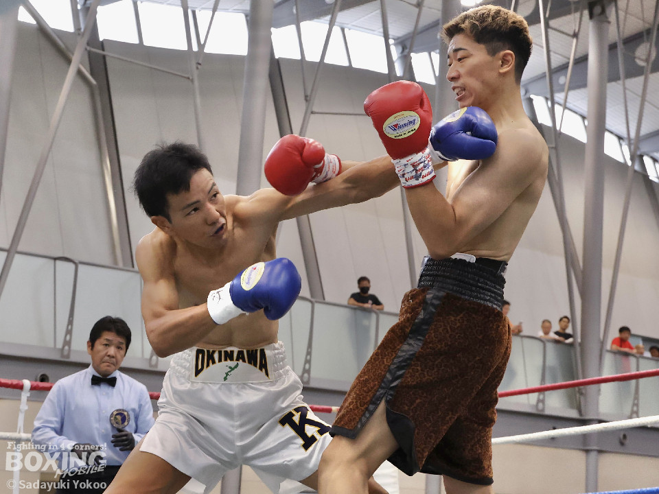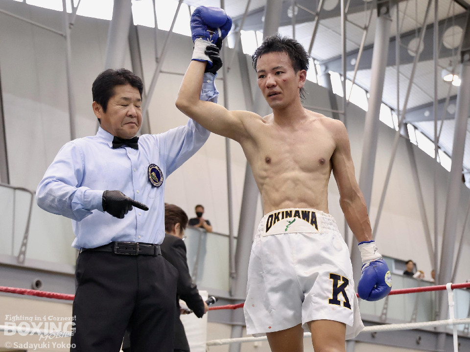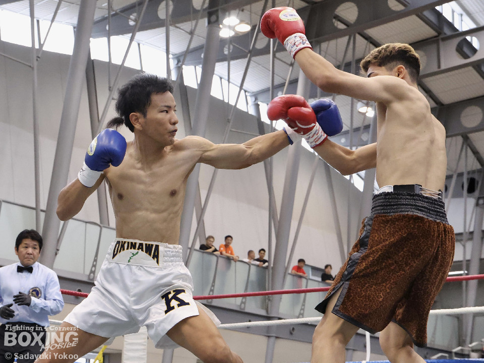 試合:仲里が左で距離を測り右フックへ繋げ、対する加藤はジリジリとプレスをかけワンツーを放つ。2回、このラウンドは距離の探り合いに、仲里の右ストレートが顔面を捉え、この回の優勢をアピール。3回、加藤がキレのあるジャブからワンツーで距離を突き放し、仲里がプレスをかけ左右のフックを強振し対抗。4回、仲里が飛び込みの左フックからコンビネーションへ繋げる。加藤がワンツーで応戦するも、やや疲れが見える。最終5回、加藤がワンツーで的確にヒットを重ね、仲里は左右の連打でプレスをかけ続ける。勝負の決着は採点へ。終始プレスをかけ攻め続けた仲里が3者の支持を得て、勝利を掴み取った。
