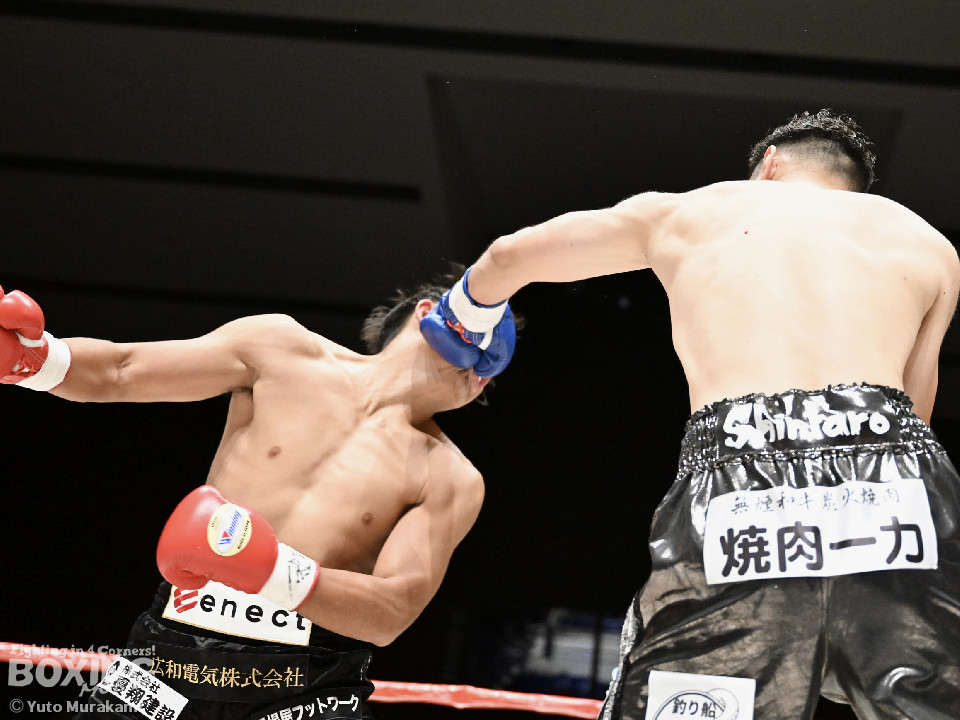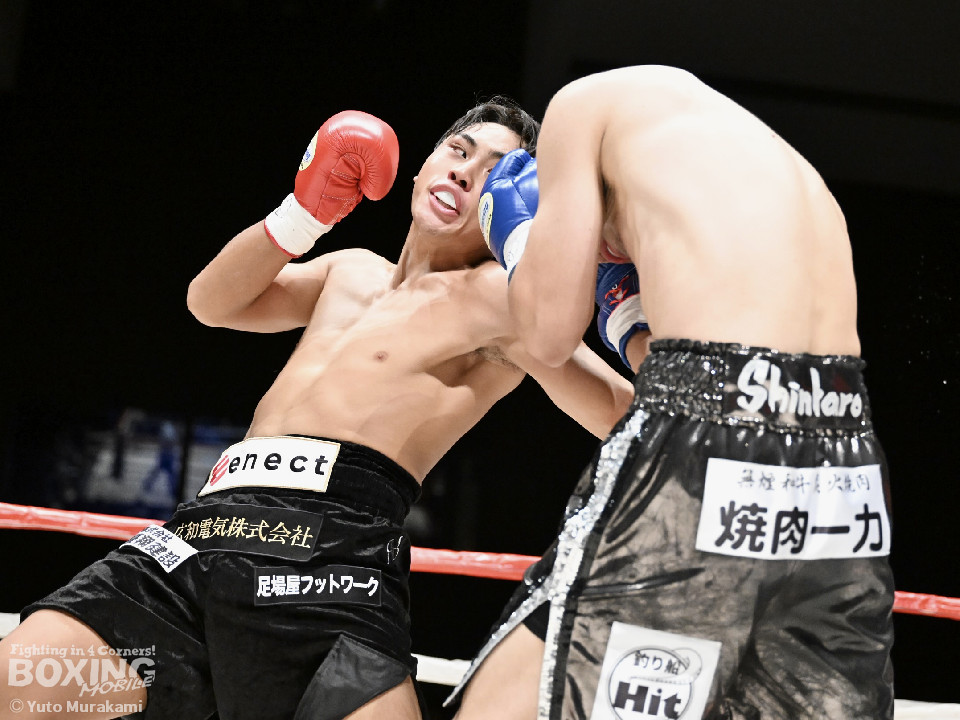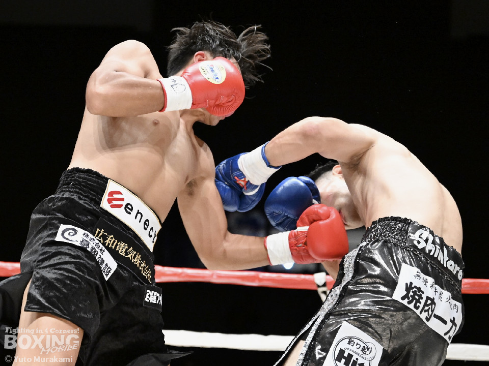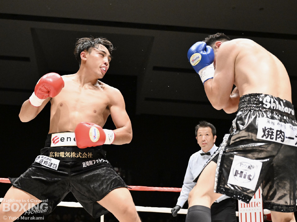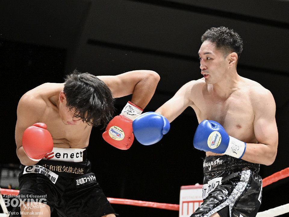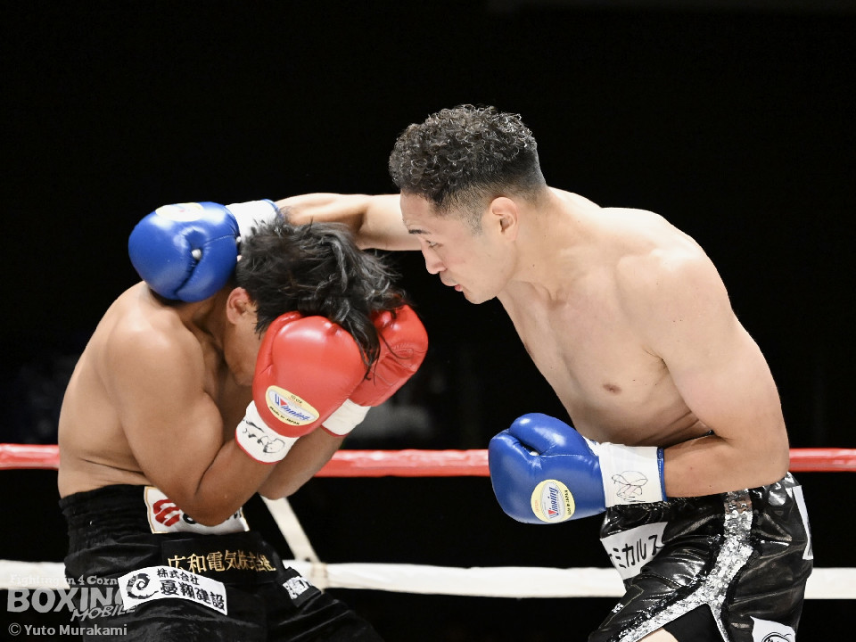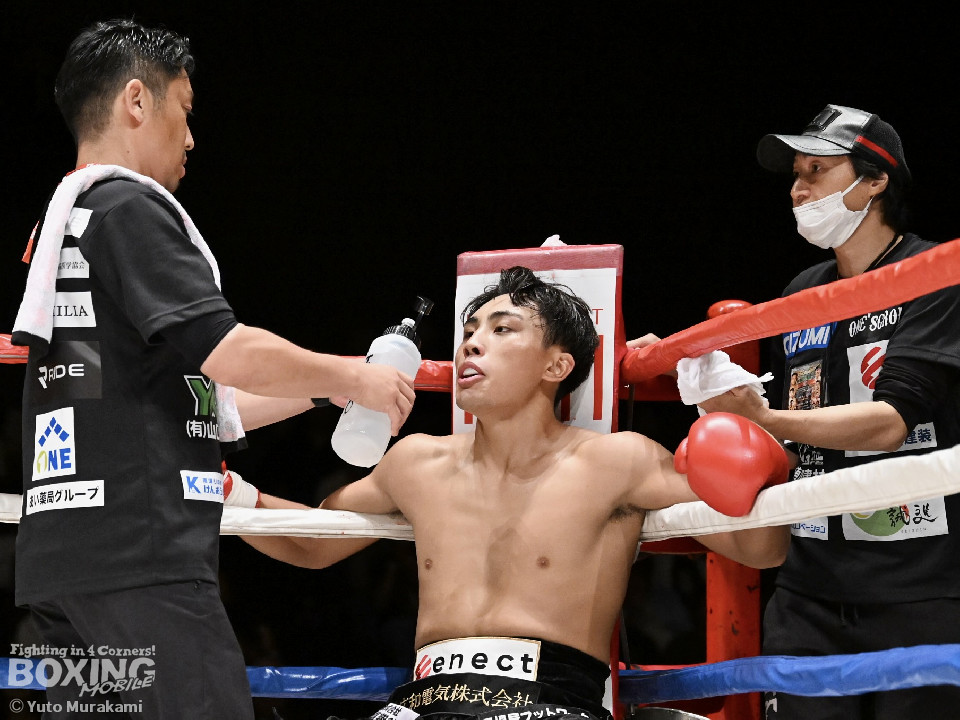 試合:日本ミドル級6位の可兒に元日本ランカーの大島が挑んだ。開始早々、大島が左右フックで仕掛けるが可兒はガードとボディワークで回避。可兒は左ボディを突き刺すと中間距離の打ち合いに発展。ラウンド終了間際、可兒は右フックを振り抜きダウンを奪った。2回、可兒は右ショートで2度目のダウンを奪取。再開後、パンチをまとめてレフェリーストップに持ち込んだ。可兒が今年7月以来の再起戦を飾った。