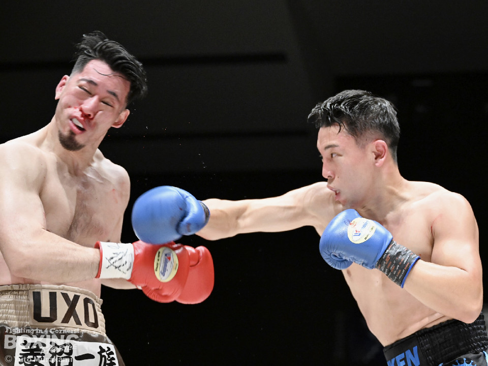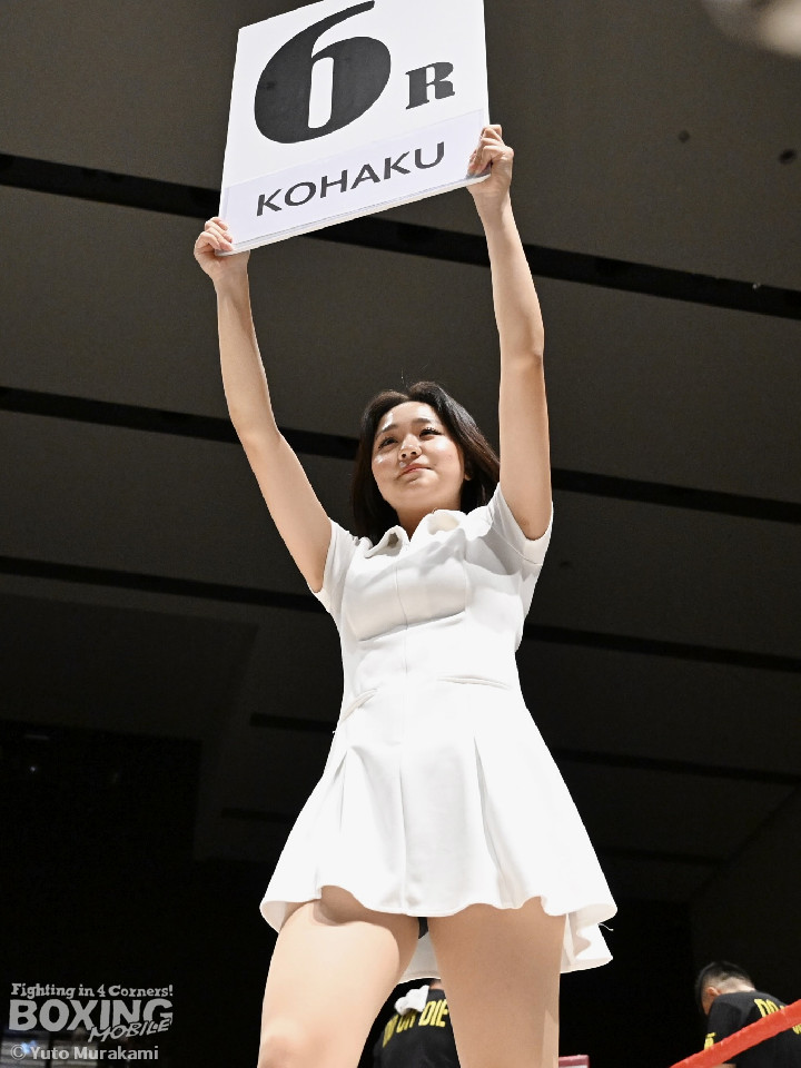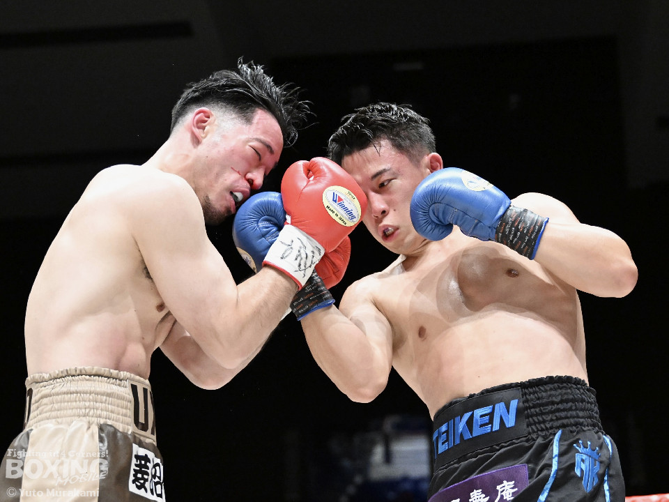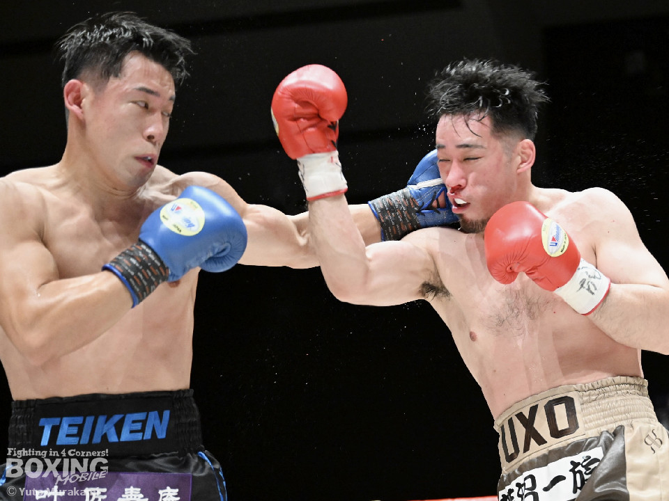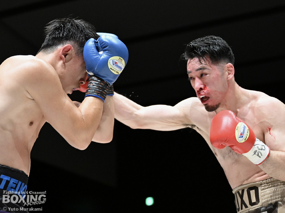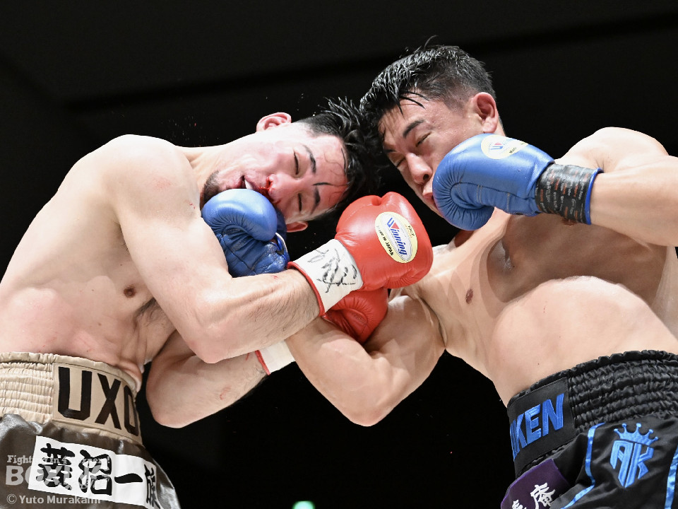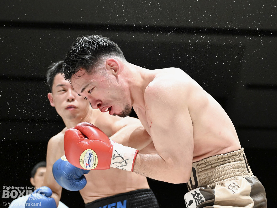 試合:荒本がシャープなジャブから左ボディを好打しリズムを構築。2回、酒井は右フックを叩きつけて反撃。しかし、荒本はここは引くまいと強気の姿勢で打撃戦に突入。3回、酒井はグイっと前に出てボディにパンチを集めるが、荒本は左ボディ、右ショートをねじ込みジャッジに攻勢をアピール。4回、荒本がテンポアップ。ワンツーで顔を弾くと上下のコンビネーションをヒット。鼻血を流した酒井だが、気迫あふれるファイトで食い下がった。5回、酒井はしつこく距離を潰してボディへの細かい連打。このラウンド、荒本はやりにくそう。6回、荒本はもう一度リードから組み立てると左ボディを好打。続く回も荒本が強弱をつけた左で優勢を印象付けた。8回、荒本は右カウンター、左ボディを痛打。最後まで気持ちを見せた酒井を振り切った。荒本がランカー対決を制した。お互いの気持ちがぶつかり合った戦いに会場から大きな声援が送られた。