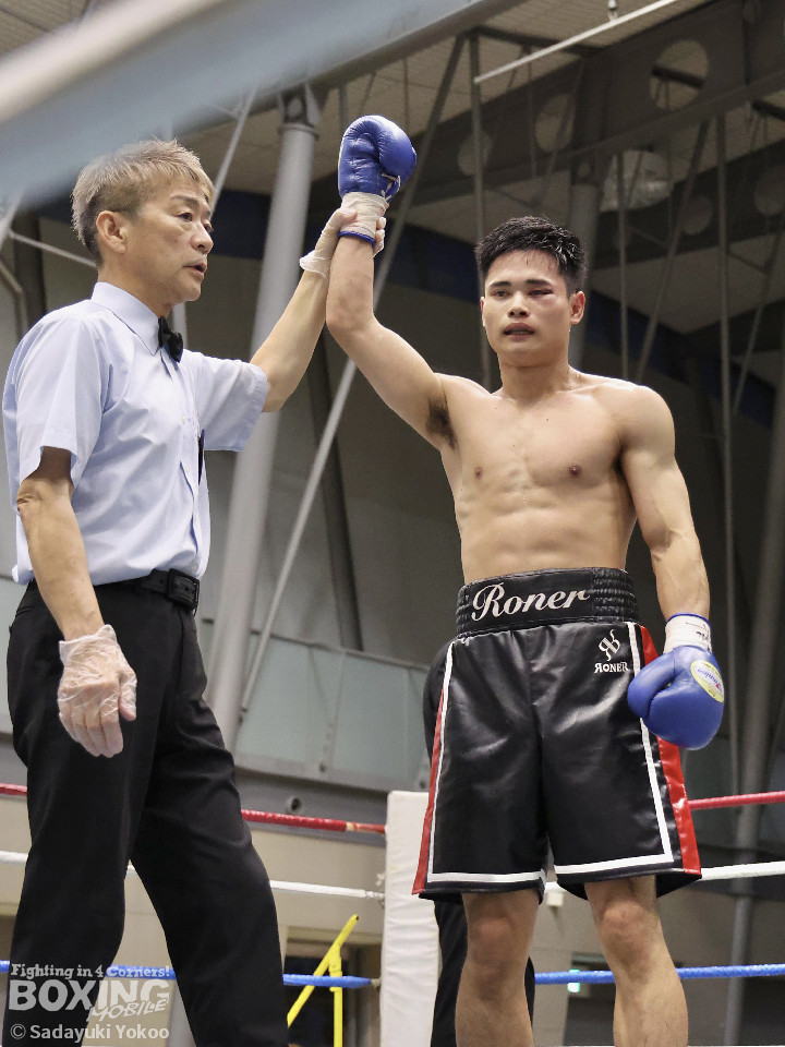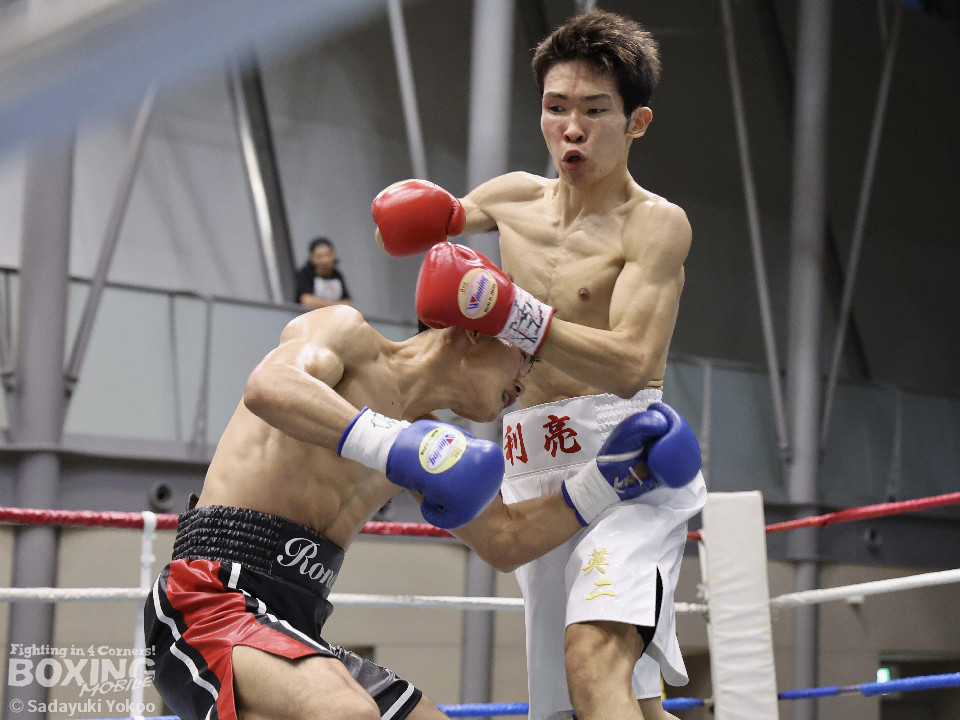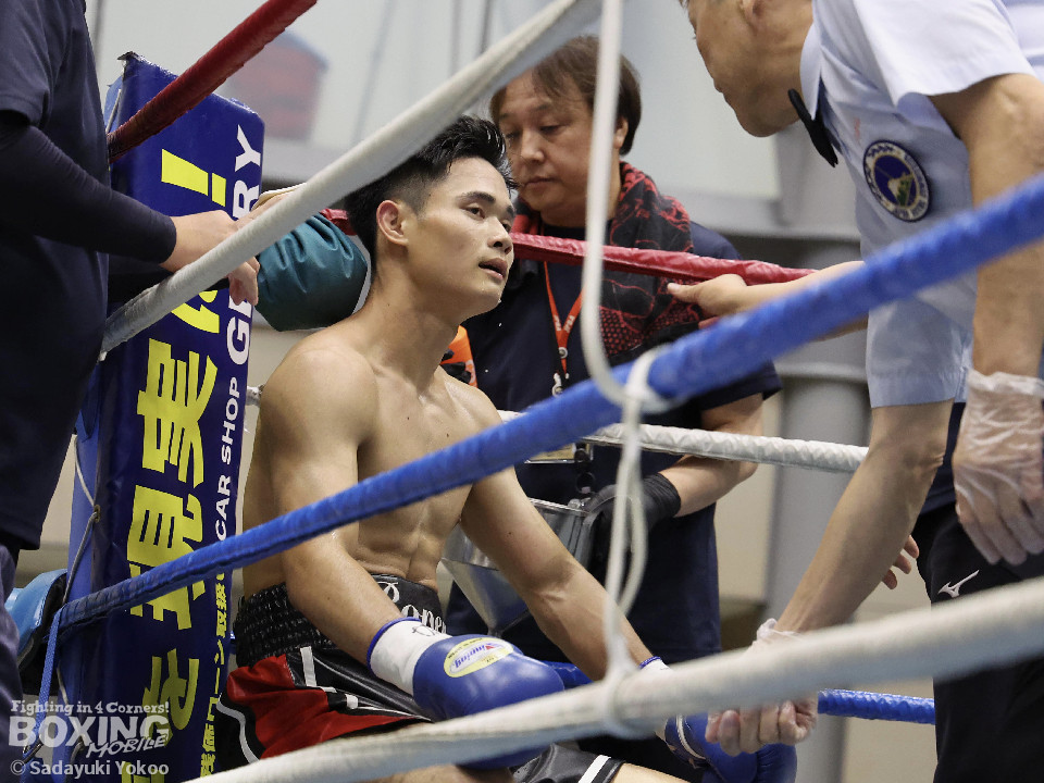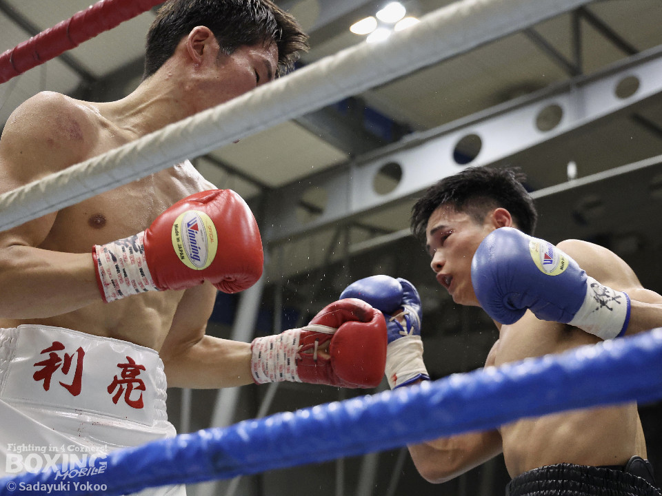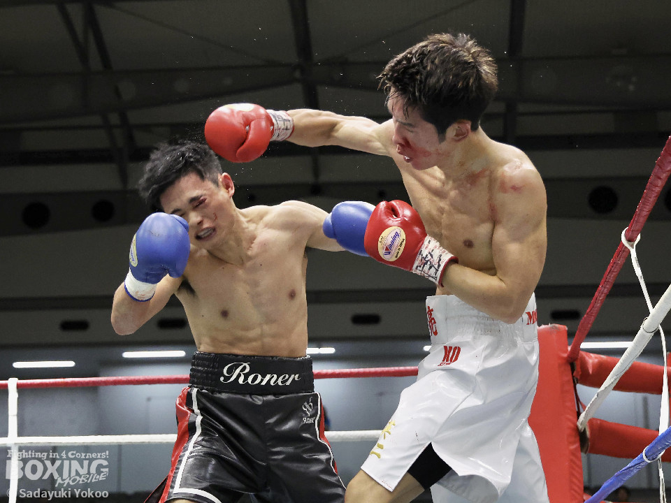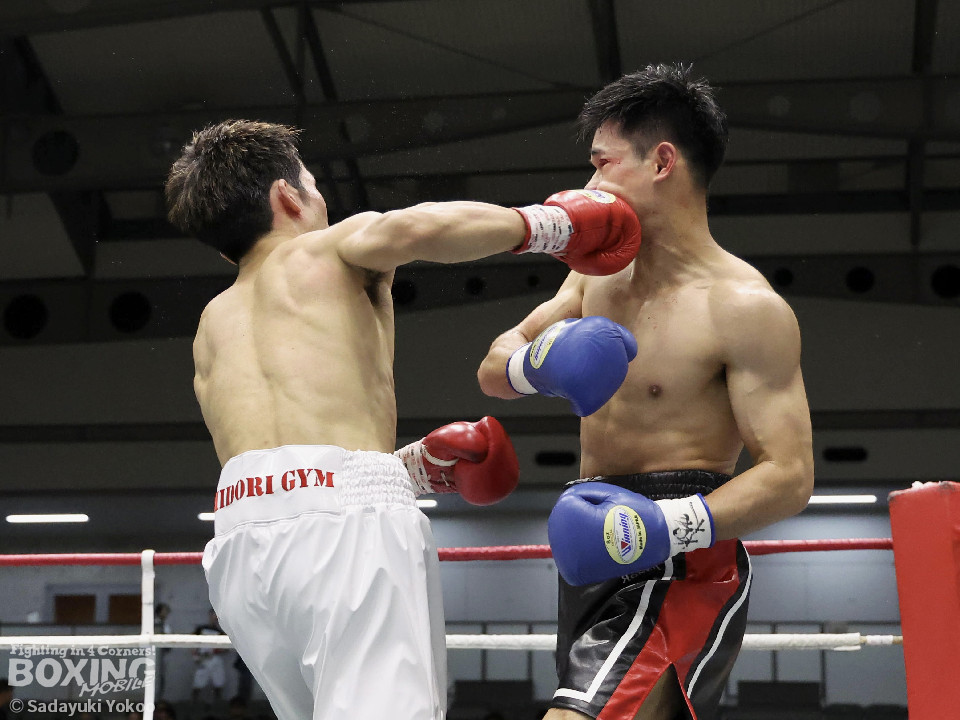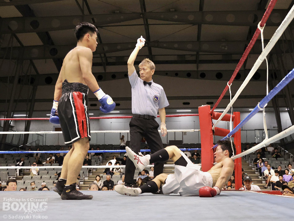 試合:辻がジリジリと距離を詰めワンツーを強振。対する林は、ガードを固めてキレのあるパンチで応戦。2回、さらにプレスを強めた辻が上下を攻め、左右の強打へと繋げる、対する林は、打ち終わりに合わせワンツーで対抗。この回、偶然のバッティングにより辻が左目横をカット。3回、激しい打ち合いを展開、林が放った右に合わせた、辻の右フックがジャストミート!左右のフックをまとめダウンを奪う。林のダメージが深刻と見たレフェリーが試合をストップ。終始、強打で攻め続けた辻がTKOで勝利。
