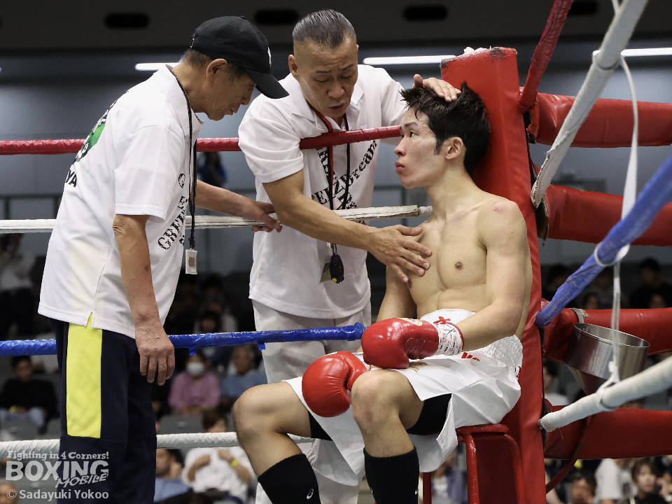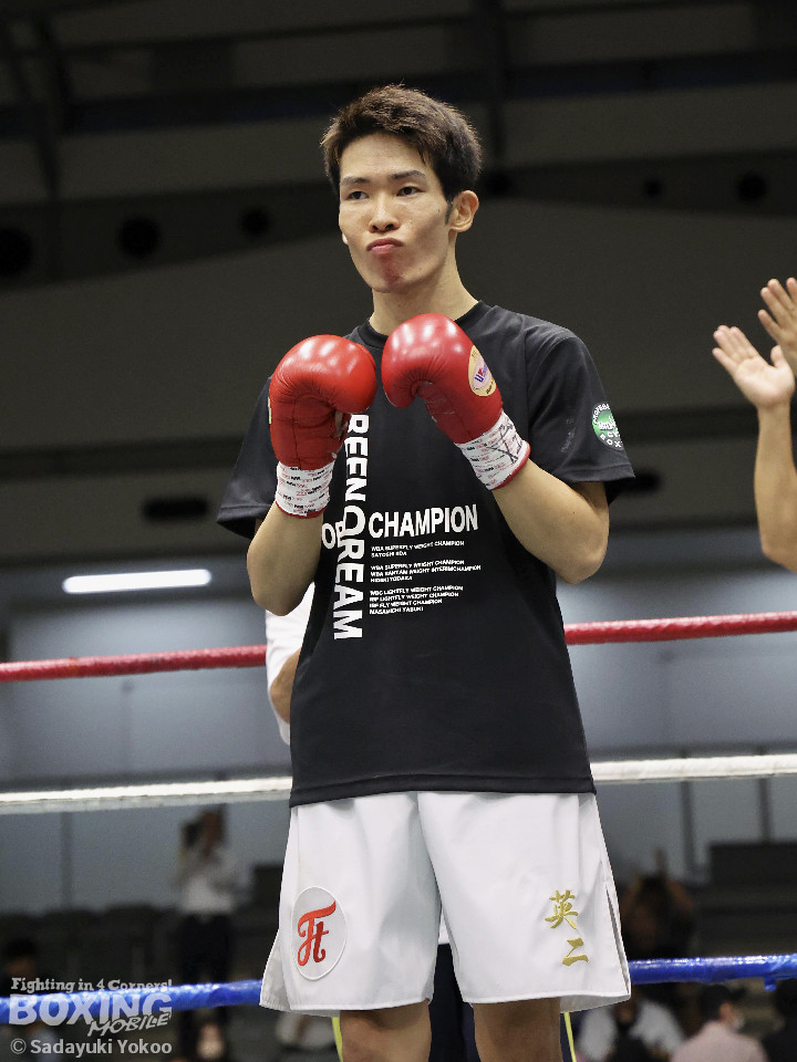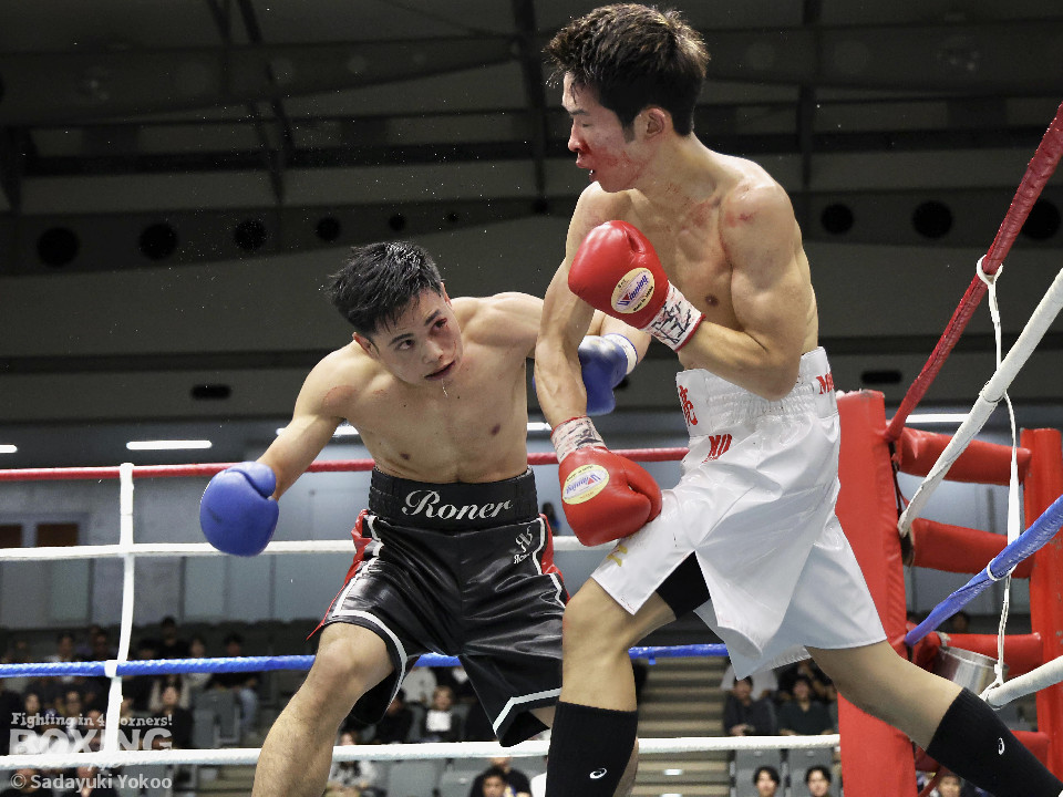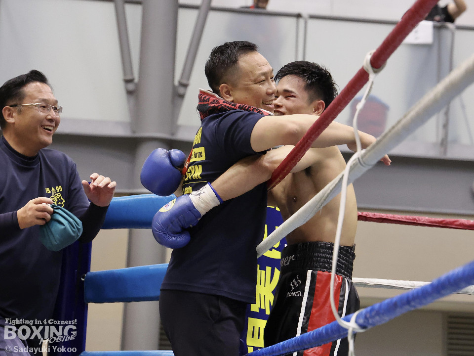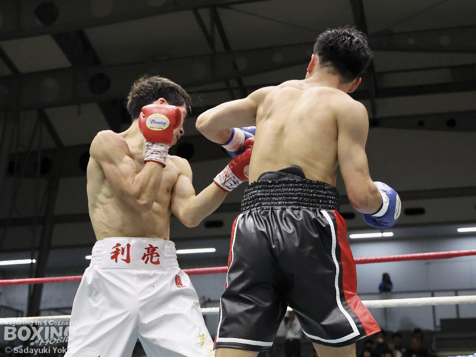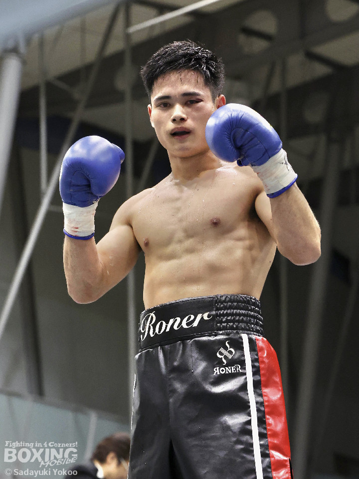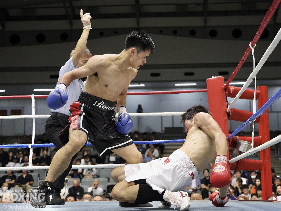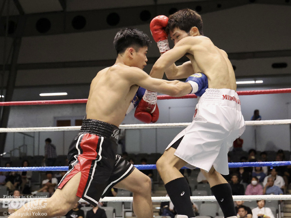 試合:辻がジリジリと距離を詰めワンツーを強振。対する林は、ガードを固めてキレのあるパンチで応戦。2回、さらにプレスを強めた辻が上下を攻め、左右の強打へと繋げる、対する林は、打ち終わりに合わせワンツーで対抗。この回、偶然のバッティングにより辻が左目横をカット。3回、激しい打ち合いを展開、林が放った右に合わせた、辻の右フックがジャストミート!左右のフックをまとめダウンを奪う。林のダメージが深刻と見たレフェリーが試合をストップ。終始、強打で攻め続けた辻がTKOで勝利。