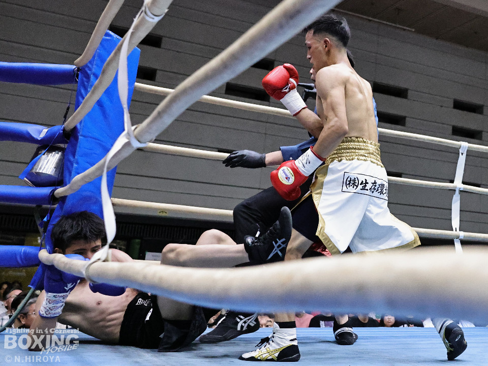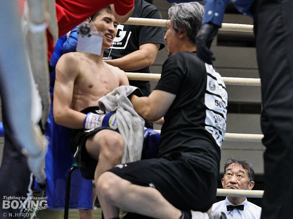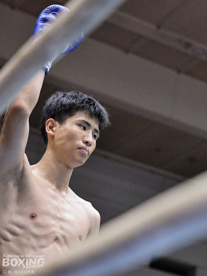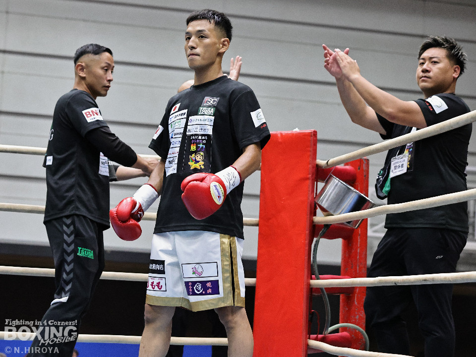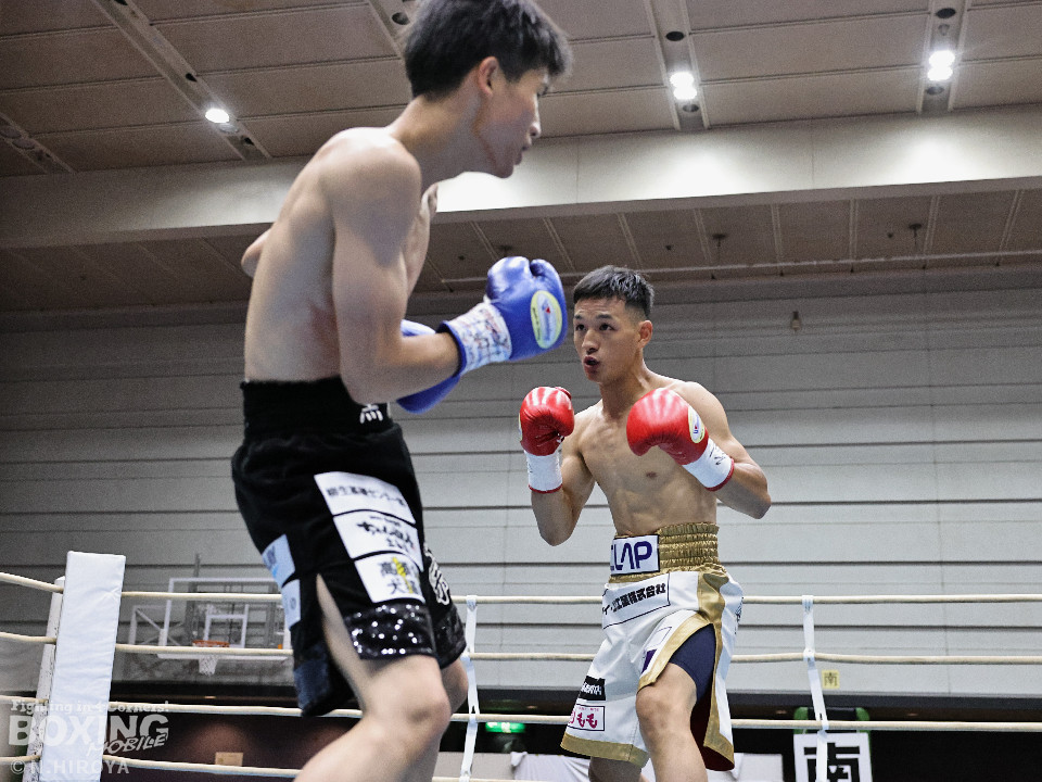 試合:ジャブから丁寧に組み立てる柳生に対し、橋本はワンツーで先制、打ち終わりに右ボディを突き刺した。2回、プレスをかけてワンツーで柳生をロープに押し込んだ橋本はワンツーを畳み掛け、パンチを上下に散らすと右が柳生の顎にジャストミート!TKO勝利を飾った。