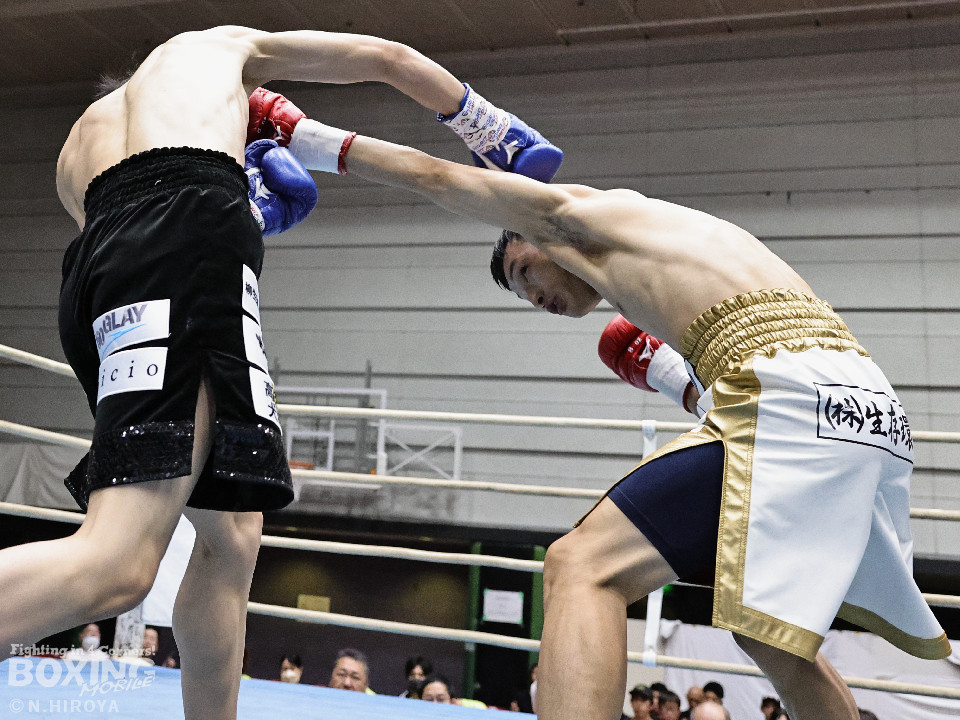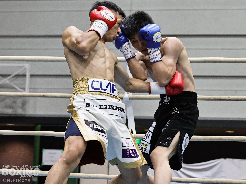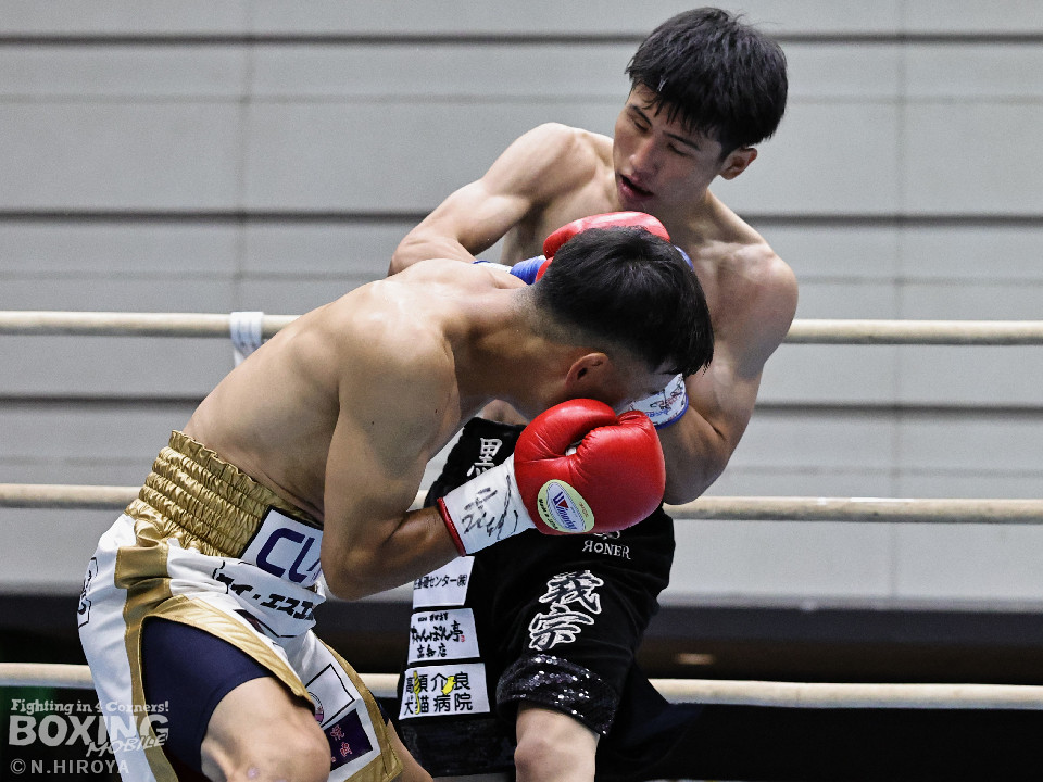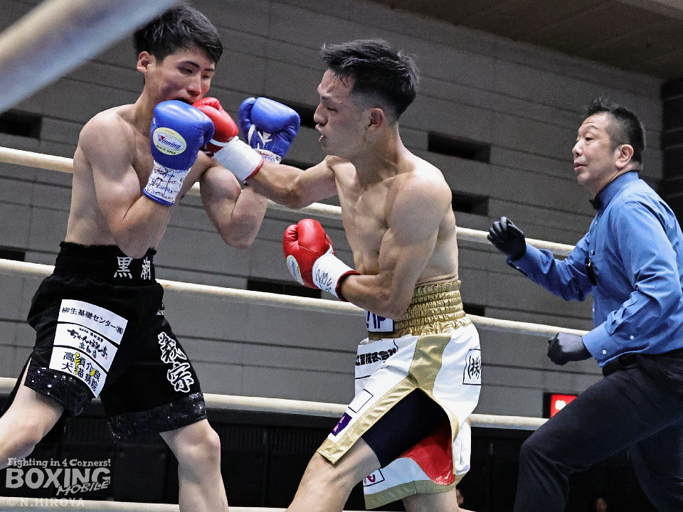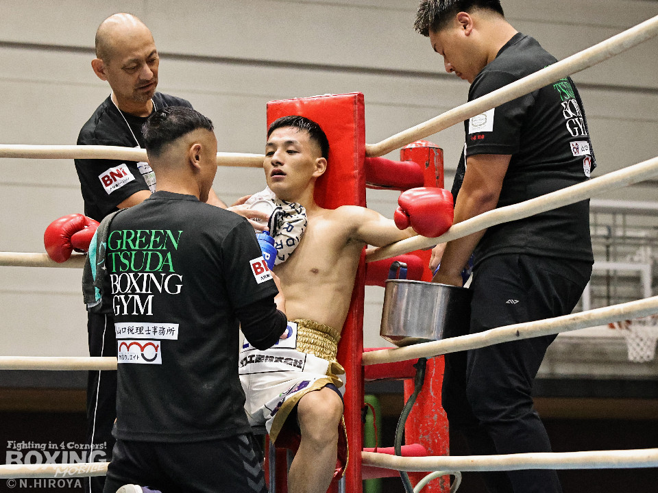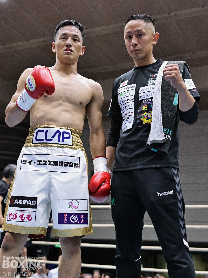 試合:ジャブから丁寧に組み立てる柳生に対し、橋本はワンツーで先制、打ち終わりに右ボディを突き刺した。2回、プレスをかけてワンツーで柳生をロープに押し込んだ橋本はワンツーを畳み掛け、パンチを上下に散らすと右が柳生の顎にジャストミート!TKO勝利を飾った。
