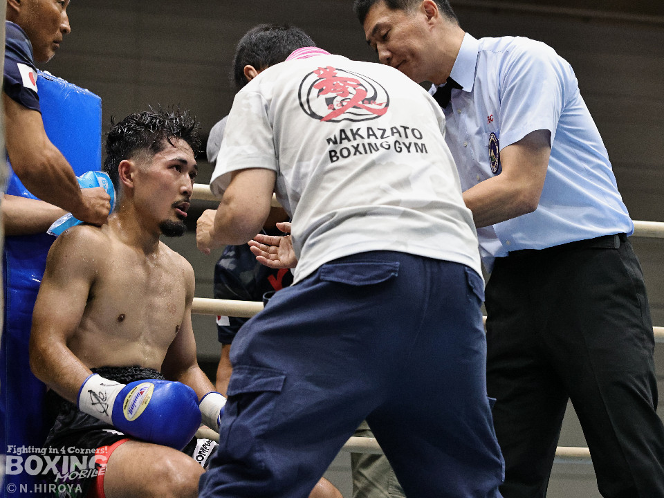 試合:久高はフェイントをかけつつ、ジャブから右フックにつなげるとパンチを上下に散らした。2回、ジャブから右につなげた光富に対し、久高はジャブから踏み込んでボディストレートを突き刺すと左を下から上に返した。3回、パンチを上下に散らす久高に対し、光富は右カウンターを決めるとジャブから右ボディを好打した。4回、攻勢を強めた久高に対し、光富は足とジャブで距離を作るとワンツーを左ボディにつなげた。結果は判定に持ち越され、2者の支持を得た光富が判定勝利を手にした。