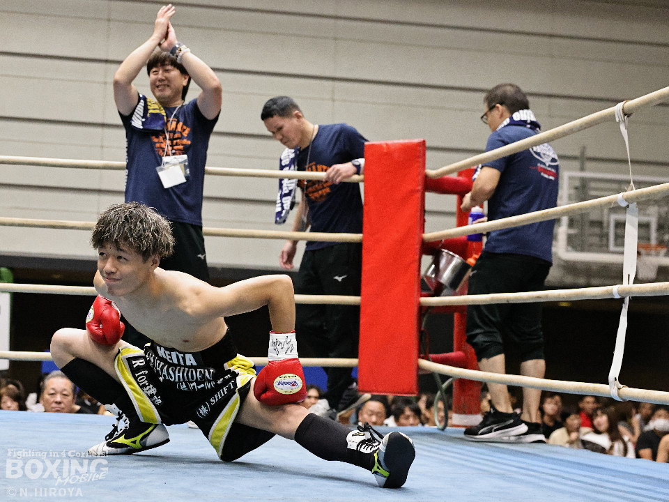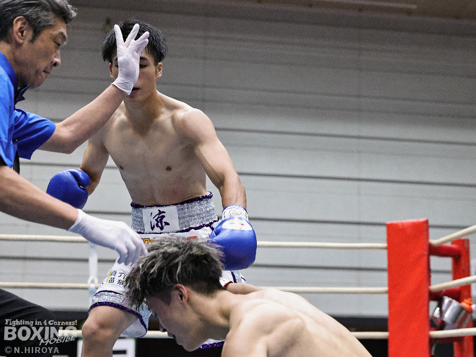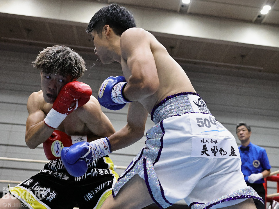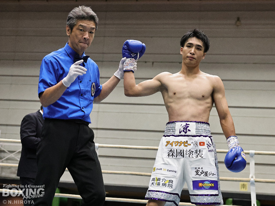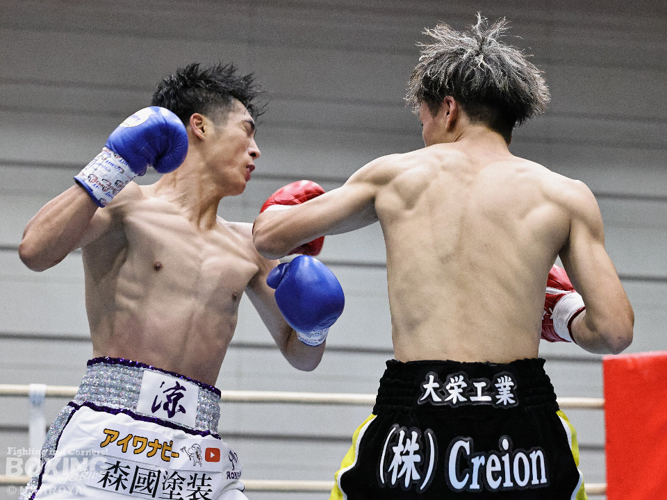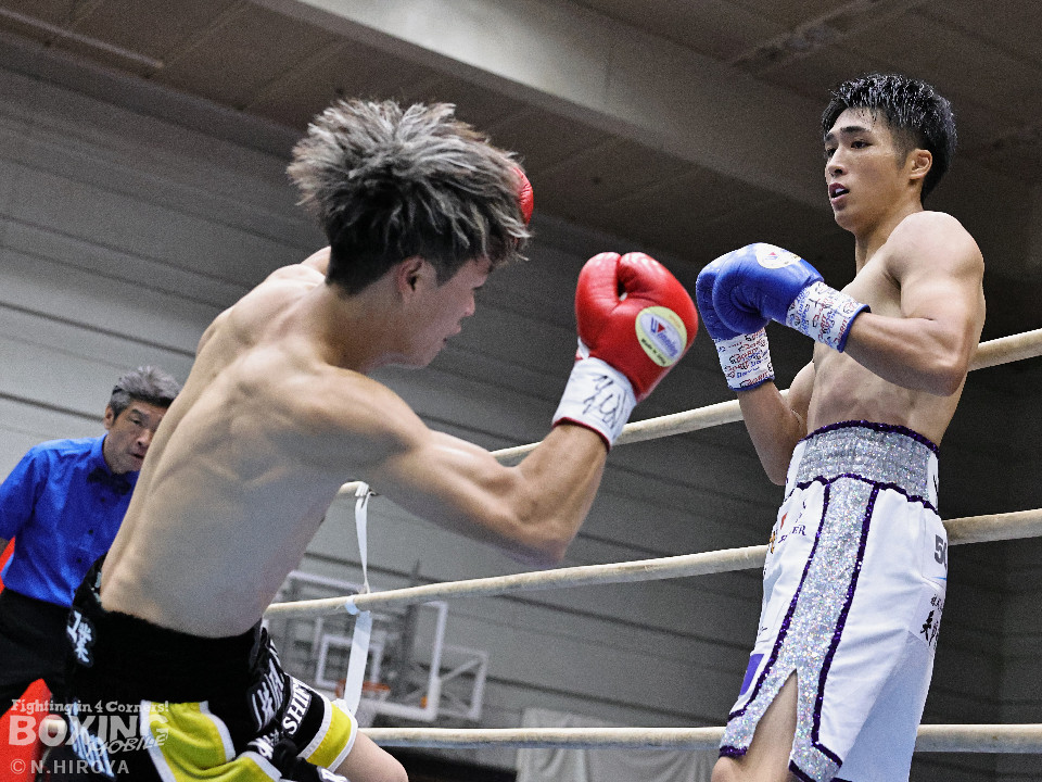 試合:ジャブから右につなげた福本に対し、市原はワンツーでバランスを崩させると連打で畳み掛け、ロープを背負わせると右アッパーでダウンを先取。再開後、連打を畳み掛けて2度目のダウンを奪うとレフェリーはノーカウントで試合をストップ。市原が初回KOで勝利。連続KO記録を6に伸ばした。