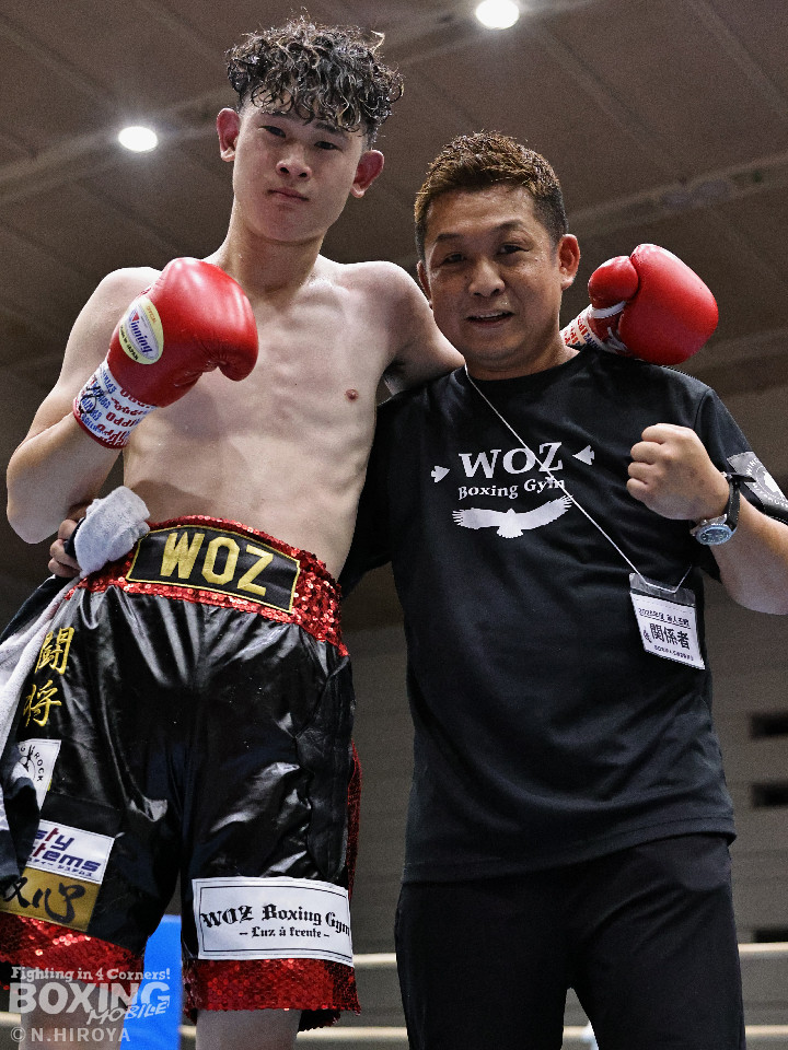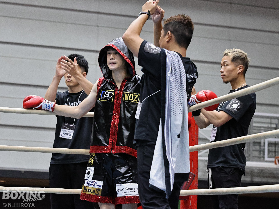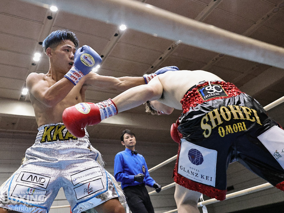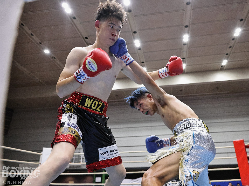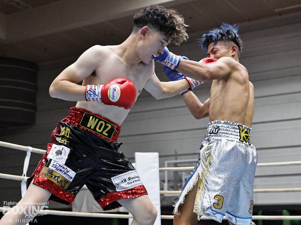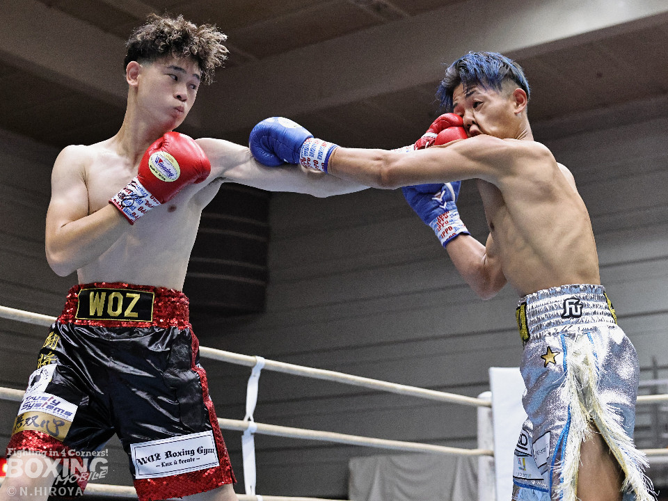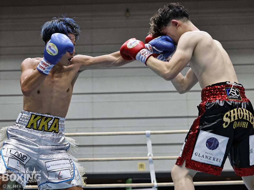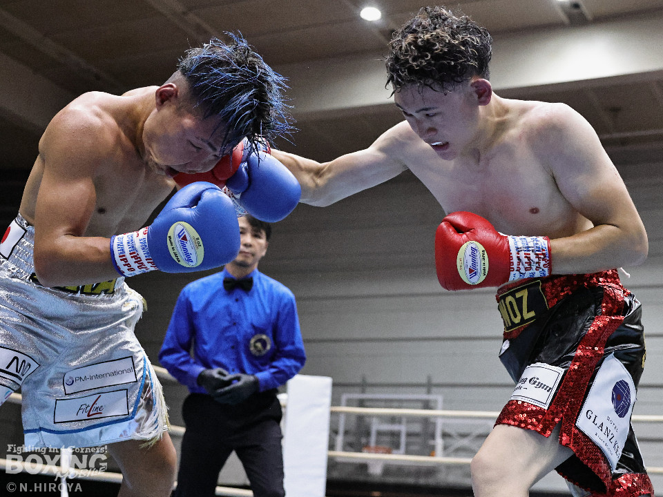 試合:ジャブから右につなげた豊永に対し、村山は入り際にワンツー連打で対抗した。2回、村山はジャブから右につなげると左フックを好打した。3回、ワンツーを軸に攻勢をかけた豊永は右ボディを好打した。4回、ワンツー連打で攻勢を仕掛けた村山に対し、豊永は左右フック連打でぐらつかせた。5回、村山がワンツー連打で仕掛けると豊永もこれに応じ、上下にパンチを散らし激しい打ち合いに発展。結果は判定に持ち越され、2者の支持を得た豊永が勝利を飾った。