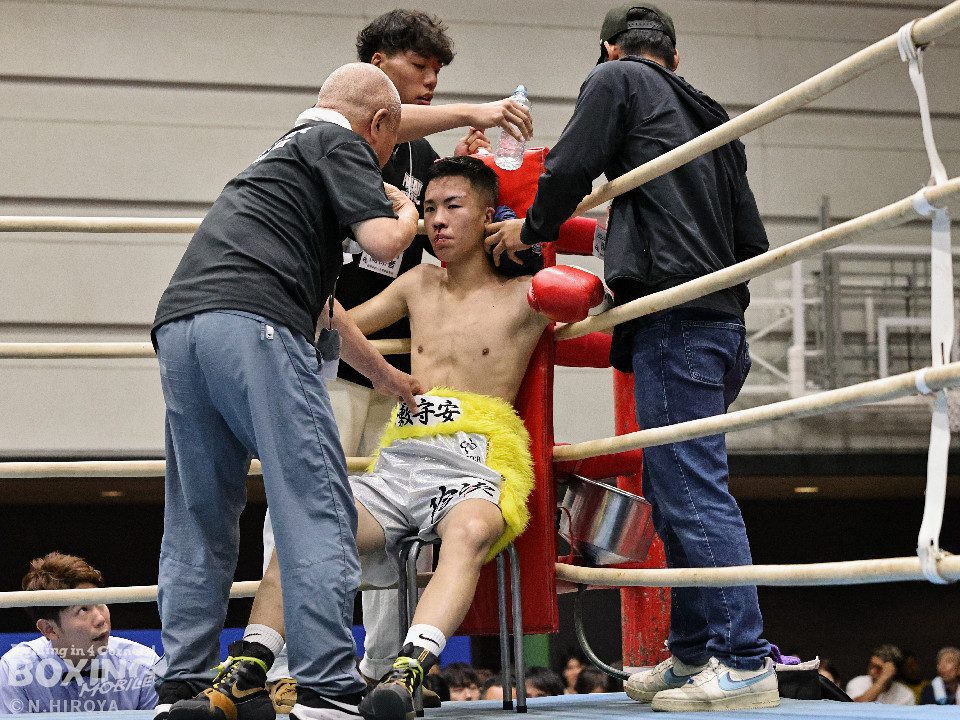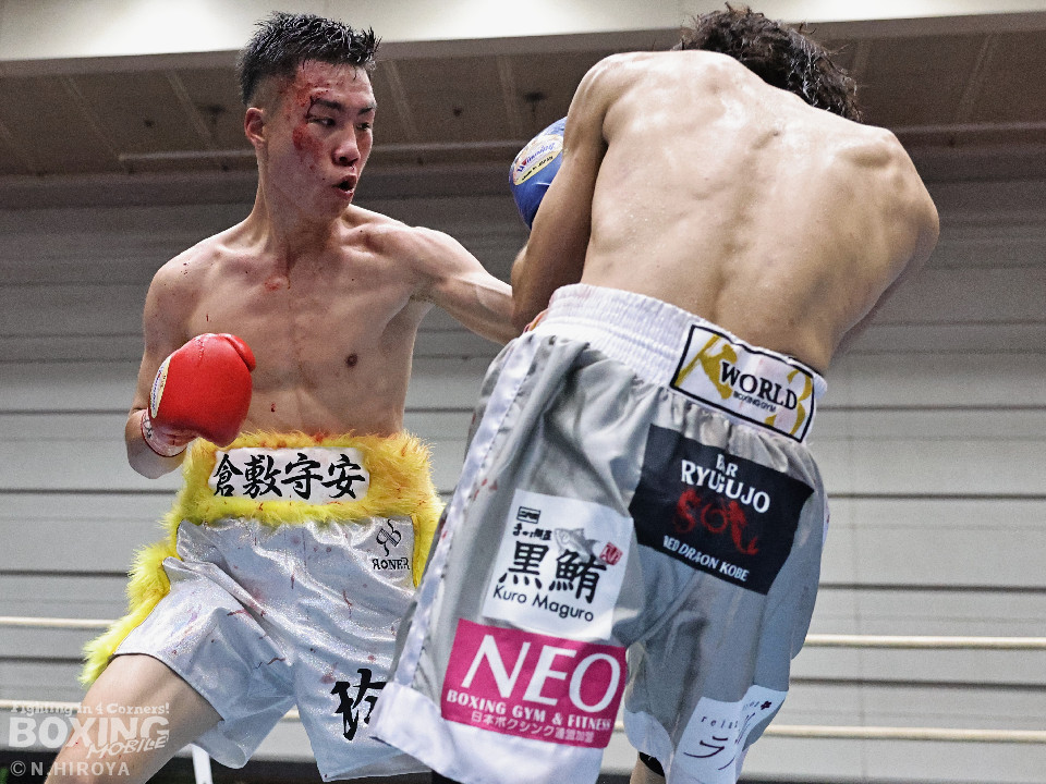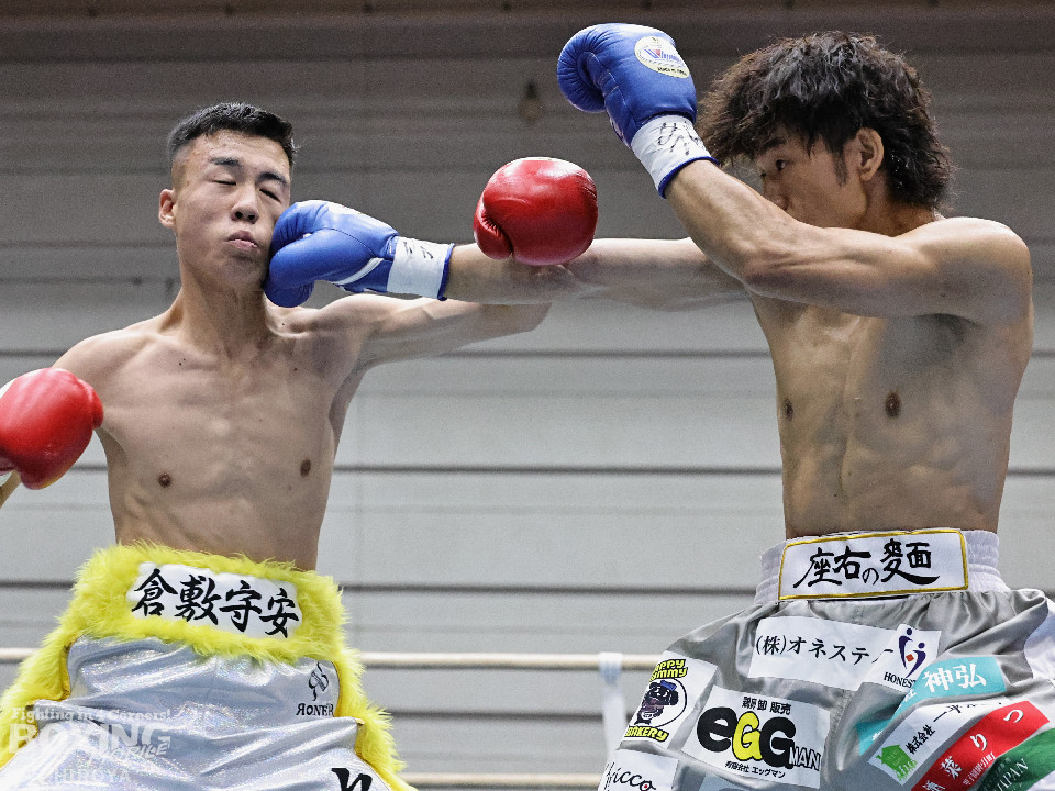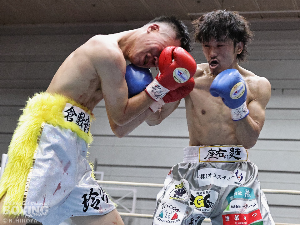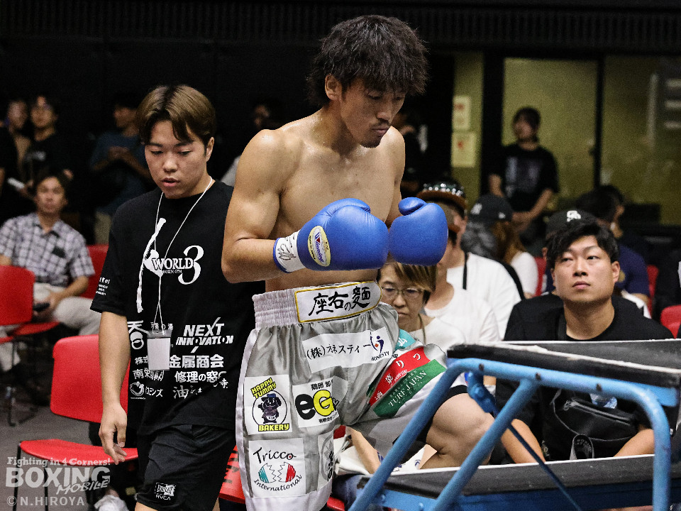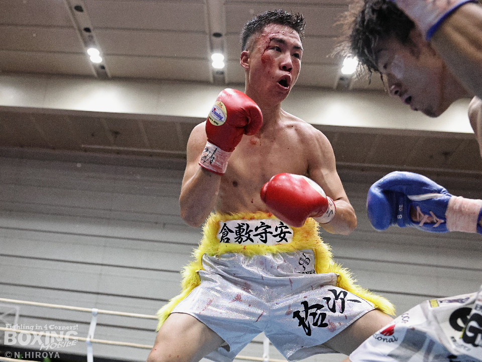 試合:フェイントをかけつつジャブでタイミングを測ったサウスポー高橋はワンツーのヒットを重ね、ポイントを稼いだ。2回、相手のパンチをバックステップでかわした高橋はワンツーを軸に攻勢を仕掛け、右アッパーを交えたコンビネーションを放つと田井の顔面が血に染まった。3回、プレスをかける田井に対し、ワンツーから右アッパーにつなげた高橋はノーモーションの左をヒット、ワンツーでダウンを先取した。4回、ワンツー連打で仕掛けた田井に対し、ワンツーから右につなげ、右フックをヒットした。結果は判定に持ち越され、高橋が3者の支持を得て判定勝利を飾った。