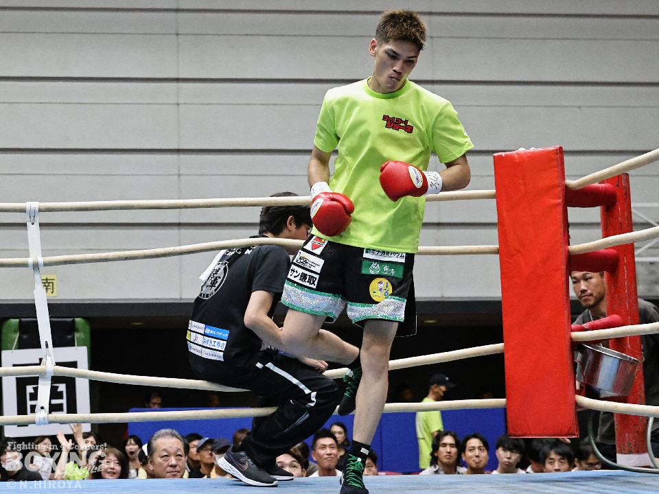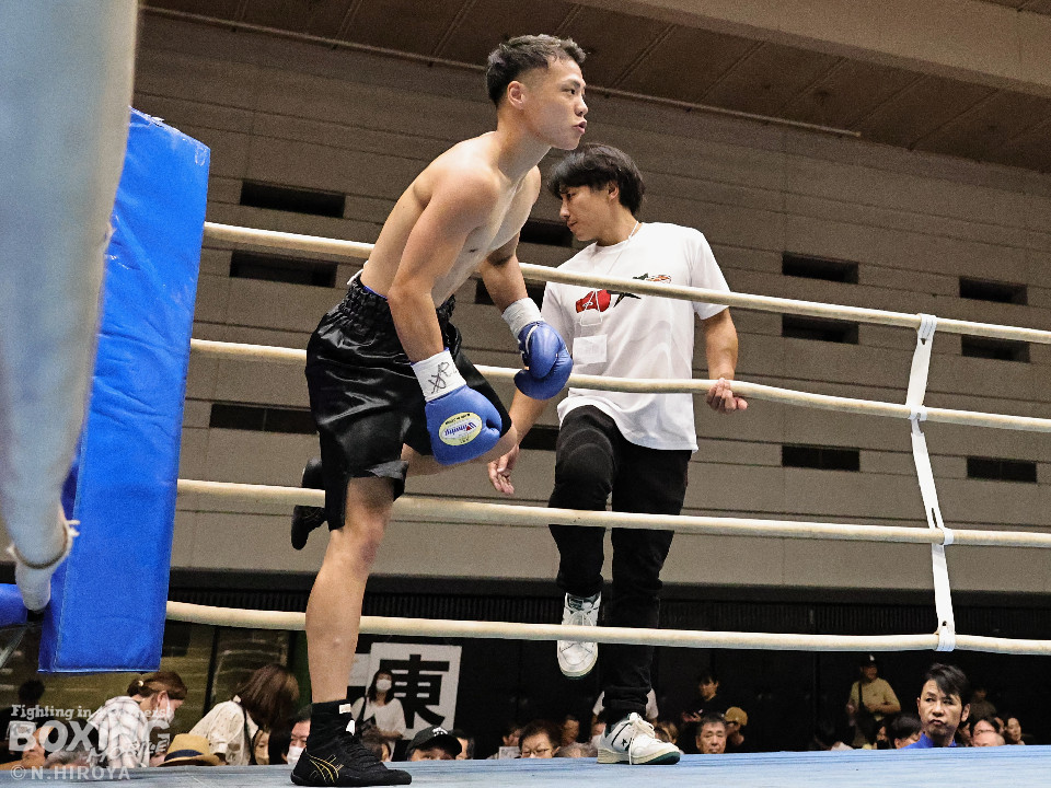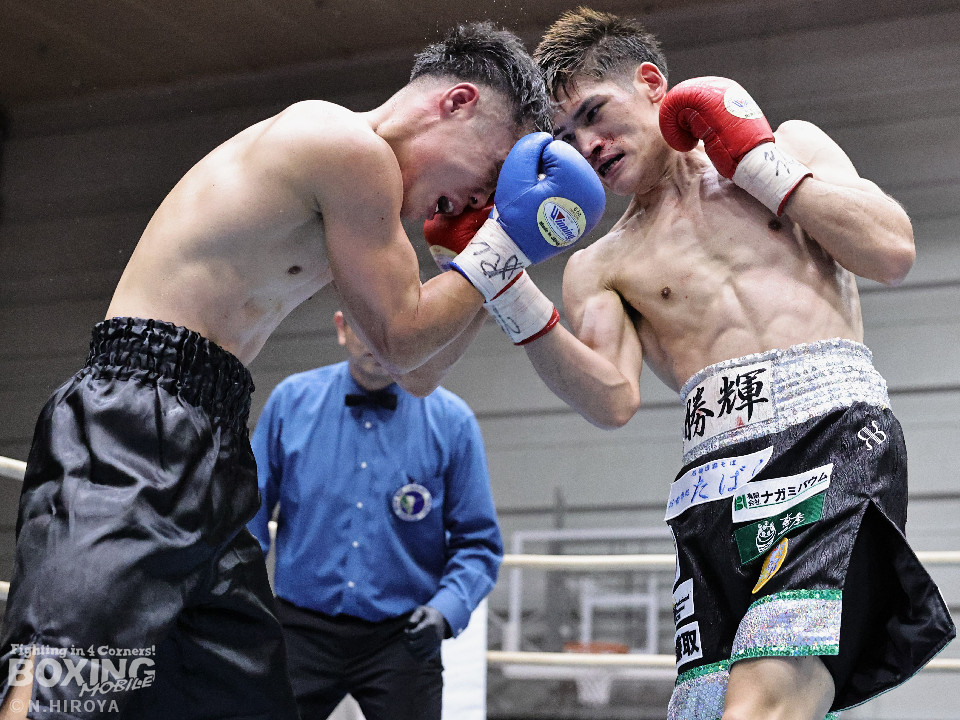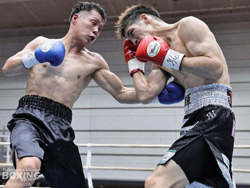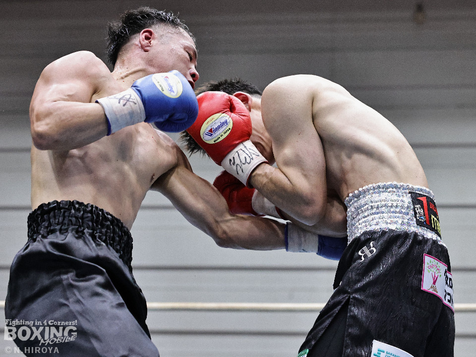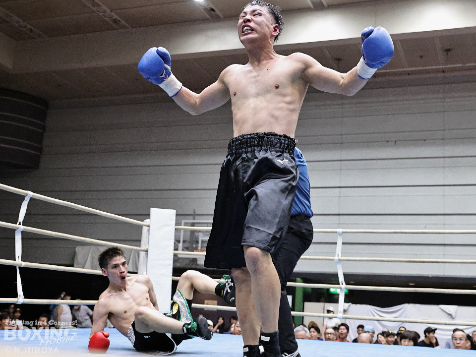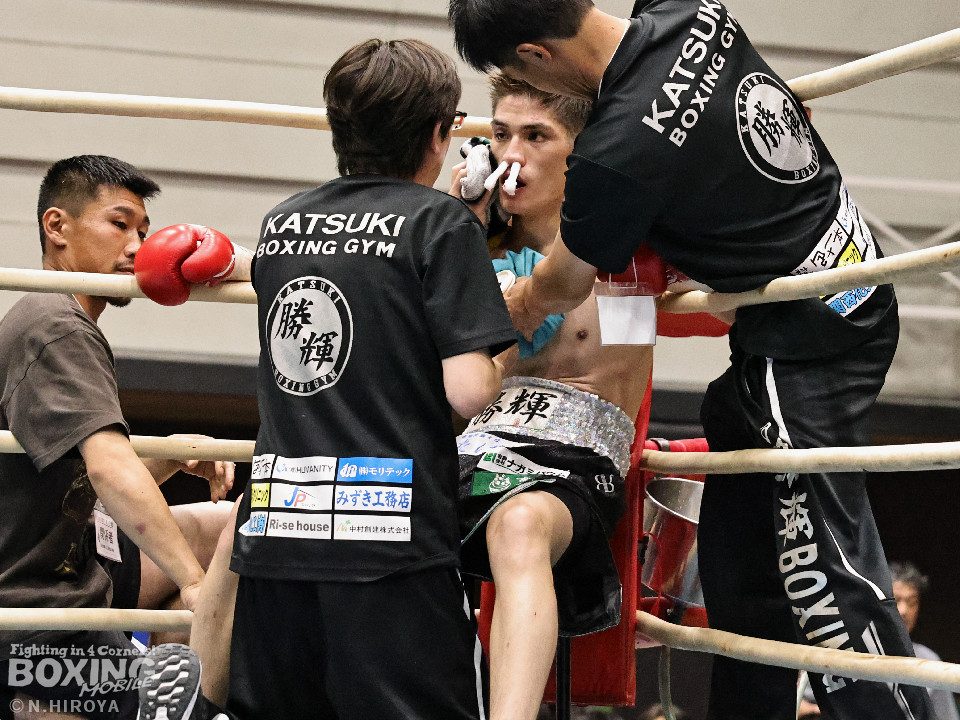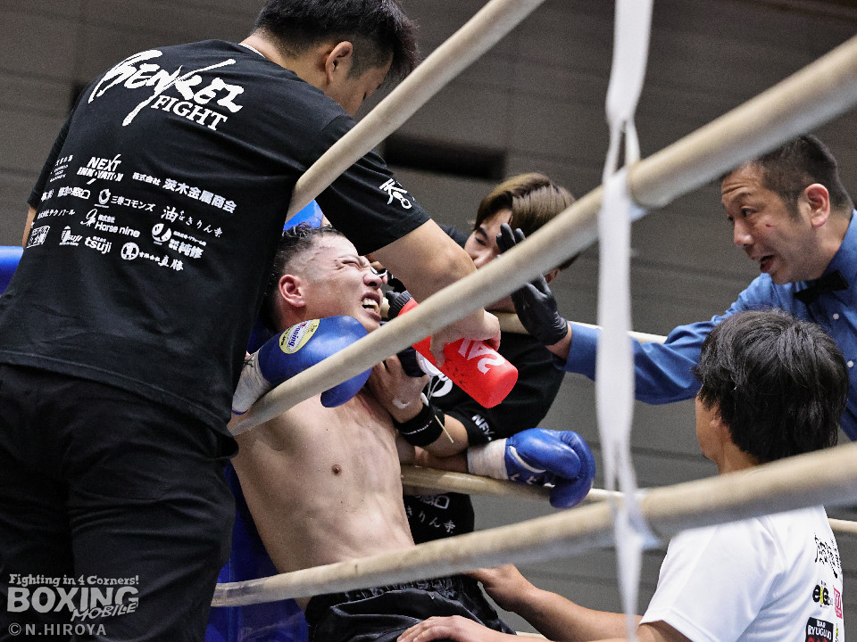 試合:開始ゴングと同時に互いに駆け寄ると、守屋が左右ボディを叩き、パンチを上に返し、曽田も右アッパーを交えたコンビネーションで応じ、右でダウンを奪った。2回、守屋が左右ボディを叩くと曽田もワンツーから左フックにつなげ激しい打ち合いとなった。3回、守屋が手数を増やして攻勢をかけ、左右ボディを叩くとワンツーを放った。曽田も負けじと左フックからの連打を放ち、どちらも引かない打撃戦となった。打ち合いの中で守屋が右フックでダウンを奪い返すと、レフェリーがノーカウントで試合をストップ。守屋がTKOで華麗な逆転勝利を飾った。