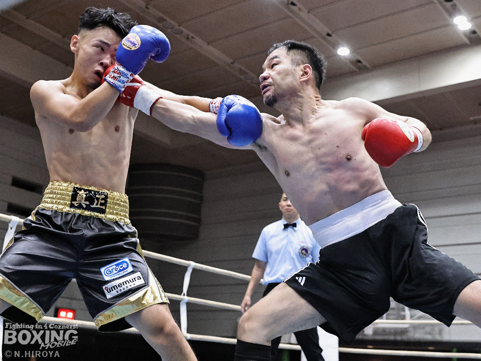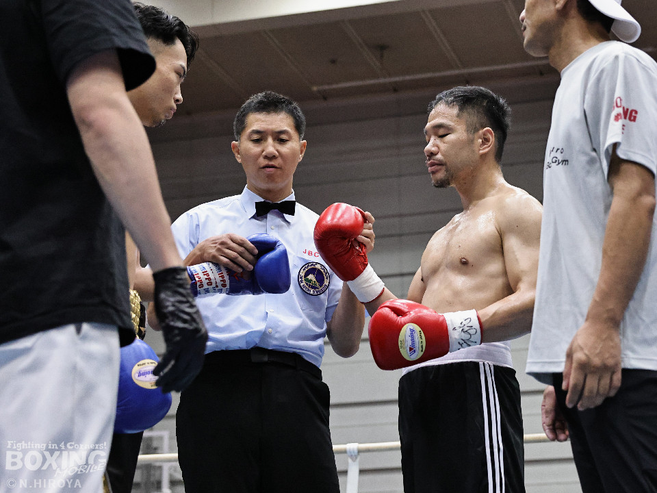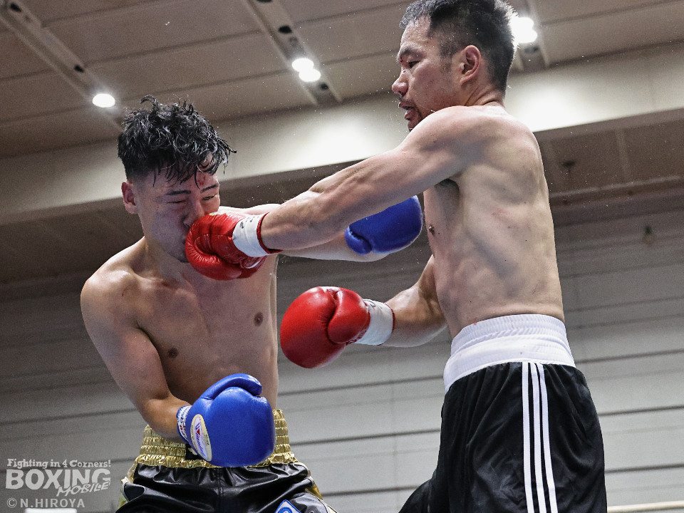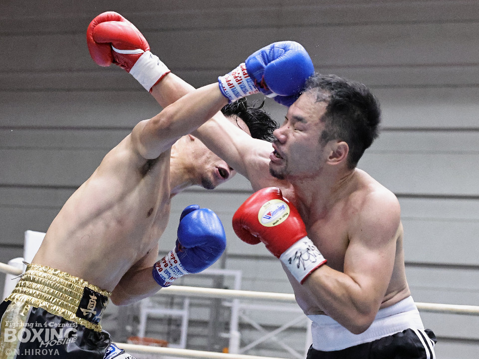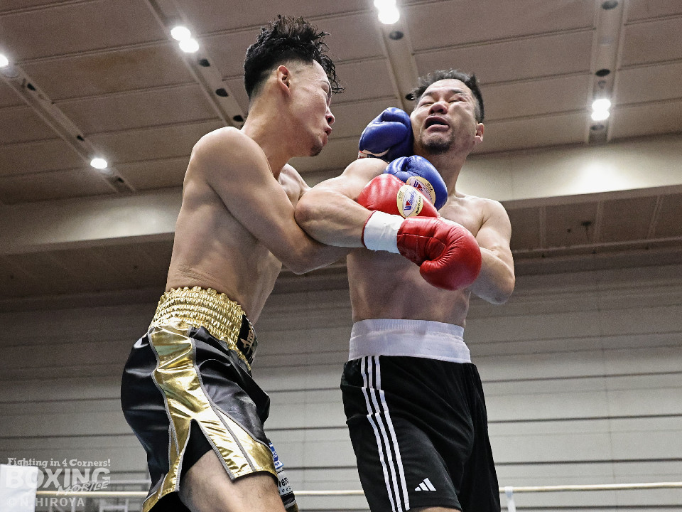 試合:開始ゴングと同時に駆け寄り、大ぶりのパンチを振るうサウスポー中井田に対し、藤原は冷静に対処、ジャブから右フックをヒットした。2回、互いにフェイントをかけ機会を探ると、ワンツーで攻め込む中井田に対し、藤原はジャブからボディストレートにつなげ、左フックをヒットした。3回、ワンツーで仕掛ける中井田に対し、藤原は単発ながら右クロス、右フックをヒットしポイントを重ねた。4回、中井田が左右を振るい、ボディにパンチを集めると、藤原は左フックをヒットした。結果は判定に持ち越され、3者の支持を集めた藤原が判定勝利を飾った。