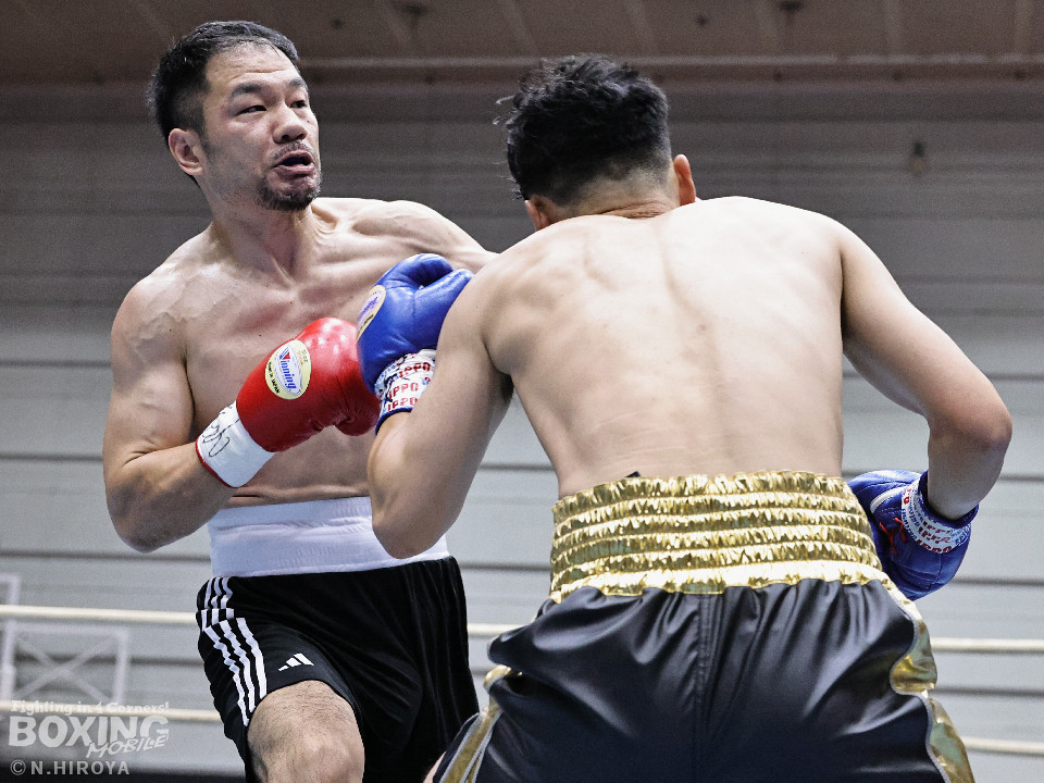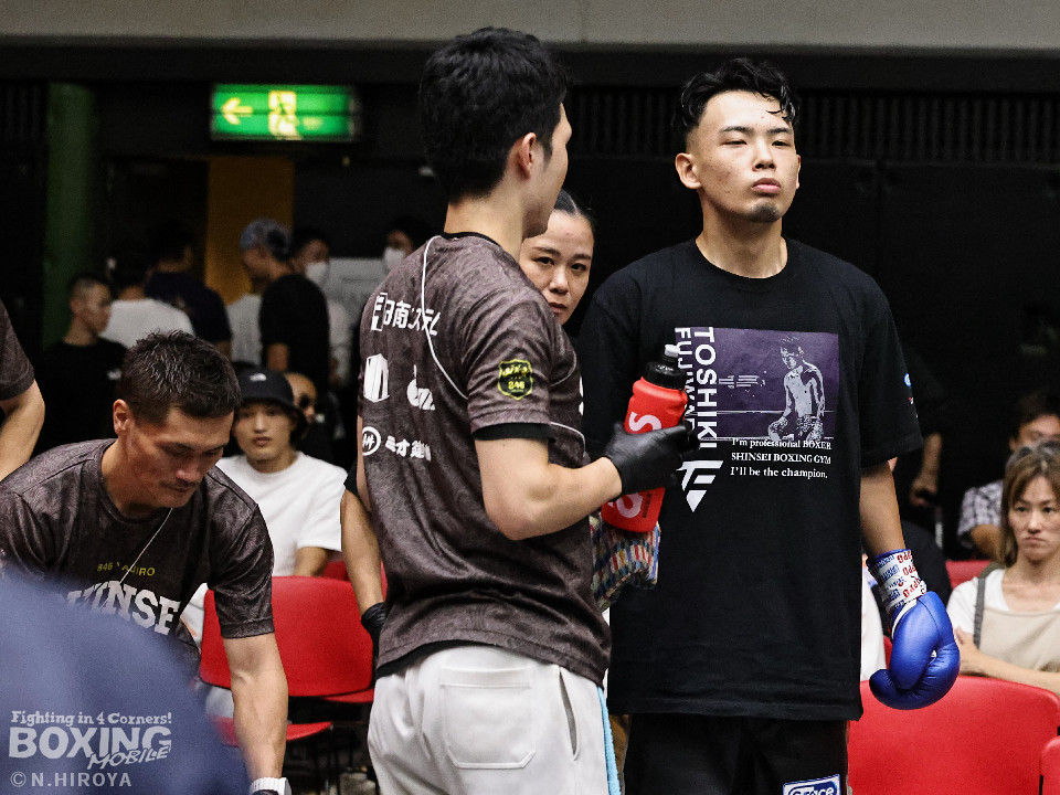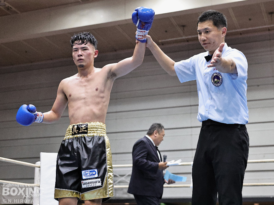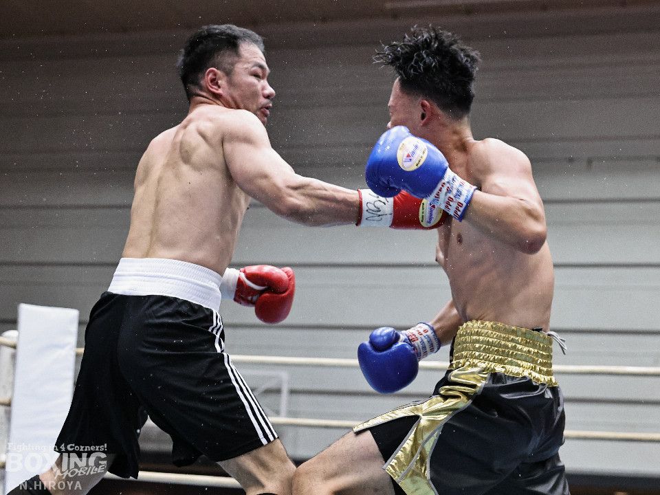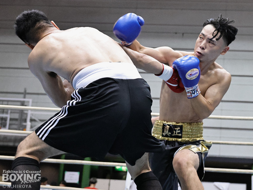 試合:開始ゴングと同時に駆け寄り、大ぶりのパンチを振るうサウスポー中井田に対し、藤原は冷静に対処、ジャブから右フックをヒットした。2回、互いにフェイントをかけ機会を探ると、ワンツーで攻め込む中井田に対し、藤原はジャブからボディストレートにつなげ、左フックをヒットした。3回、ワンツーで仕掛ける中井田に対し、藤原は単発ながら右クロス、右フックをヒットしポイントを重ねた。4回、中井田が左右を振るい、ボディにパンチを集めると、藤原は左フックをヒットした。結果は判定に持ち越され、3者の支持を集めた藤原が判定勝利を飾った。