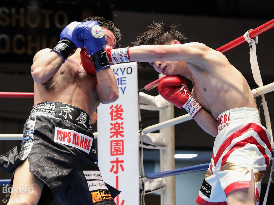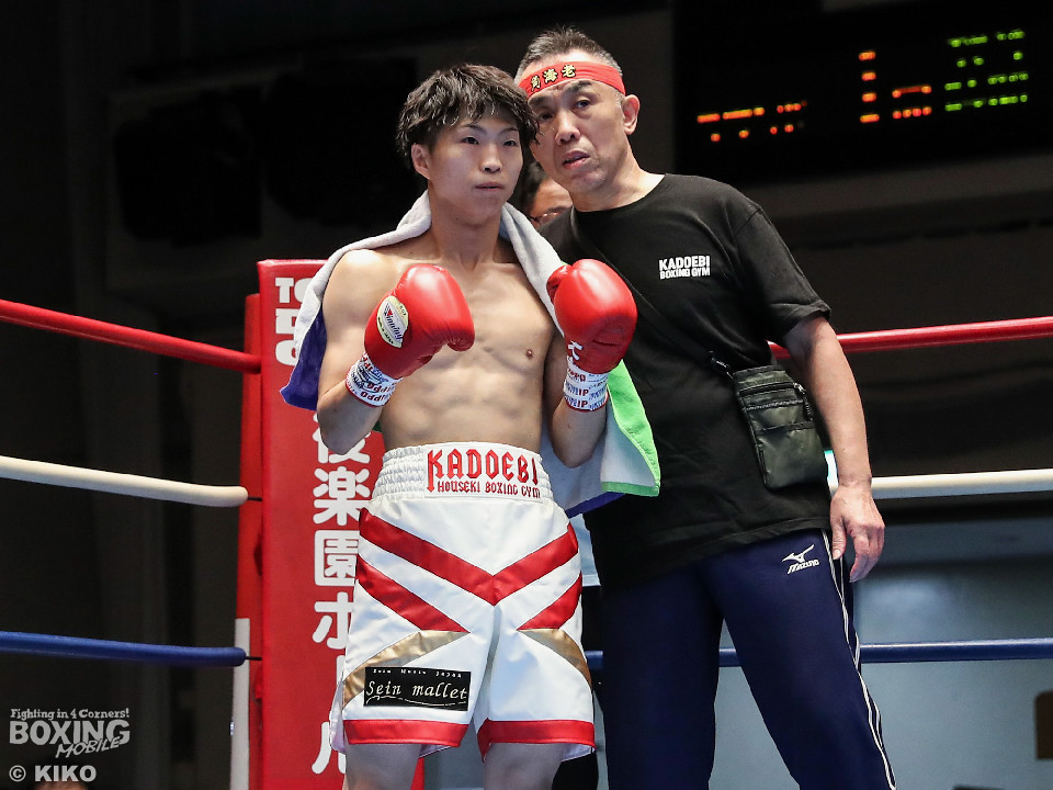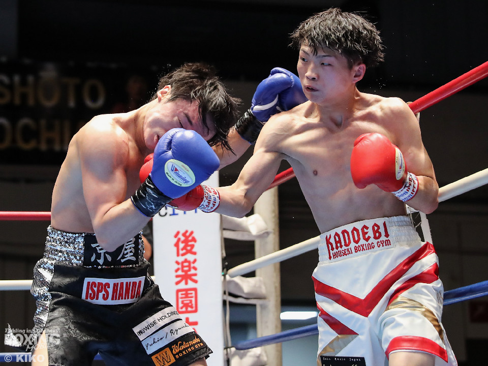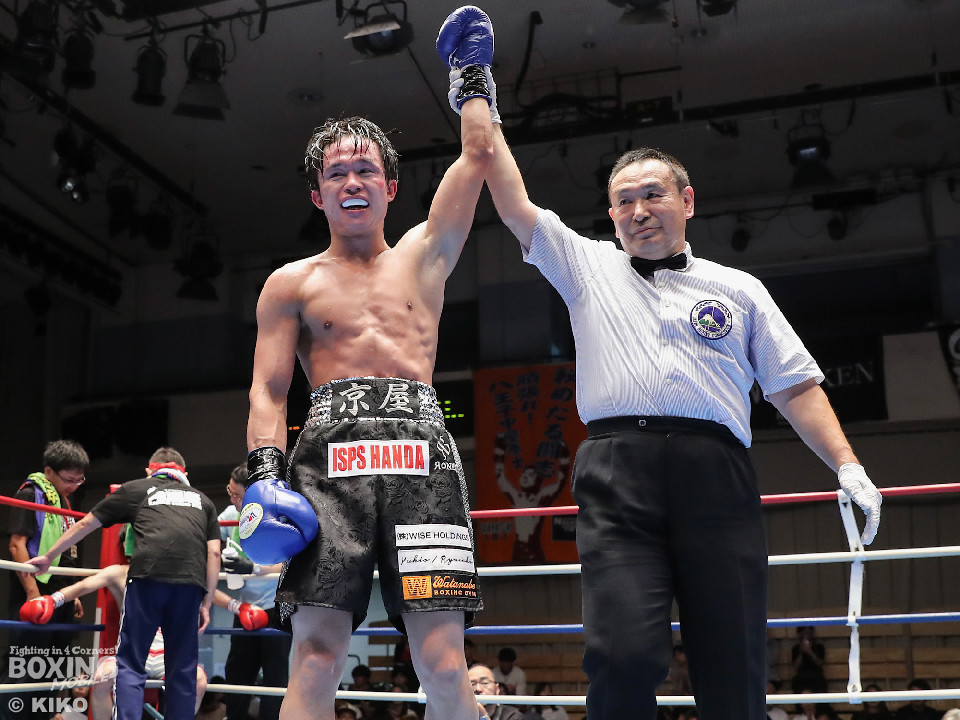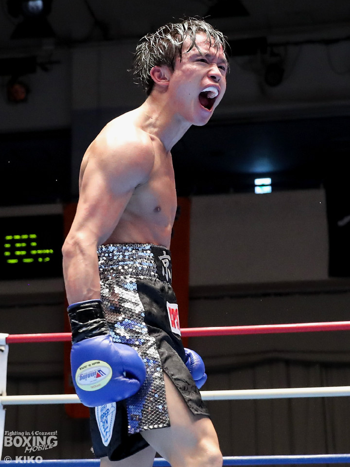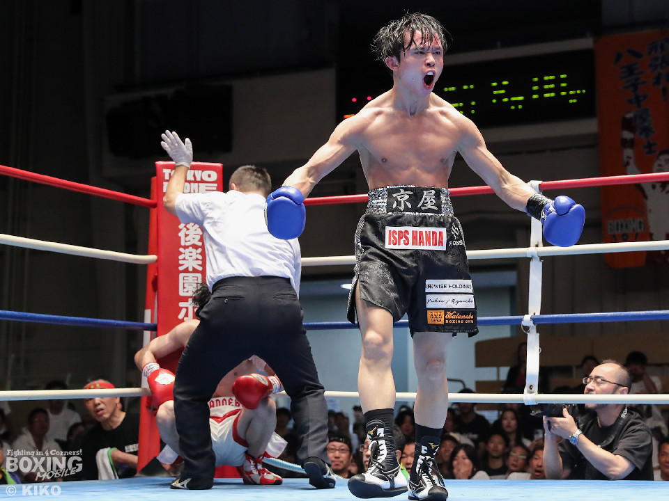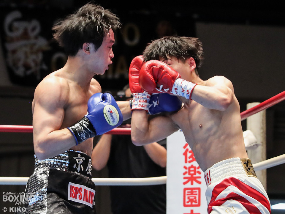 試合:京屋がジリジリと距離を詰めて左ボディから削り積極的な攻撃を展開。2回、関は、腹をくくって打ち合いに行くが、京屋は左フックでグラつかせるとプッシュしながらボディにパンチを集めた。3回、関は回転力を上げたワンツーで反撃。激しいパンチの応酬に盛り上がりを見せた。4回、関は豊富な手数で攻め立てるが、ここを踏ん張った京屋は、右ボディアッパーで動きを止めるとコーナーに詰めてラッシュ!手が出なくなった関を見てレフェリーが試合をストップした。