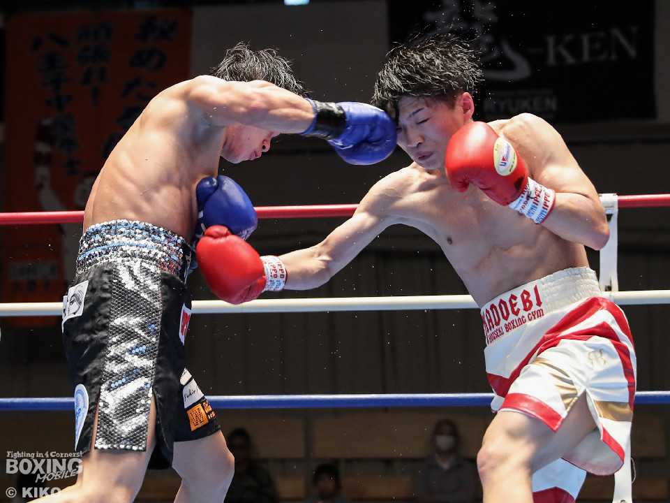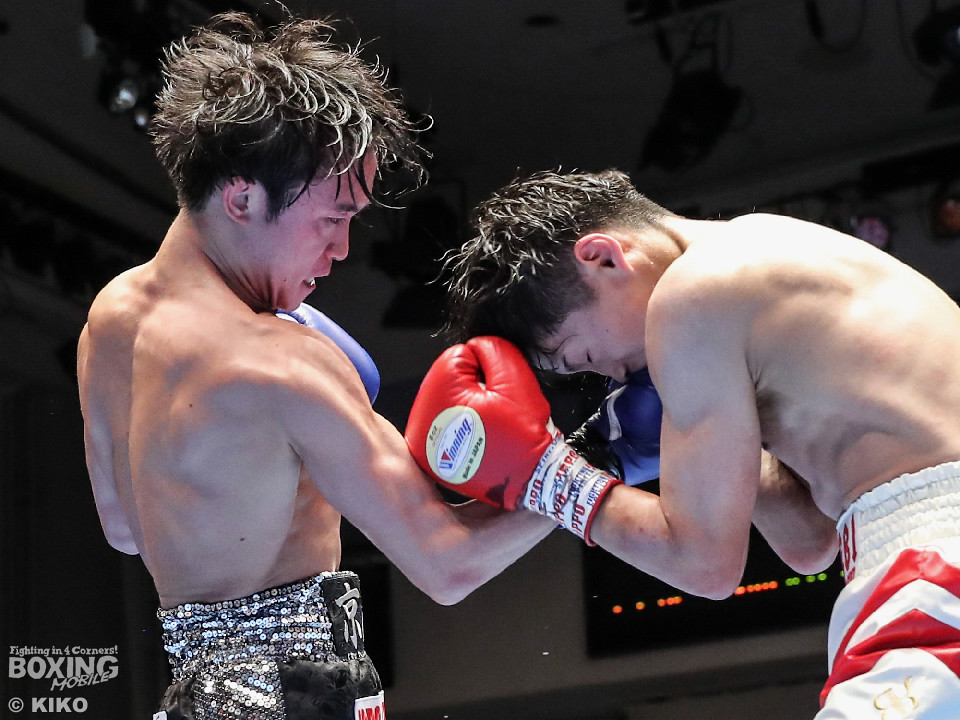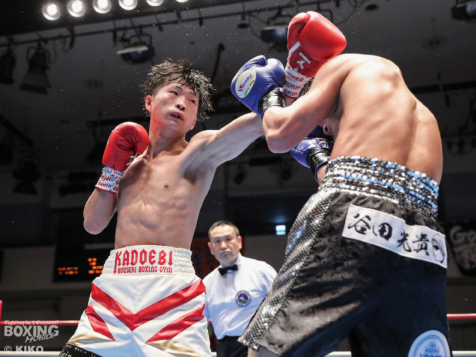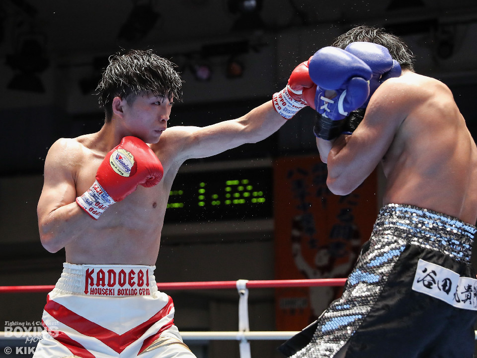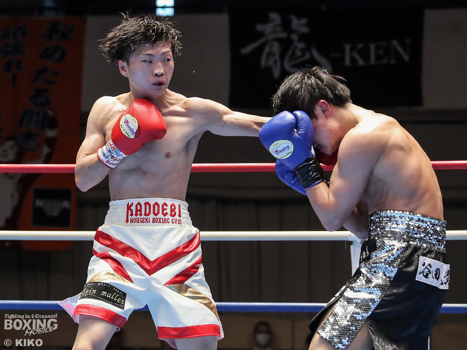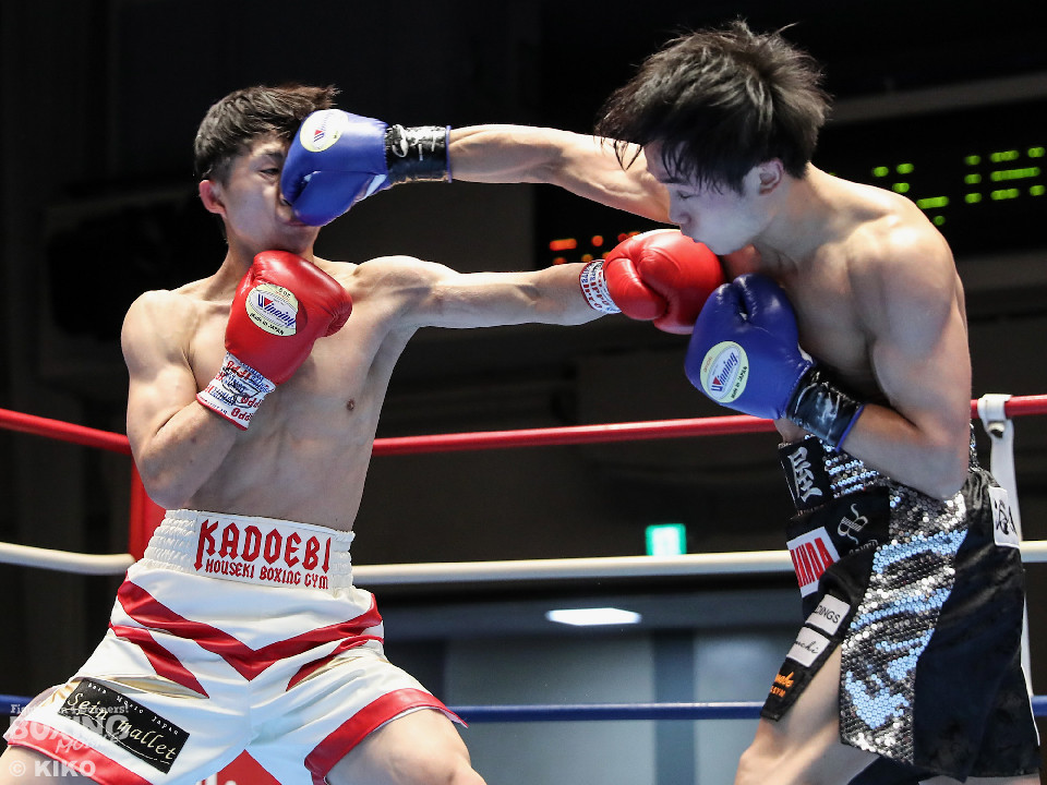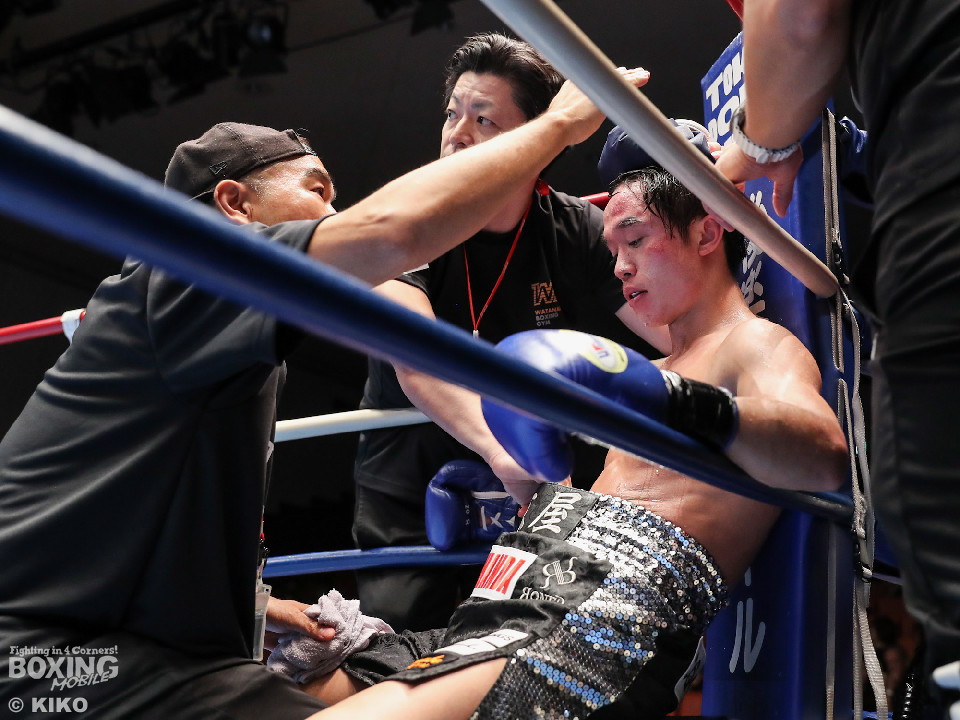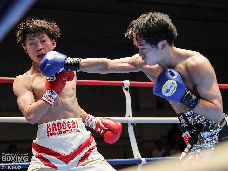 試合:京屋がジリジリと距離を詰めて左ボディから削り積極的な攻撃を展開。2回、関は、腹をくくって打ち合いに行くが、京屋は左フックでグラつかせるとプッシュしながらボディにパンチを集めた。3回、関は回転力を上げたワンツーで反撃。激しいパンチの応酬に盛り上がりを見せた。4回、関は豊富な手数で攻め立てるが、ここを踏ん張った京屋は、右ボディアッパーで動きを止めるとコーナーに詰めてラッシュ!手が出なくなった関を見てレフェリーが試合をストップした。