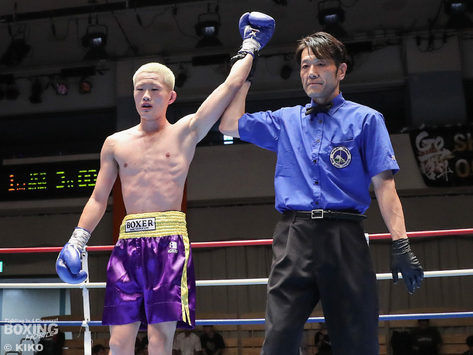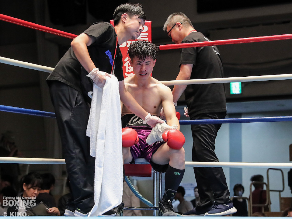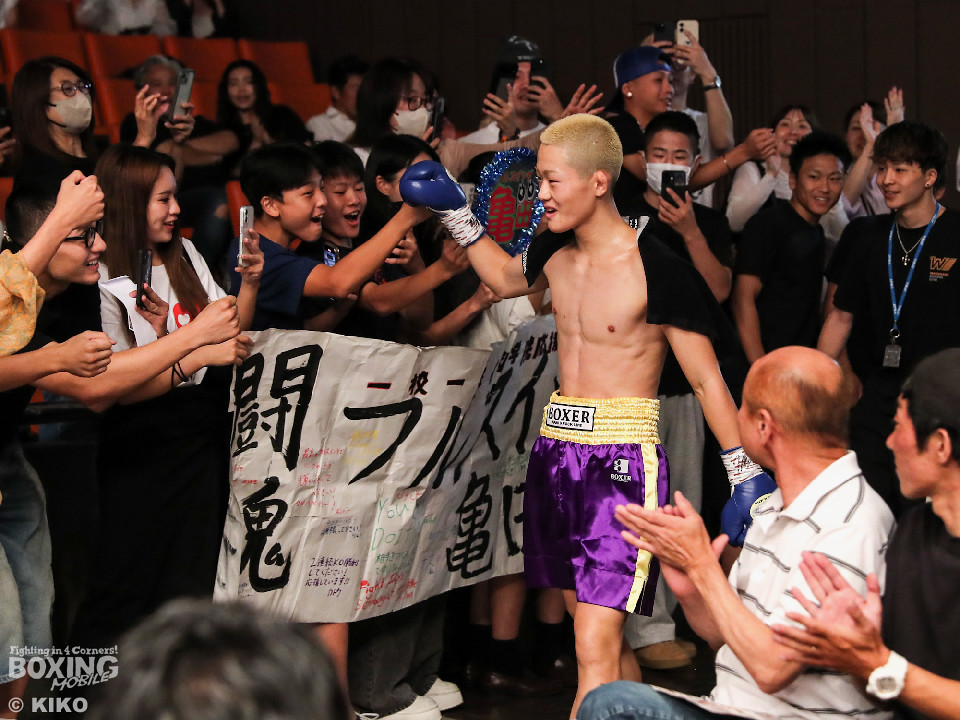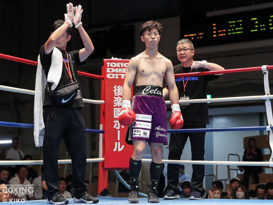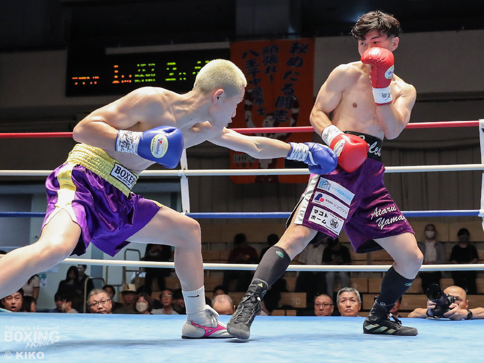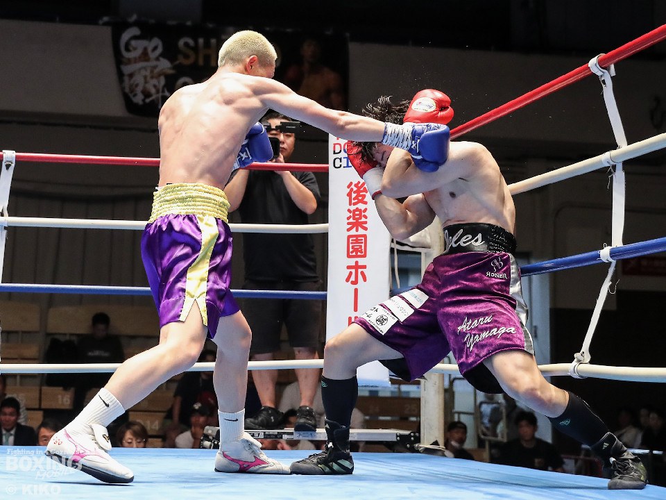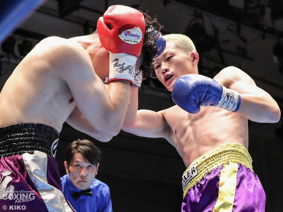 試合:亀田が中間距離をキープしながら左フック、ワンツーをヒットし見栄えの良いボクシング。2回、サウスポー山鹿はガードを固めながら距離を詰めるが、亀田は真っ向から応戦すると右アッパーで鮮やかに倒した。3回、亀田は左ボディで動きを止めるとパンチをまとめてフィニッシュに持ち込んだ。