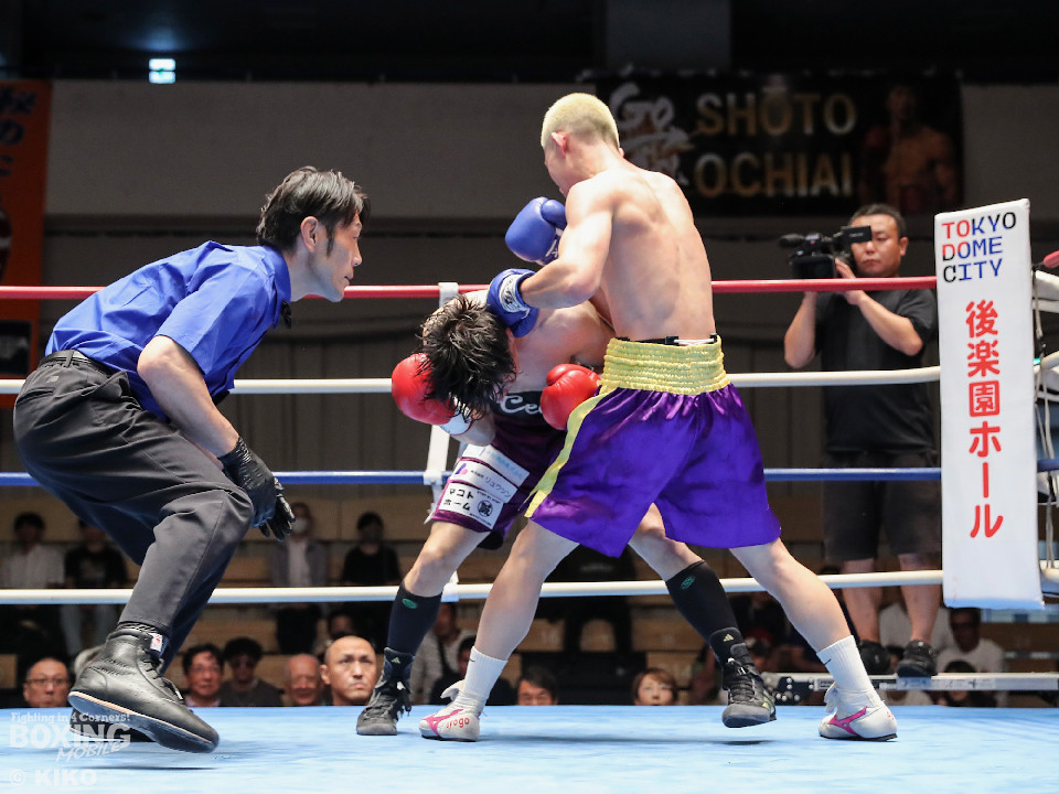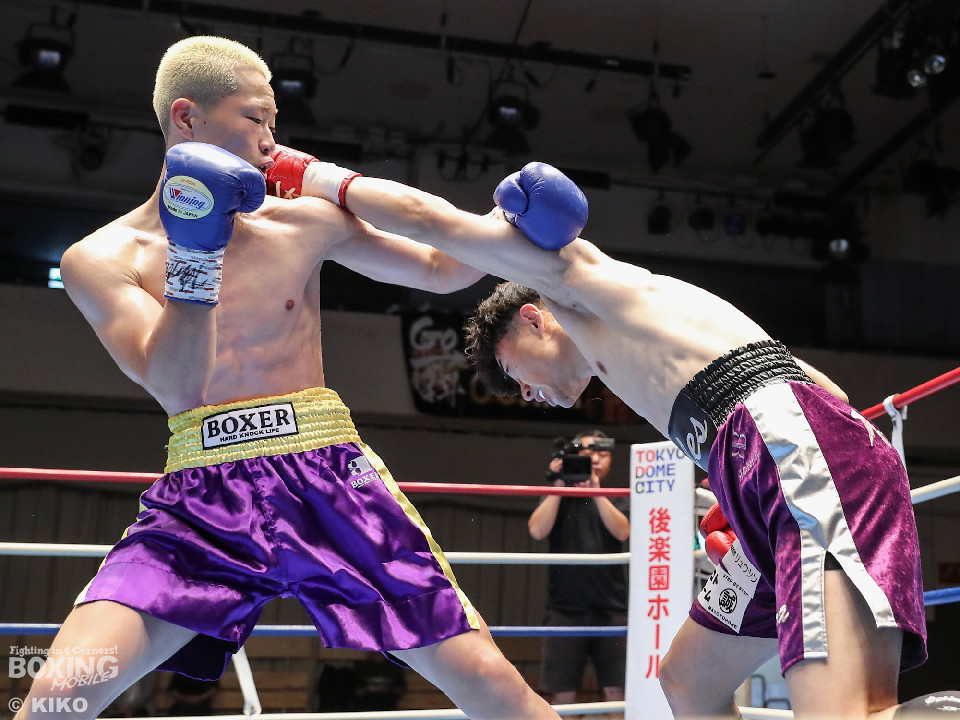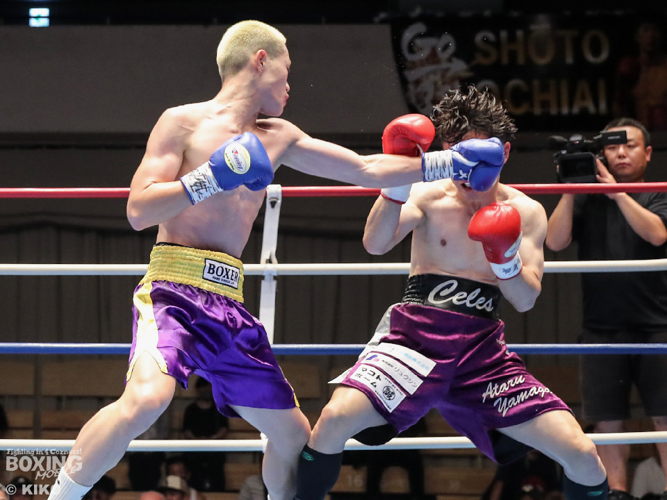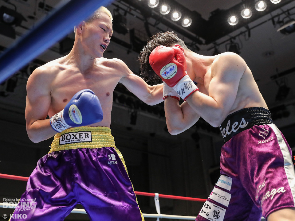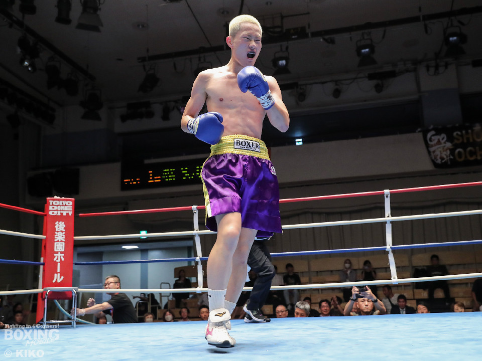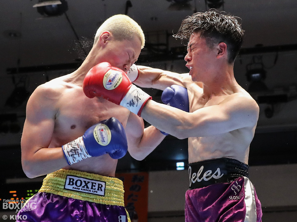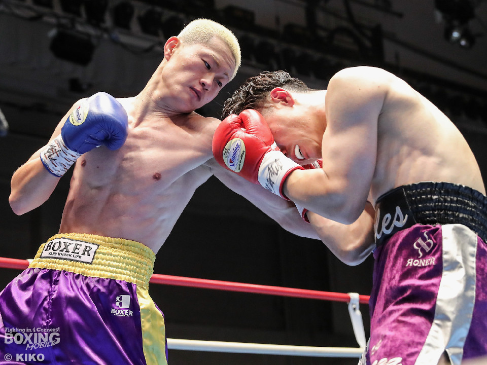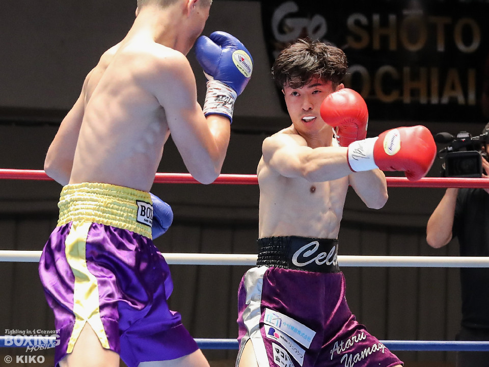 試合:亀田が中間距離をキープしながら左フック、ワンツーをヒットし見栄えの良いボクシング。2回、サウスポー山鹿はガードを固めながら距離を詰めるが、亀田は真っ向から応戦すると右アッパーで鮮やかに倒した。3回、亀田は左ボディで動きを止めるとパンチをまとめてフィニッシュに持ち込んだ。