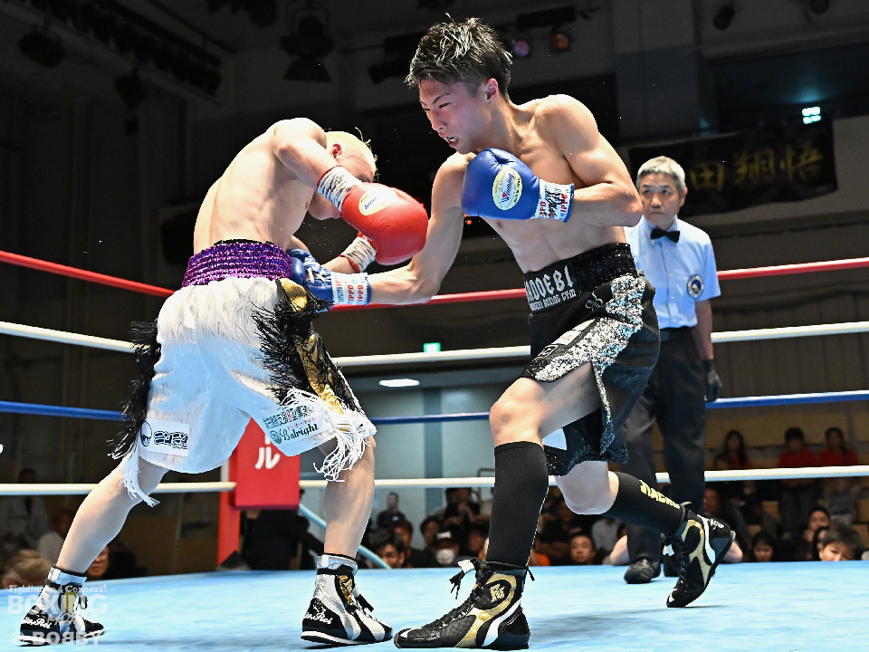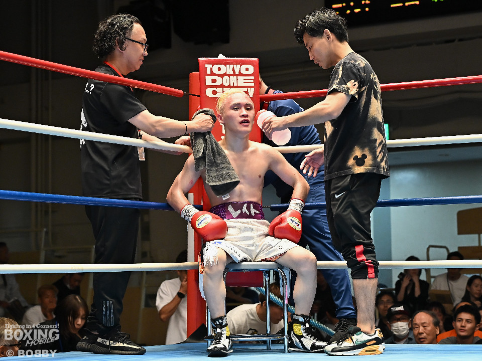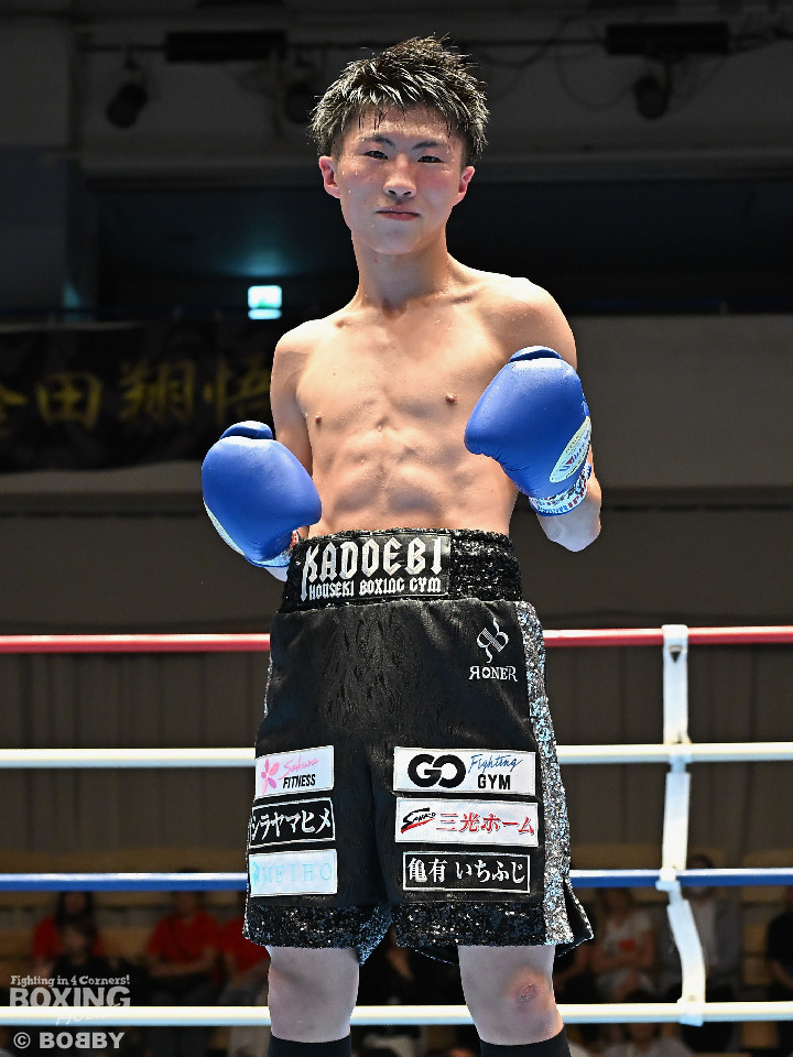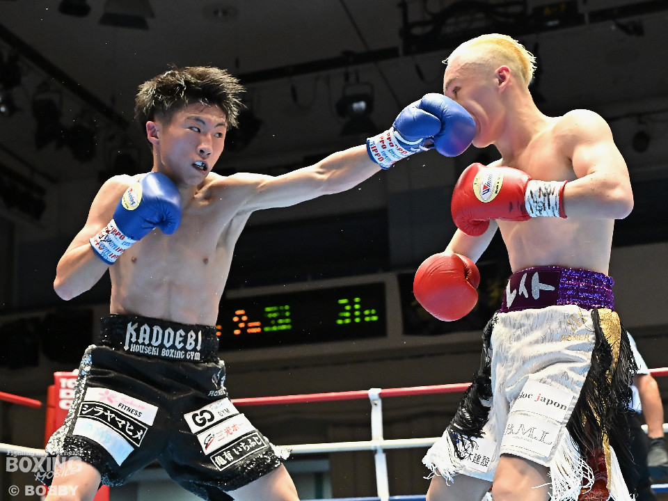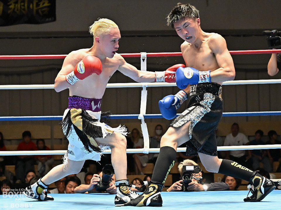 試合:関がステップを刻みながらワンツーを決めると返しのパンチを距離で外してリズム感を構築。2回、サウスポー浅井は左ボディストレートを好打すると積極的な攻撃。関も負けじとパンチを返してペースを渡さず。3回、関は打ったら動きを意識して打ち合いに付き合わず。4回、浅井は圧力を強めて手数を増やして反撃。しかし、関は右ストレートで迎え撃つと真っ向から打ち合った。アウトボクシングが冴えた関が熱戦を制した。