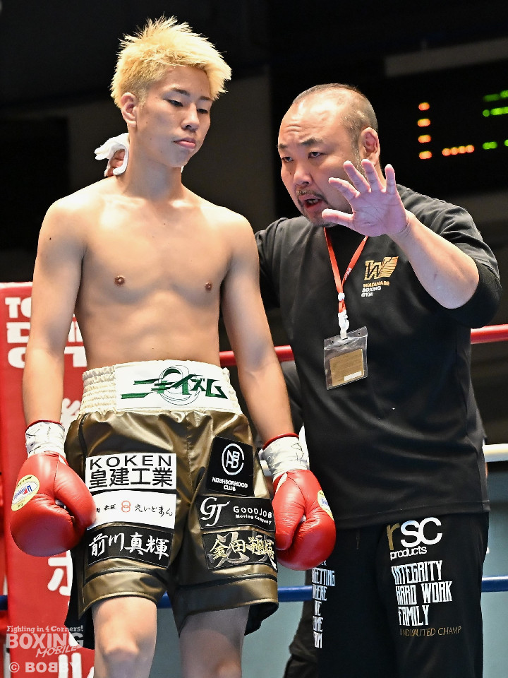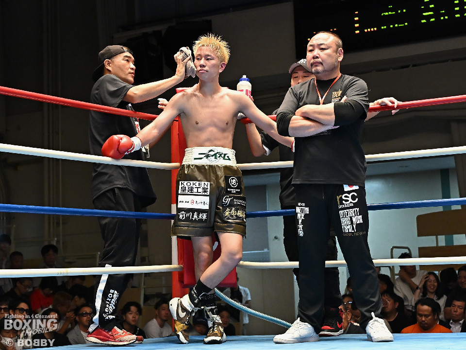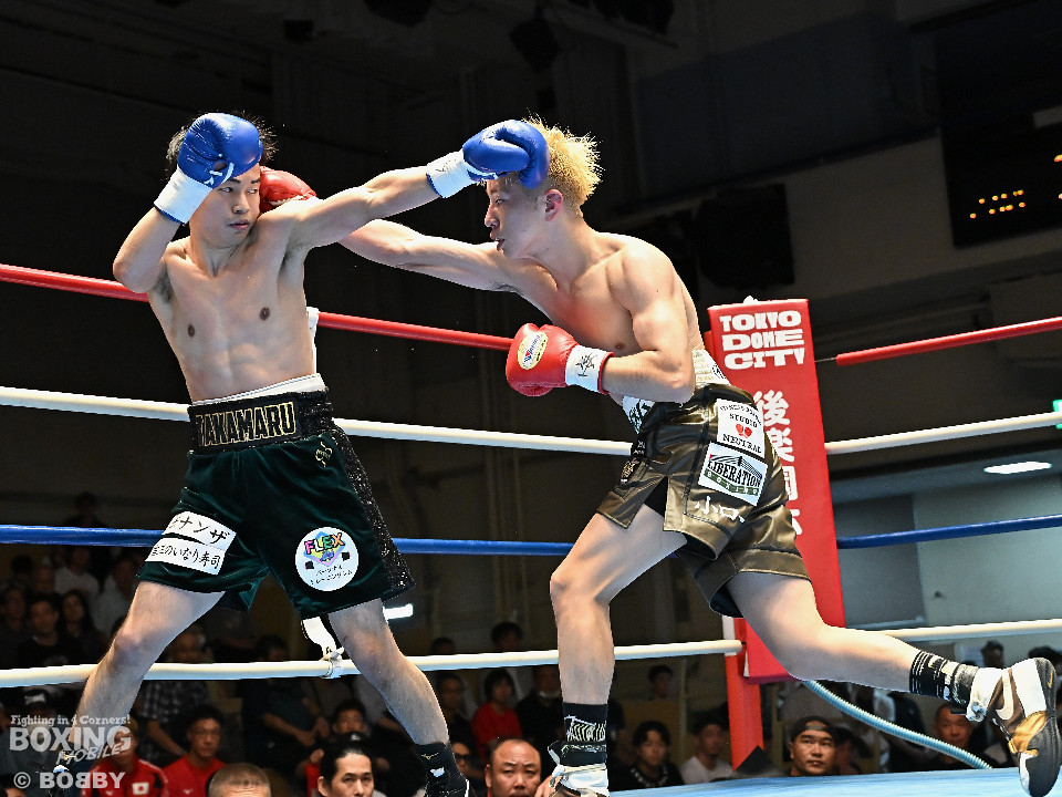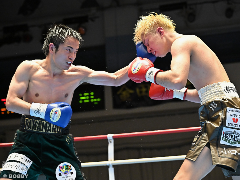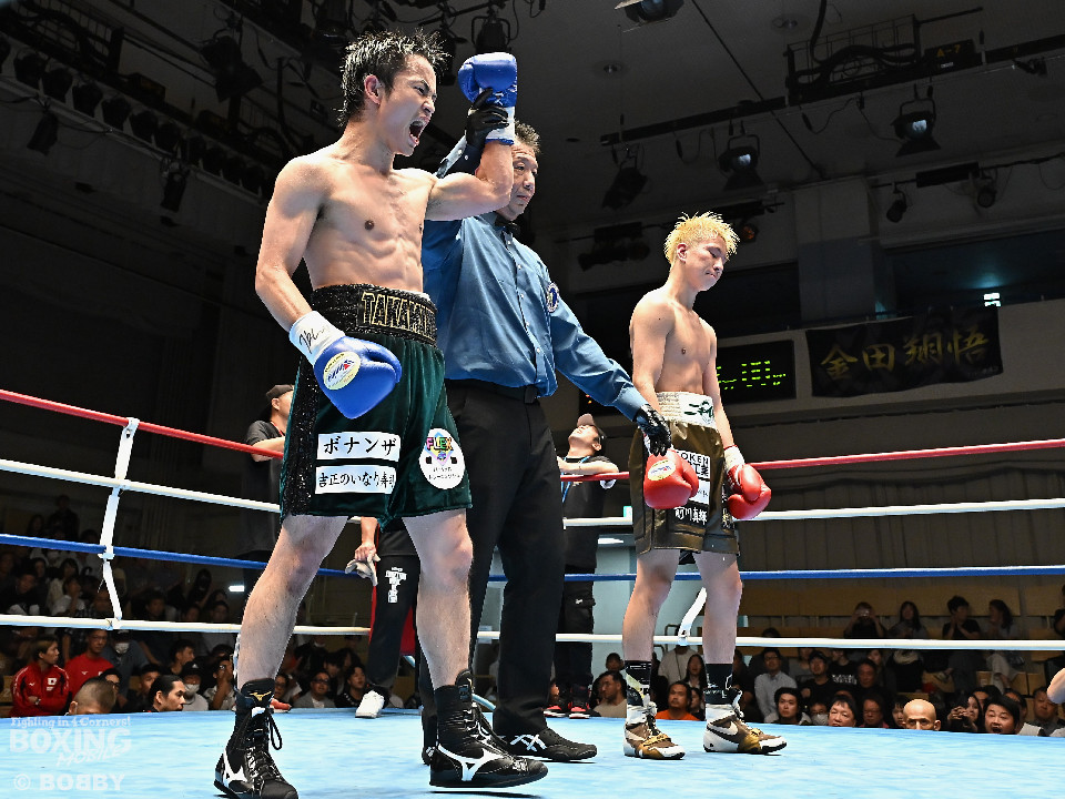 試合:左右に動きながら的を絞らせまいとする矢野に対し、金田はプレスをかけて力強いワンツーをヒット。2回、矢野は右フックを合わせると変則的な動きでやりにくさを発揮。3回も、矢野は相手の右を警戒しながら折を見て右フックを好打。曲者ぶりで金田の思い通りにさせず。4回、金田はなりふり構わず左右フックを振り回すが、矢野は距離を潰して回転力を活かした連打で積極性をアピールした。ジャッジ2者の支持を得た矢野が勝利した。