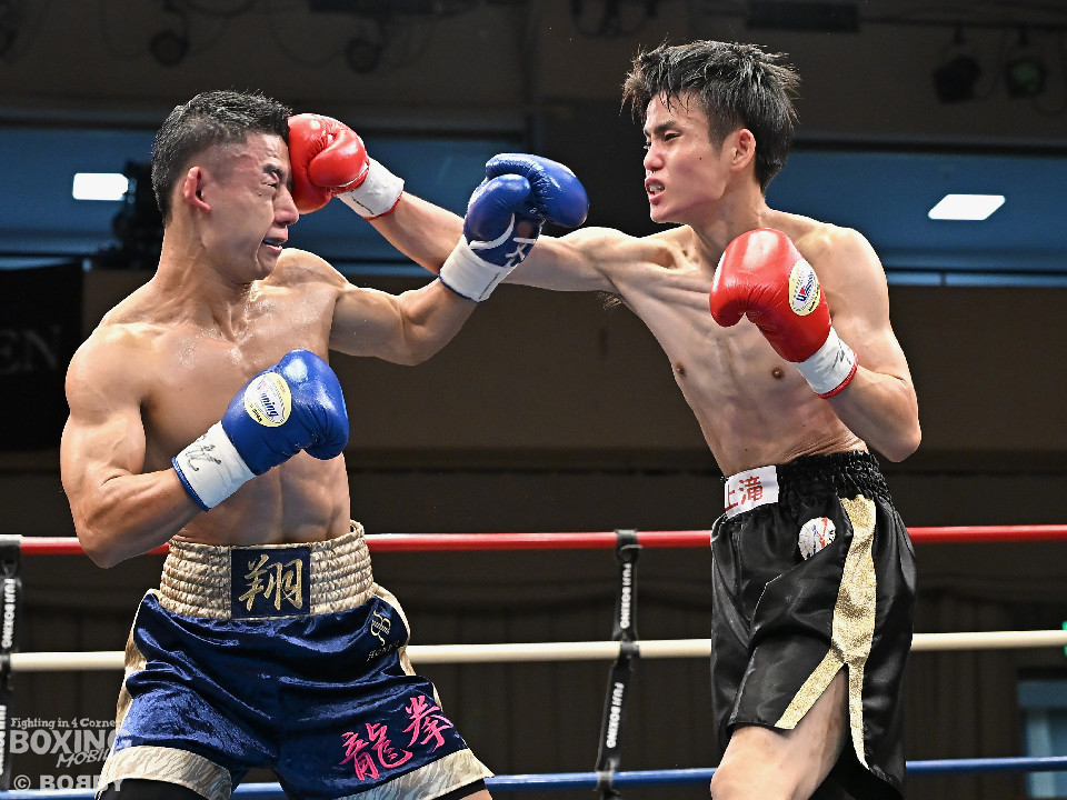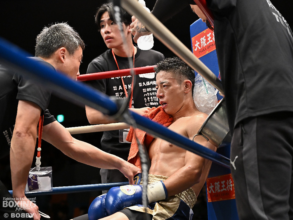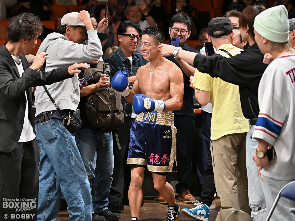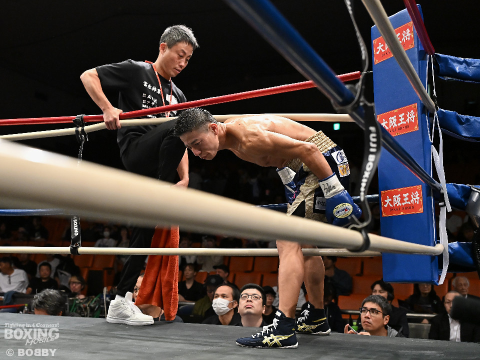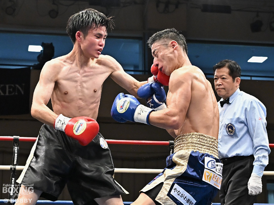 試合:松村が距離を詰めて左右フックでグイグイと攻め立ててペースを掌握。乱打戦に巻き込まれた太田は必死に返したが、後手に回る。勢いに乗った松村は連打で攻勢をかけて幸先の良いスタートを切った。2回、ジャブから立て直しを図る太田だが、松村は回転力を活かした連打で押し込むとダメージの深さを考慮したレフェリーがストップした。デビュー戦を飾った松村は大応援団の声援に手を挙げて応えた。