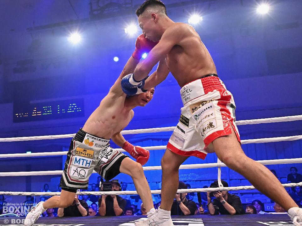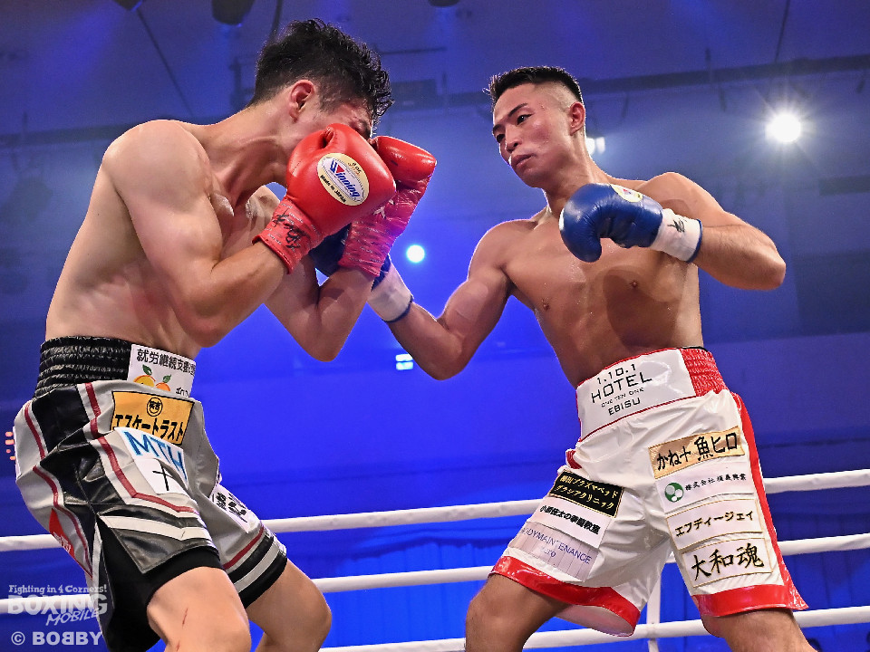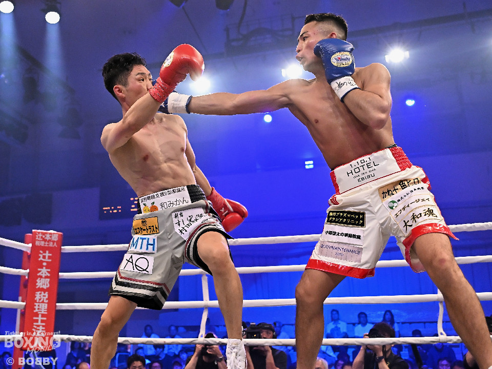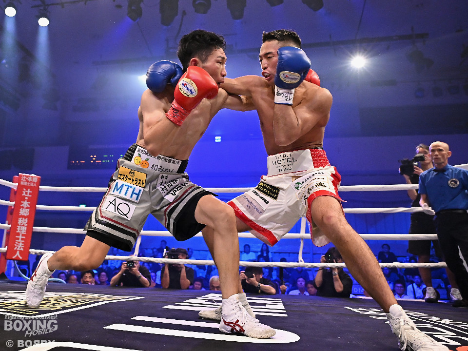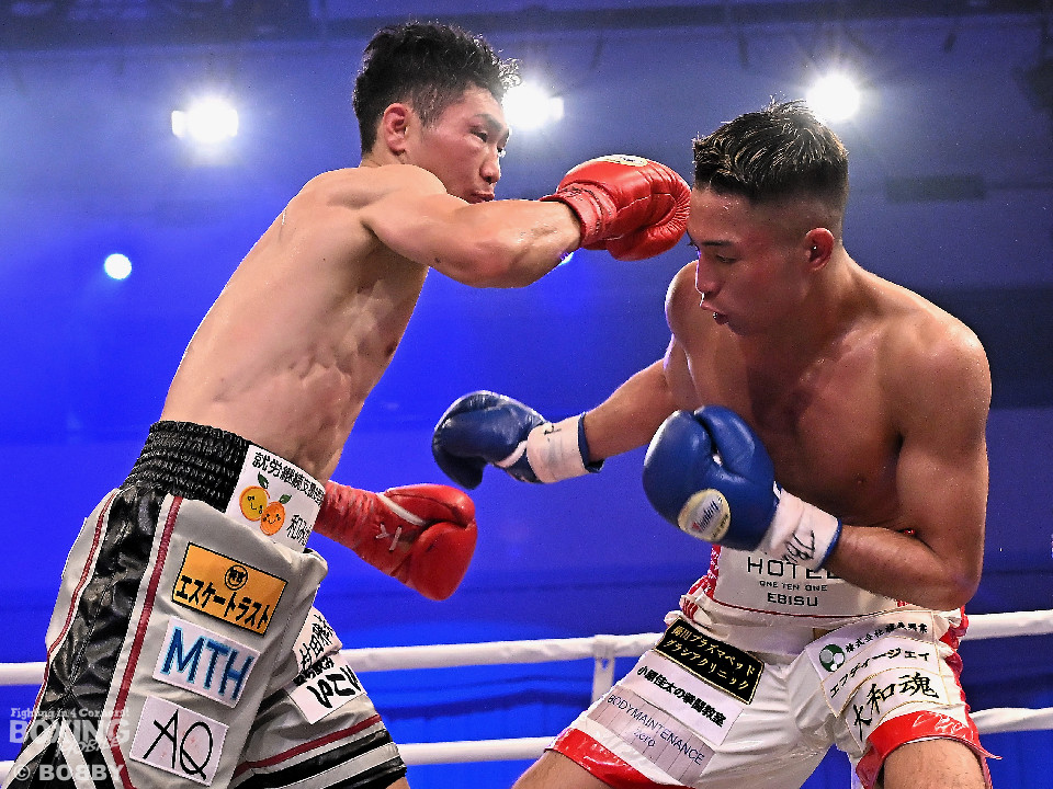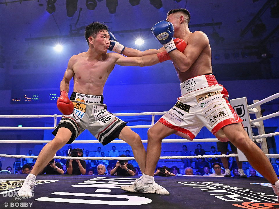 試合:前OPBF東洋太平洋バンタム級王者の栗原と前日本ユース同級王者の金城による注目の一戦。サウスポー金城が相手の右を警戒しながら左オーバーハンドを叩きつけて先制。2回、栗原はグイっと飛び込み右から切り込むが、金城は冷静に対応するとワンツーを好打。栗原はヒッティングで右目尻をカットした。3回、金城は前の手でコントロールしながら距離をキープするとワンツーでダウンを奪った。立ち上がった栗原だが、苦しくなってきた。4回も金城はスピードを活かしたボクシングでペースを維持。5回、栗原は強引に詰めて左ボディをヒット。金城はフーッと息を吐き態勢を整えようとするが、ラウンド終了間際、栗原の渾身の右ストレートがジャストミート!痛烈に倒し返した。意識朦朧としながら立ち上がろうとした金城だったが、レフェリーは10カウントを数え上げた。逆転KO勝ちを飾った栗原はリング上で勝利の雄たけびをあげた。ダメージが深い金城は担架で運ばれた。