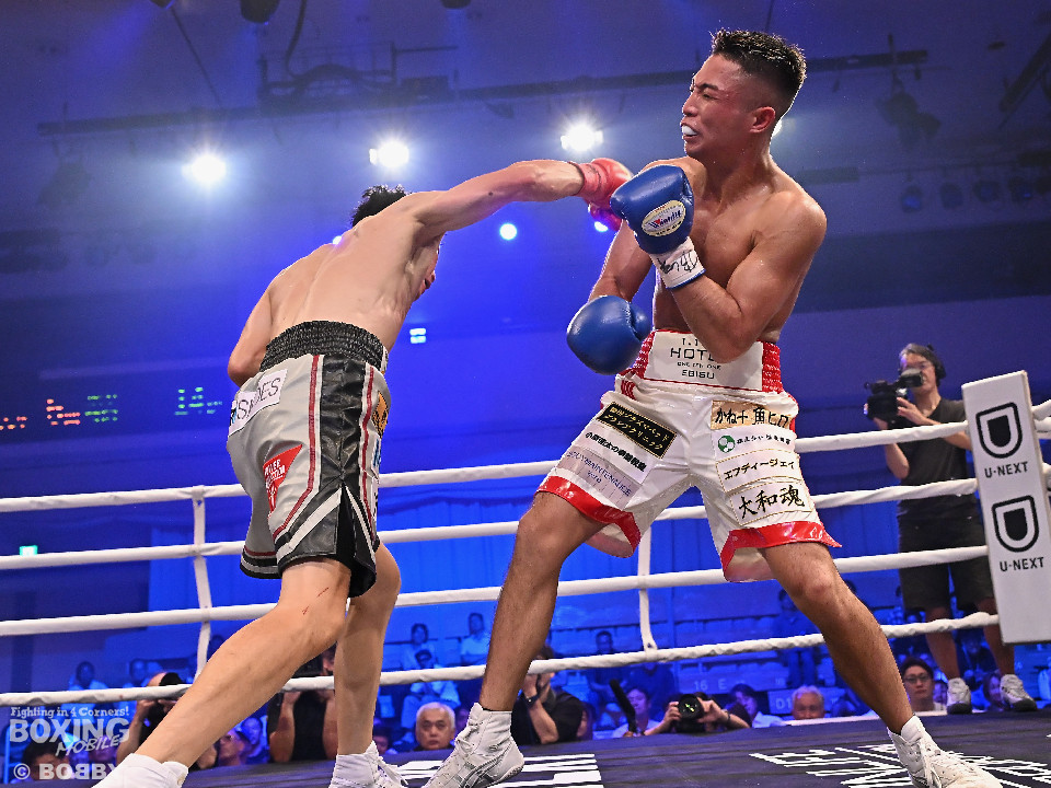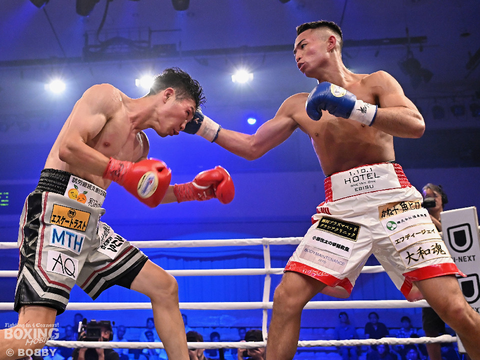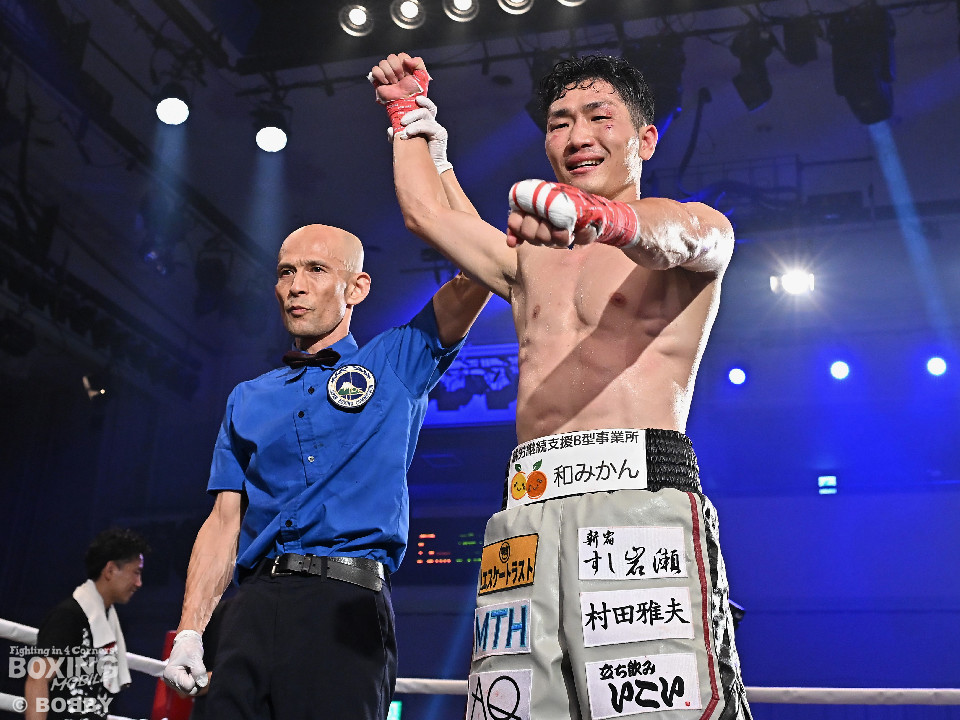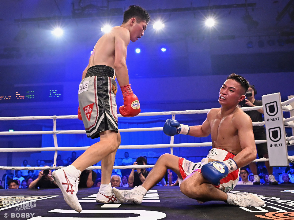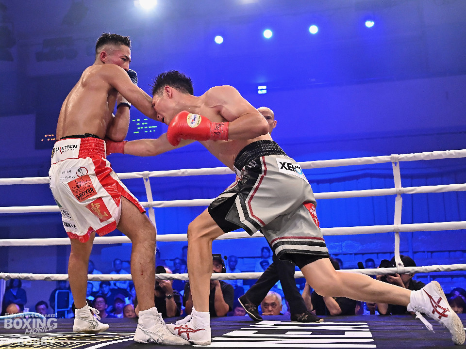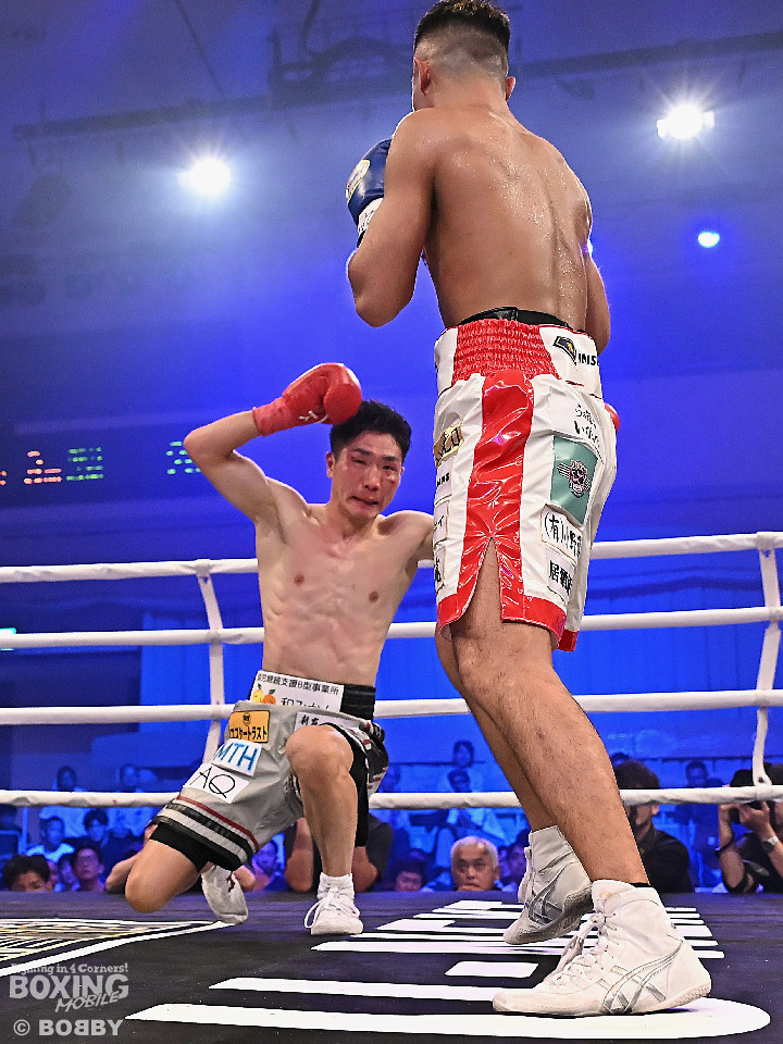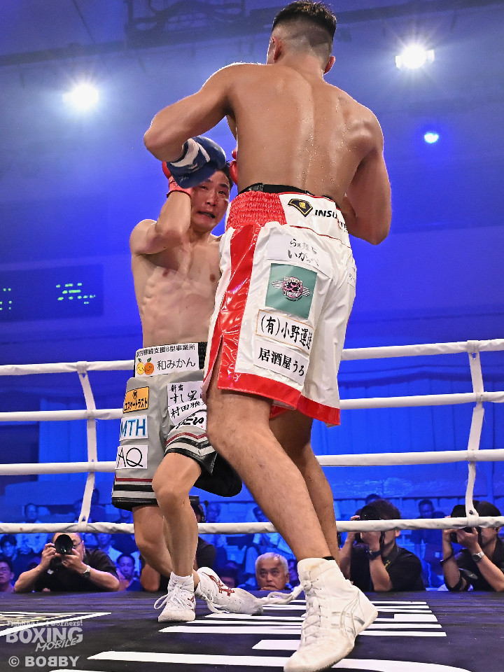 試合:前OPBF東洋太平洋バンタム級王者の栗原と前日本ユース同級王者の金城による注目の一戦。サウスポー金城が相手の右を警戒しながら左オーバーハンドを叩きつけて先制。2回、栗原はグイっと飛び込み右から切り込むが、金城は冷静に対応するとワンツーを好打。栗原はヒッティングで右目尻をカットした。3回、金城は前の手でコントロールしながら距離をキープするとワンツーでダウンを奪った。立ち上がった栗原だが、苦しくなってきた。4回も金城はスピードを活かしたボクシングでペースを維持。5回、栗原は強引に詰めて左ボディをヒット。金城はフーッと息を吐き態勢を整えようとするが、ラウンド終了間際、栗原の渾身の右ストレートがジャストミート!痛烈に倒し返した。意識朦朧としながら立ち上がろうとした金城だったが、レフェリーは10カウントを数え上げた。逆転KO勝ちを飾った栗原はリング上で勝利の雄たけびをあげた。ダメージが深い金城は担架で運ばれた。