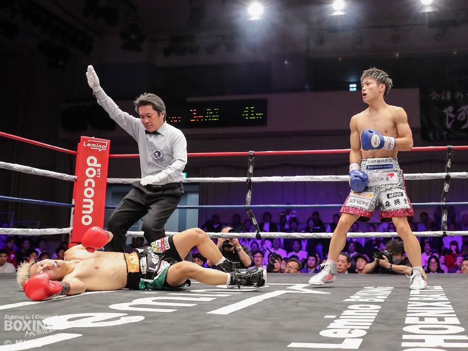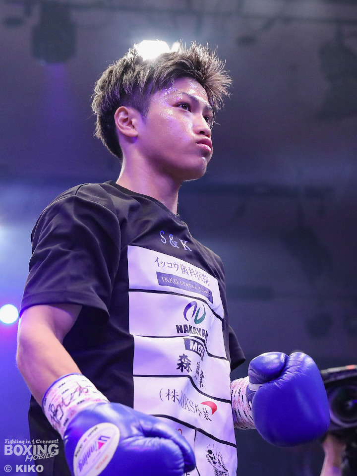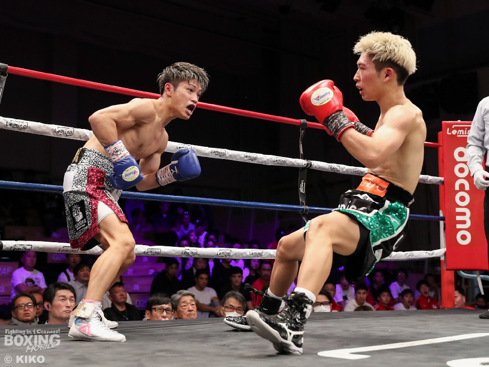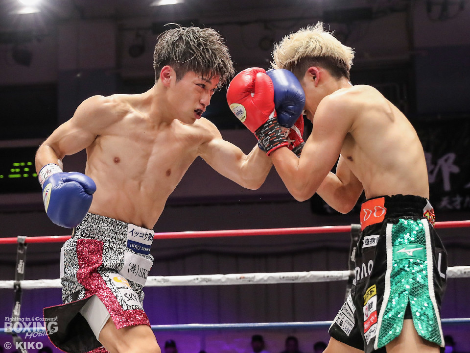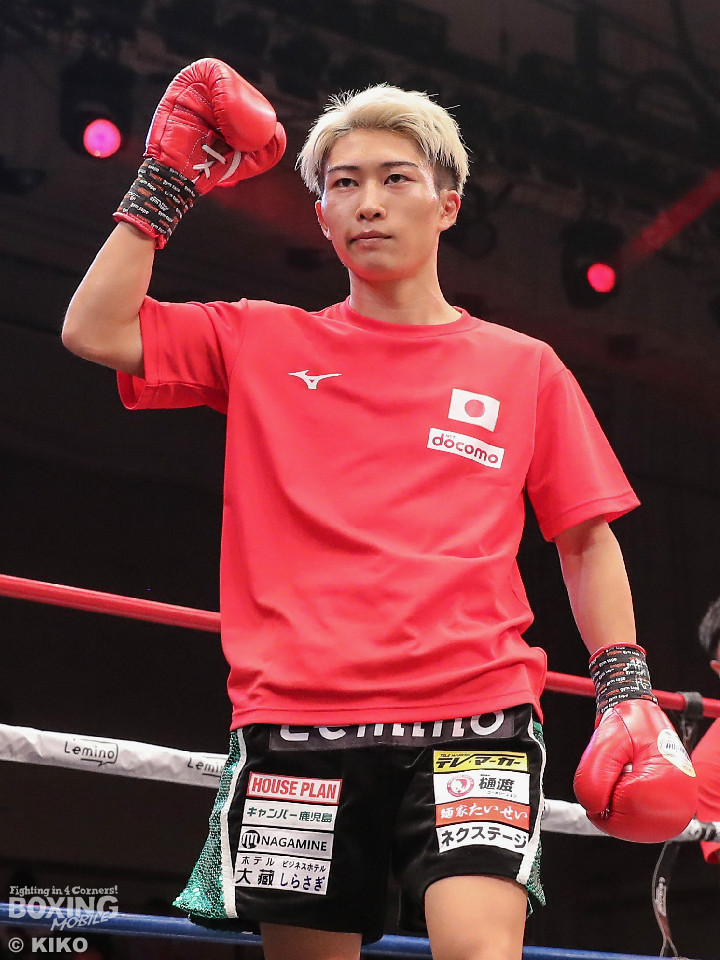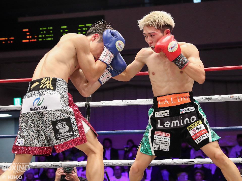 試合:アマチュア8冠の実績を持つ荒竹がプロ2戦目で日本8位の坂田と拳を交えた。サウスポー同士による一戦は、荒竹がジャブを飛ばしてテンポの良く攻めるのに対し、坂田はリターンの右フックで対抗。2回、中間距離でハイテンポな攻防を繰り広げる中、坂田が要所で左ボディアッパーを合わせた。3回、荒竹は右ボディを突き刺すと回転力を上げて攻勢。ここを踏ん張った坂田はカウンターの右フックでダウンを奪取。再開後、攻撃の手を緩めず連打で倒すと、右フックで3度目のダウンを奪いフィニッシュした。熊本から参戦した坂田はリング上で喜びを爆発させた。ダメージが深い荒竹は担架で運ばれた。