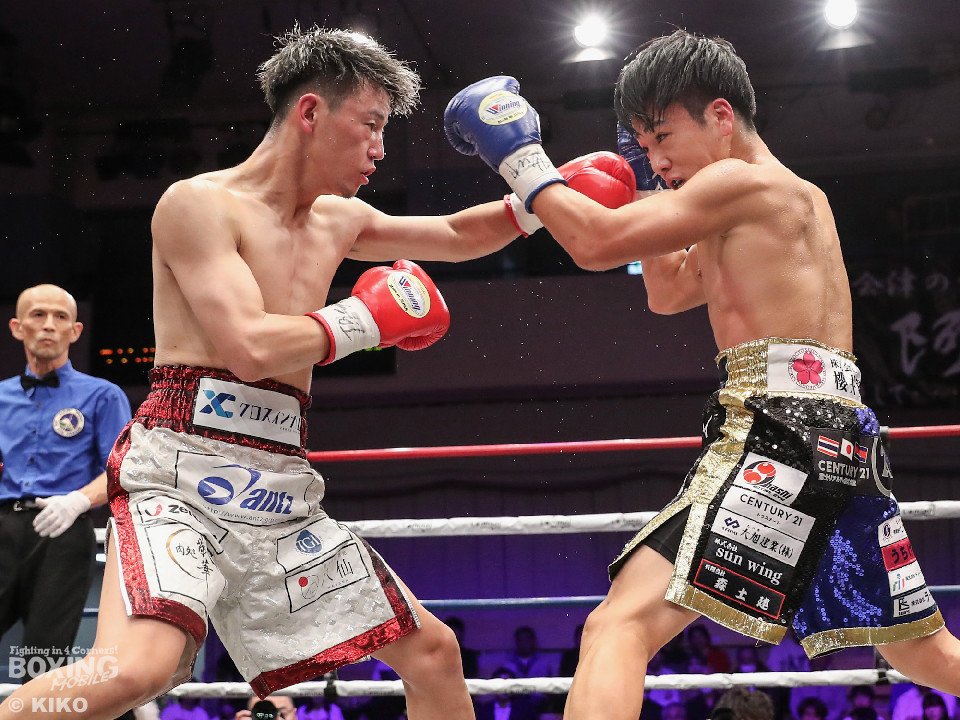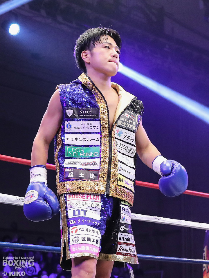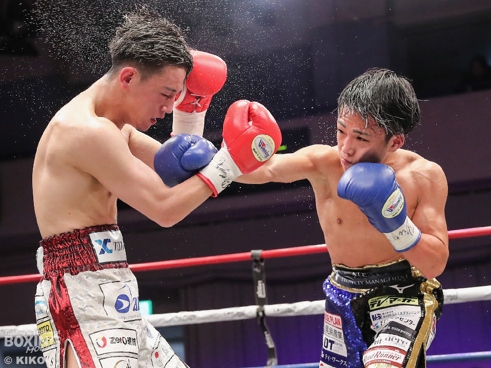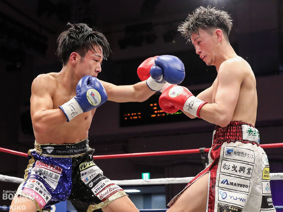 試合:空位の日本ミニマム級王座を小林と森が争った。初回、小林が前後の動きを意識しながら右オーバーハンドで脅かし先制。鋭い踏み込みから右ボディストレートを差し込んだ。2回、森は打ち終わりにコンパクトなコンビネーションで反撃。3回、小林は前後の動きを意識しながら右ボディストレートを好打。頭がぶつかり両者に休憩が与えられた。4回、テンポを上げた森は要所で左ボディをヒット。5回、森は上下に揺さぶりをかけながら左ボディを好打。前半終了時の公開採点は、48-47×2、49-46×1で森がリード。6回、森は相手の右を冷静にブロックすると右フックで顔を弾き見栄えの良さをアピール。7回、小林はボディジャブ、左ボディを決めれば、森もリターンの左ボディで応戦。8回、森は左アッパーを顔を弾くと打ち合いでも上回った印象。9回、流れを変えたい小林だが決定打を打ち込めず。10回、「且貴」コールが沸き起こる中、森はジャブを軸に機動力を活かしたボクシングを見せた。森が4度目の挑戦で悲願のタイトル獲得に成功、コールを聞いた森は天井を仰ぎ、勝利の味を噛み締めた。