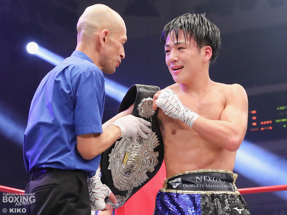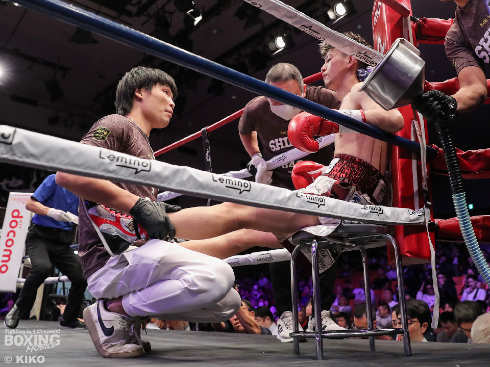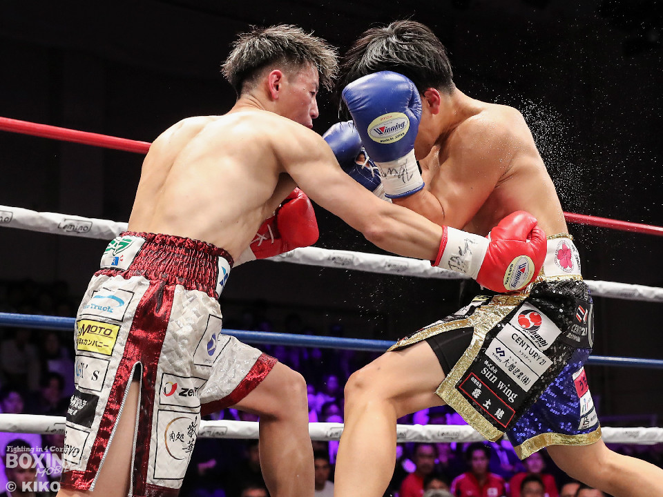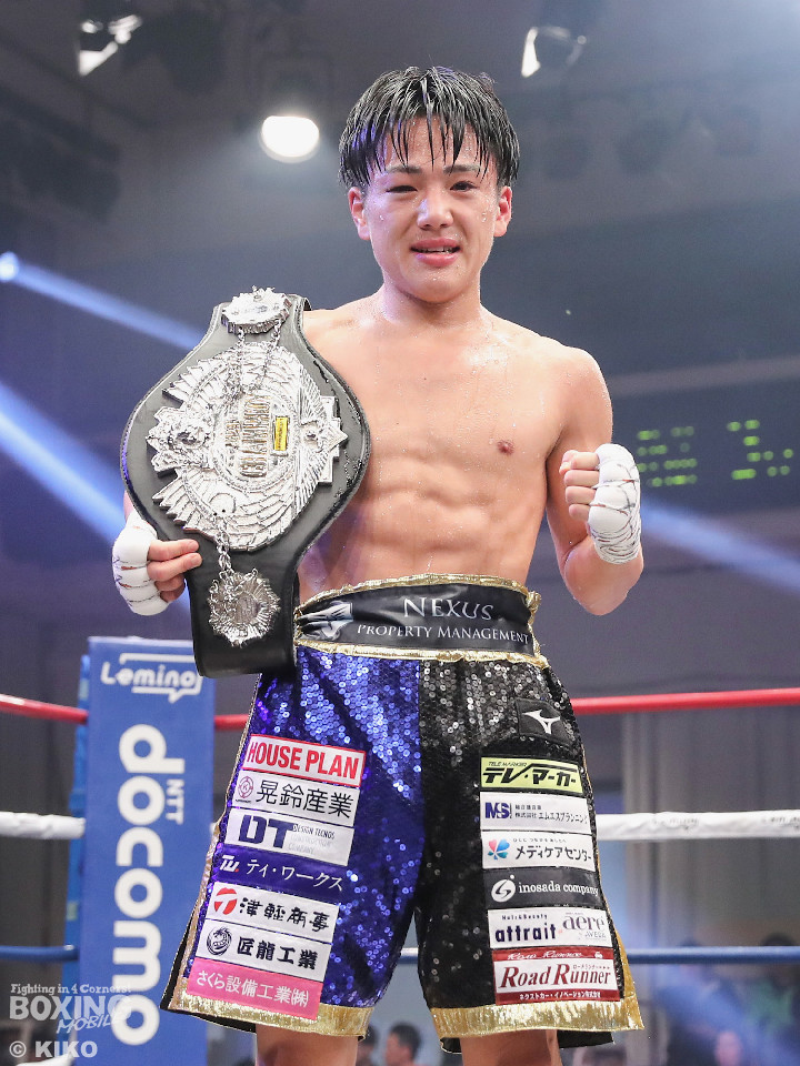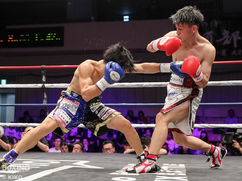試合:空位の日本ミニマム級王座を小林と森が争った。初回、小林が前後の動きを意識しながら右オーバーハンドで脅かし先制。鋭い踏み込みから右ボディストレートを差し込んだ。2回、森は打ち終わりにコンパクトなコンビネーションで反撃。3回、小林は前後の動きを意識しながら右ボディストレートを好打。頭がぶつかり両者に休憩が与えられた。4回、テンポを上げた森は要所で左ボディをヒット。5回、森は上下に揺さぶりをかけながら左ボディを好打。前半終了時の公開採点は、48-47×2、49-46×1で森がリード。6回、森は相手の右を冷静にブロックすると右フックで顔を弾き見栄えの良さをアピール。7回、小林はボディジャブ、左ボディを決めれば、森もリターンの左ボディで応戦。8回、森は左アッパーを顔を弾くと打ち合いでも上回った印象。9回、流れを変えたい小林だが決定打を打ち込めず。10回、「且貴」コールが沸き起こる中、森はジャブを軸に機動力を活かしたボクシングを見せた。森が4度目の挑戦で悲願のタイトル獲得に成功、コールを聞いた森は天井を仰ぎ、勝利の味を噛み締めた。