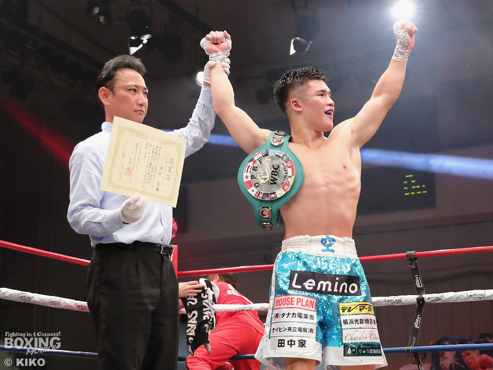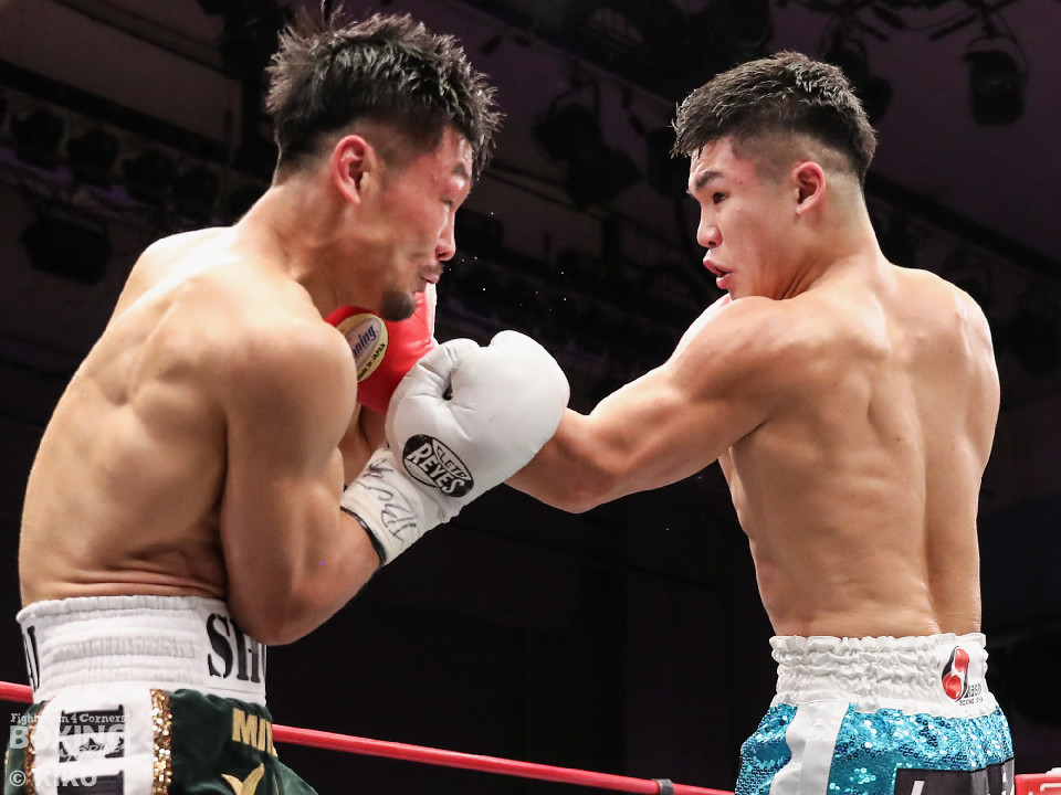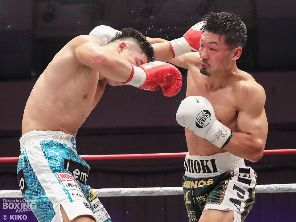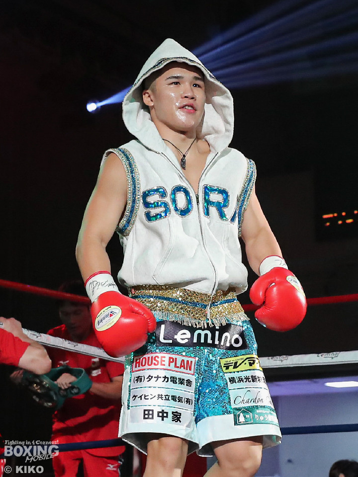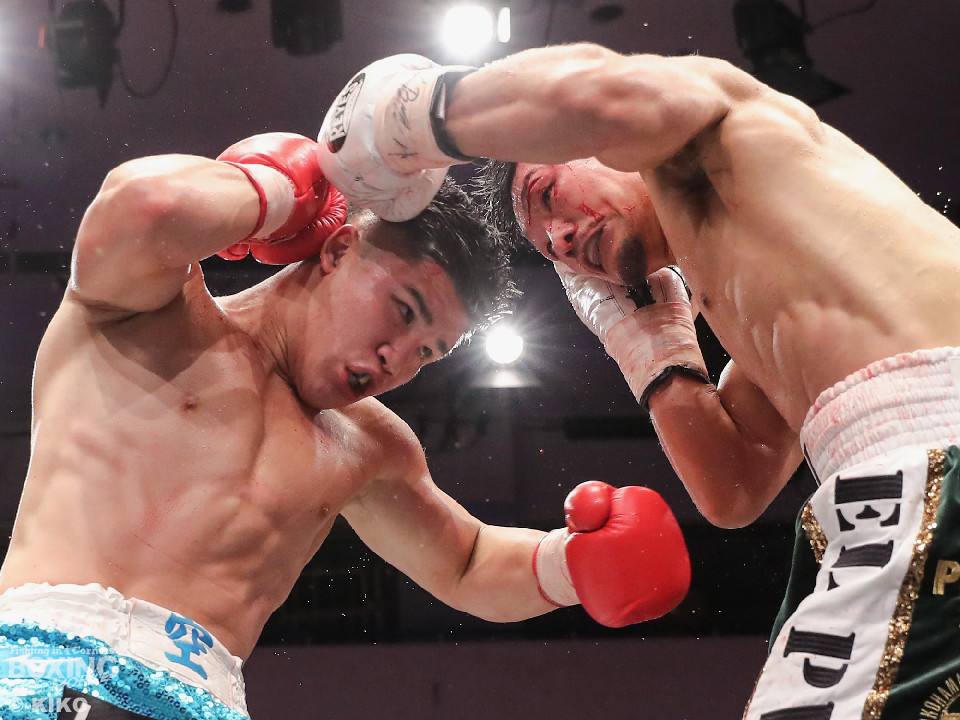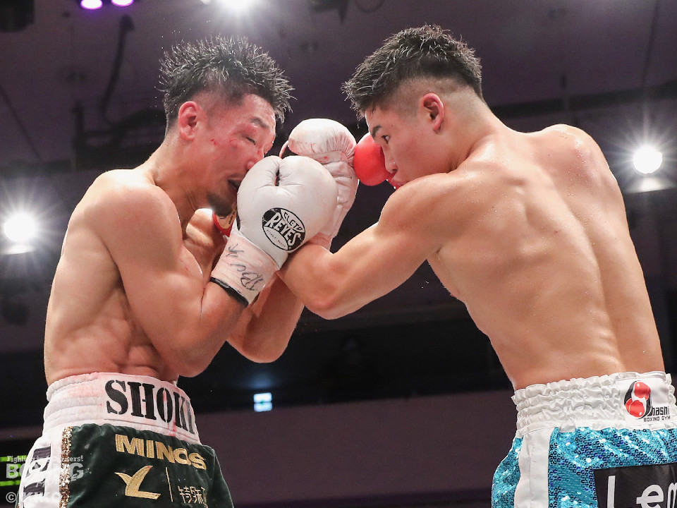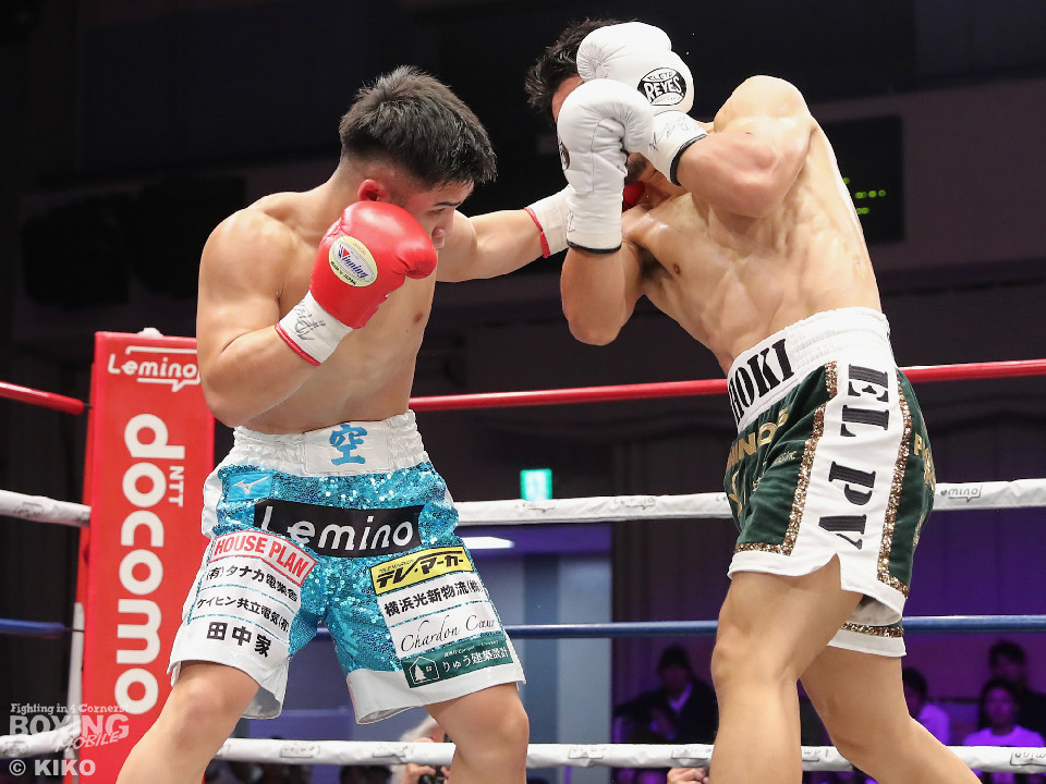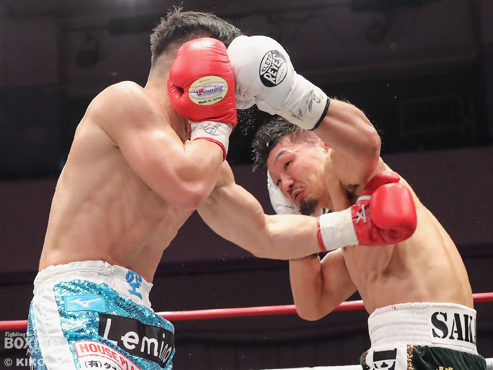 試合:「ハマのタイソン」のニックネームを持つOPBF東洋太平洋ウェルター級王者の田中が、47戦のキャリアを持つベテラン坂井を迎え撃った。初回、田中がコンパクトなコンビネーションを上下に打ち分け積極的な攻撃。2回、田中は左アッパーを織り交ぜつつ、サウスポーにスイッチ。さらに返しの右を冷静にブロックした。3回、坂井は左ボディで反撃を試みるが、田中は強弱をつけて倍返し。4回、右ストレートが交錯するスリリングな攻防を繰り広げる中、田中がワンツーで左目上を切り裂いた。5回、傷が深くなってきた坂井は相撃ちを狙うが、田中は滑らかなコンビネーションを決めた。前半終了時の公開採点は、50-45×3で田中がリード。6回、至近距離で激しい打撃戦を展開。坂井の傷がさらに深くなり、3度目のドクターチェックを要請したレフェリーはこれ以上に試合続行を許さず。田中がTKO勝ちで初防衛に成功した。