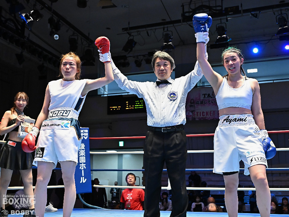 試合:山本が右ストレートから切り込むと右ボディストレートを好打。跡治はヒッティングで左目下を腫らした。2回、跡治は前の手で距離を作りながら右ボディストレートで反撃。3回、山本がプッシュしながらワンツーを繰り出せば、跡治は要所で右ストレートを返した。4回、激しい打撃戦を繰り広げる中、跡治はワンツー、右アッパーで積極的に攻めた。ジャッジ2者は38-38としたため勝敗はつかなかった。