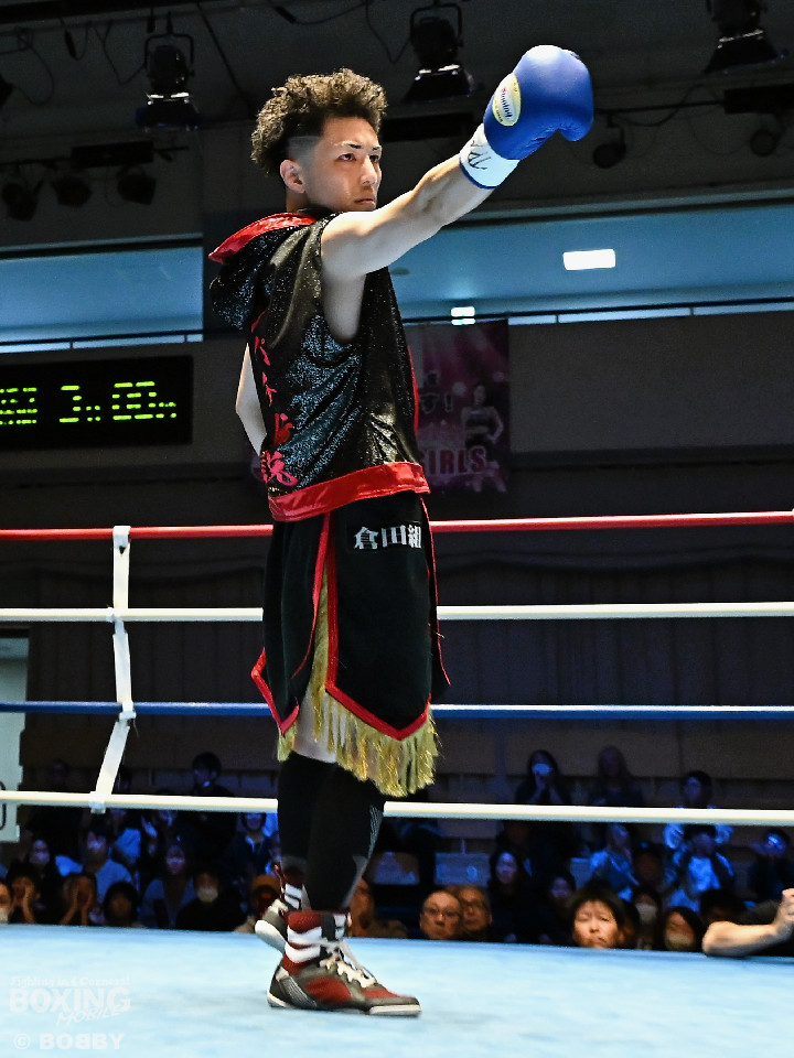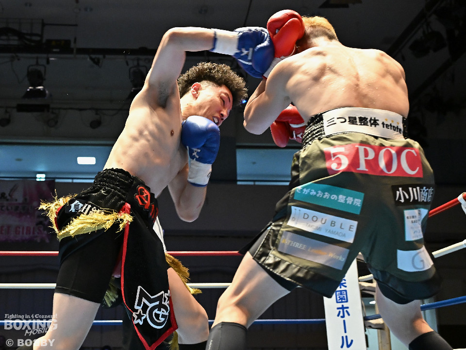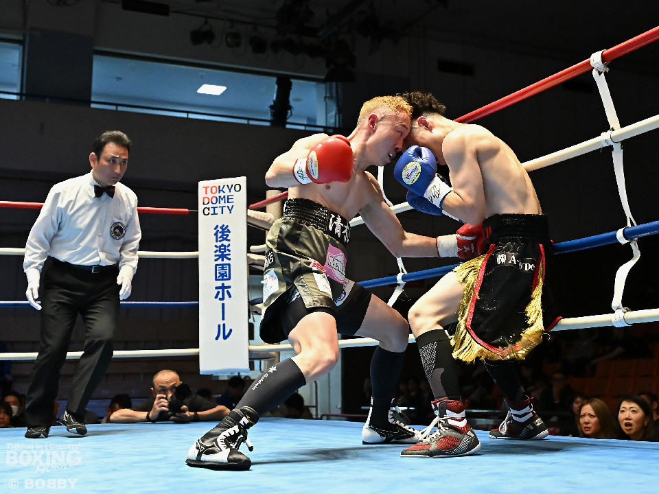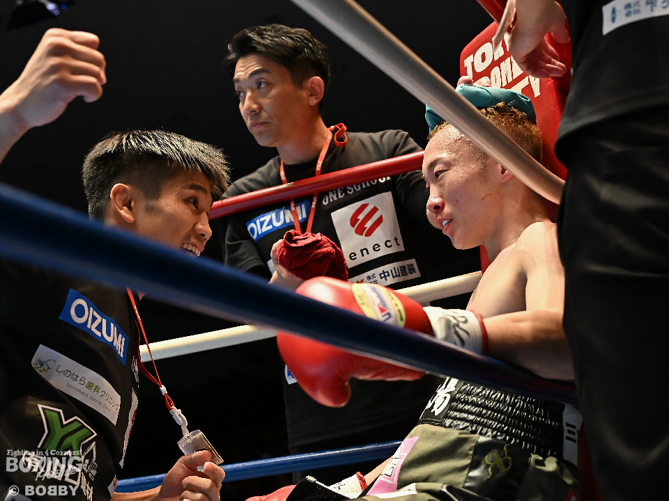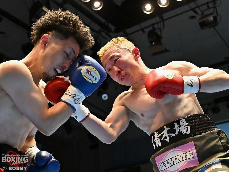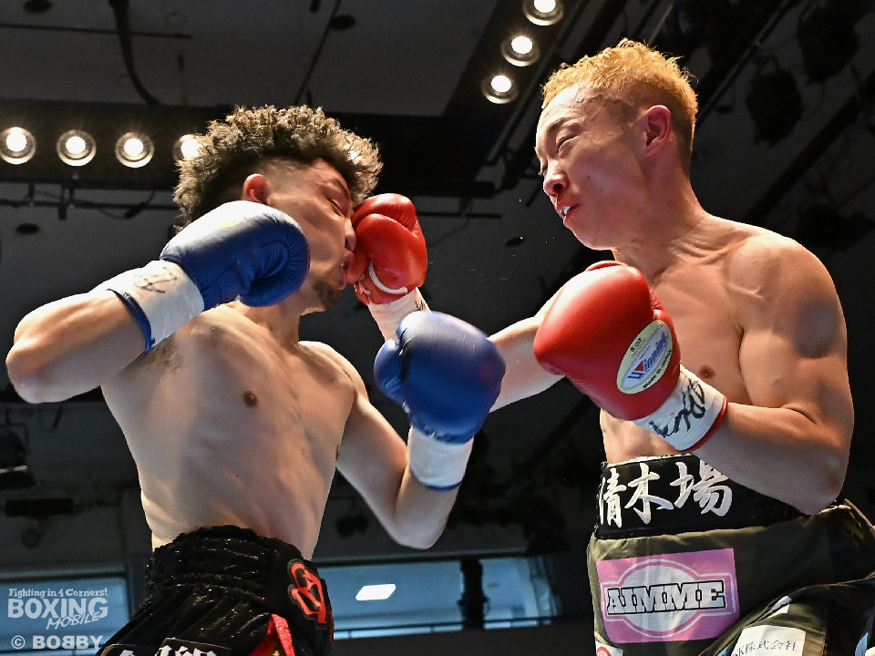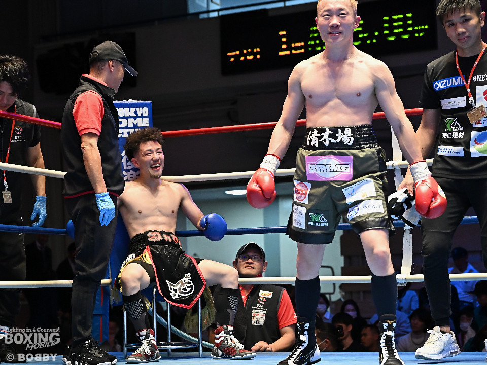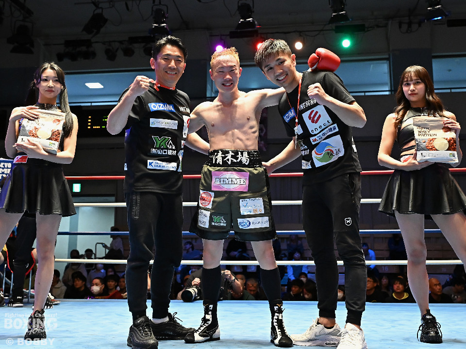 試合:清木場がプレスをかけて右アッパー、左ボディを叩きつけて先制攻撃。後手に回ったアンディだが、右フックで効かせるとジャブからワンツーにつなげて応戦。2回、清木場はジリジリと距離を詰めて左ボディを徹底。3回、アンディは右フックでグラつかせると連打で攻勢。ここを踏ん張った清木場はプッシュしながら必死に返した。4回、清木場は左ボディからパンチをまとめるとアンディ陣営からタオルが投入された。