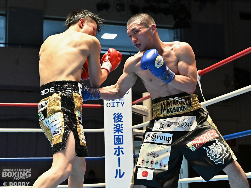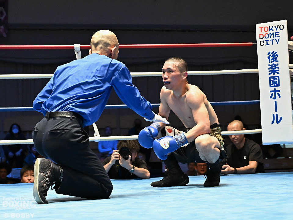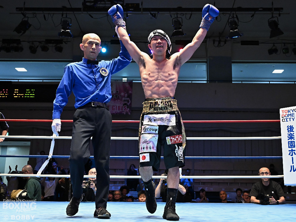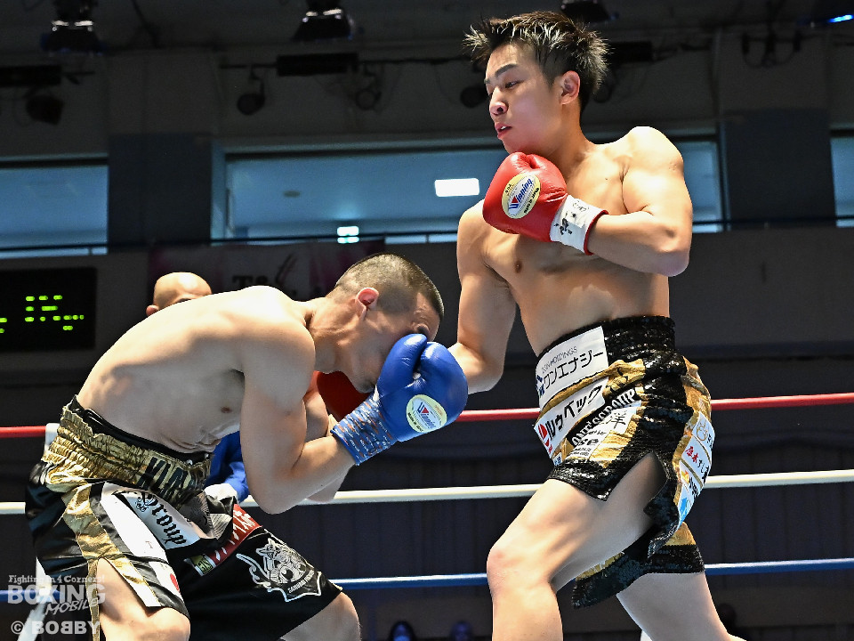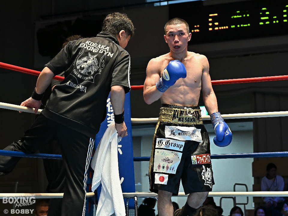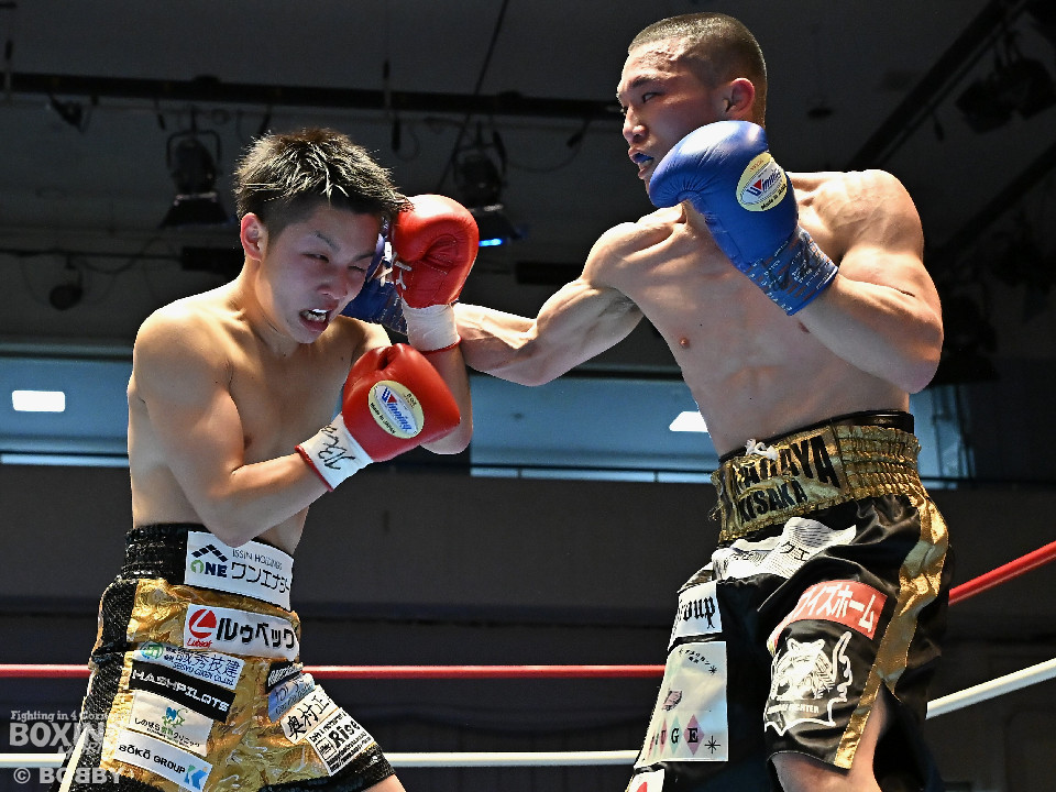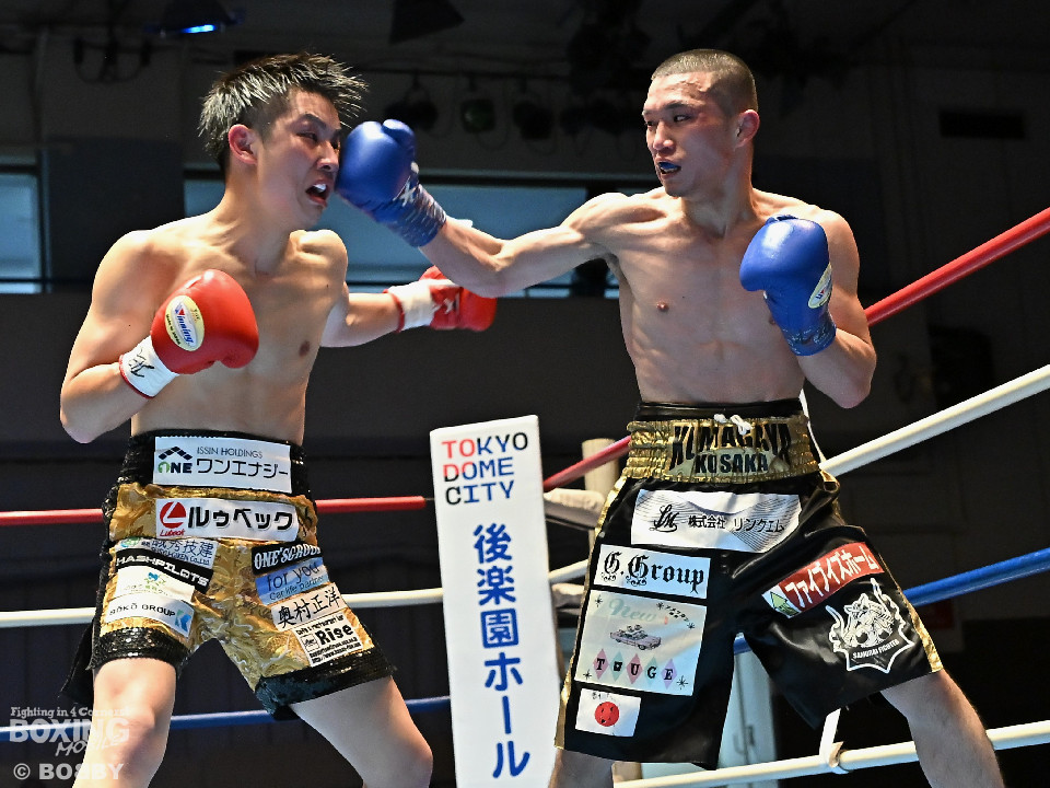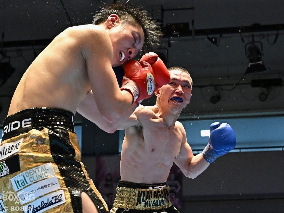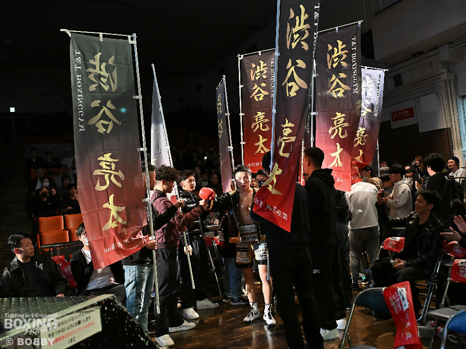 試合:渋谷がジャブを飛ばしながらプレスをかけるのに対し、稲元はサウスポーにスイッチして左オーバーハンドをヒット。ラウンド後半は、サークリングしながら的を絞らせず。2回、稲元は左フックから右ボディを突き刺すが、渋谷は負けじと左ボディを返した。3回、渋谷は右ボディアッパーを皮切りに上下に打ち分けると右フックでダウンを先取。再開後、ボディにパンチを集めて体力を削った。4回、渋谷はこれでもかと左ボディを打ち込むと右ストレートで顔を弾き攻勢。5回、渋谷はジワリジワリと距離を詰めてボディ攻撃を敢行。6回、稲元は右フック、左ストレートを合わせて反撃。このラウンド、稲元はヒッティングで左目上をカット。7回、お互いの意地がぶつかり合う中、稲元が脅威的な粘りを見せて猛追。8回、最後の力を使い切り、壮絶な打撃戦。稲元が力強いパンチを叩き込んだ。採点は割れたが稲元を支持。ダウンを挽回した稲元が撃戦を制した。