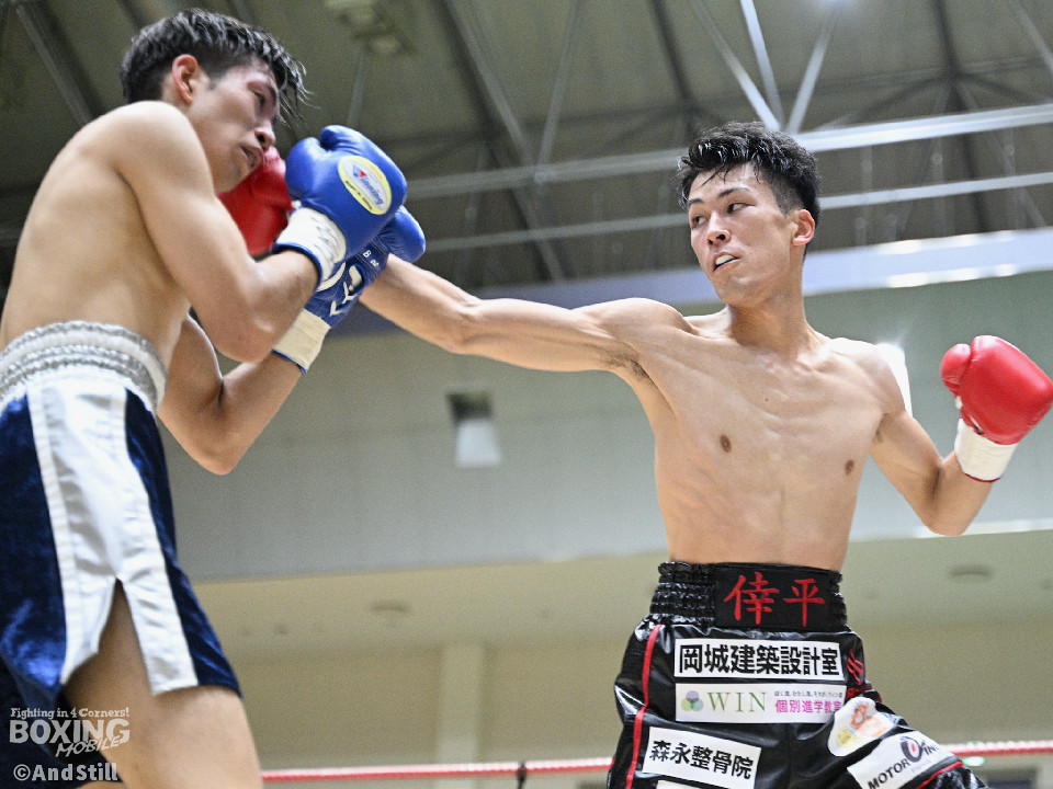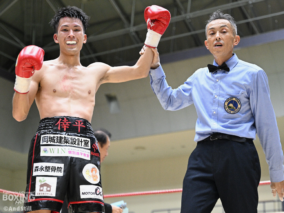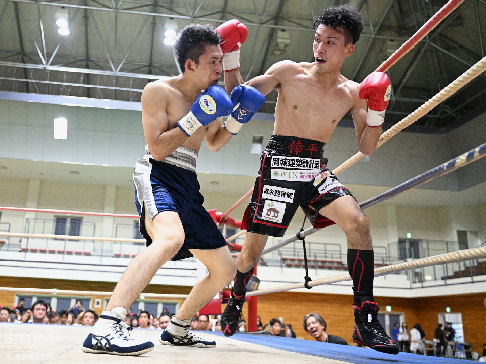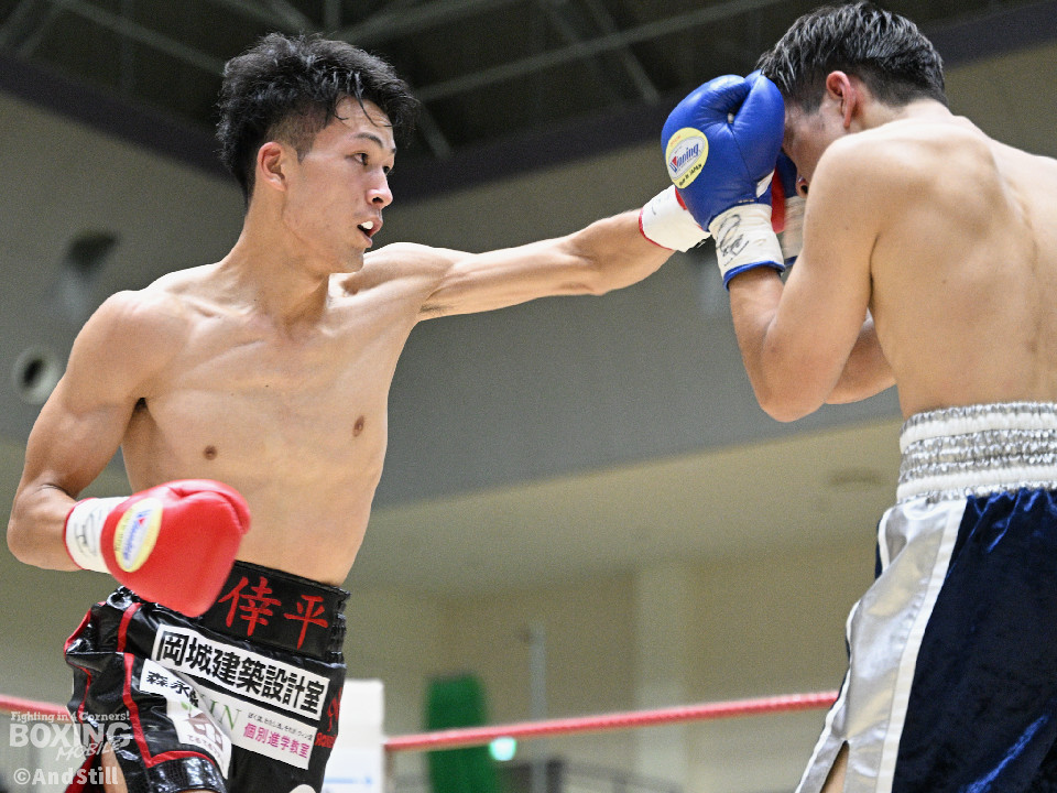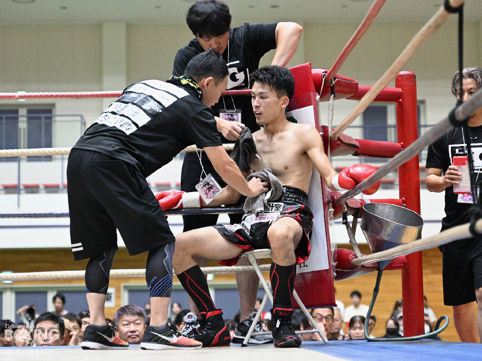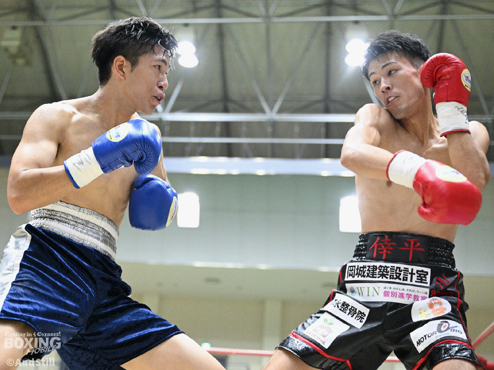 試合:サウスポーの山川がリングを反時計回りに動きながらジャブを突くのに対して渡邉は距離を詰めてジャブを返した。2回、山川は左右のボディと右フックと左ストレートでポイントを稼ぐ。渡邉は右ストレートでボディを狙う。山川の右フックには右を被せたが詰め切れず。3回、足を使う山川を渡邉が追う展開が続く中、渡邉は左右のボディを叩くが、山川も左ストレートと右フックでリズムを保った。最終回、山川のボディを削りにいった渡邉だったが、山川の足を止められず。山川は右フックと左ストレートでポイントアウトした。