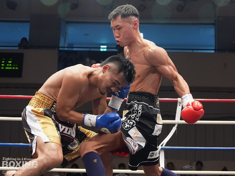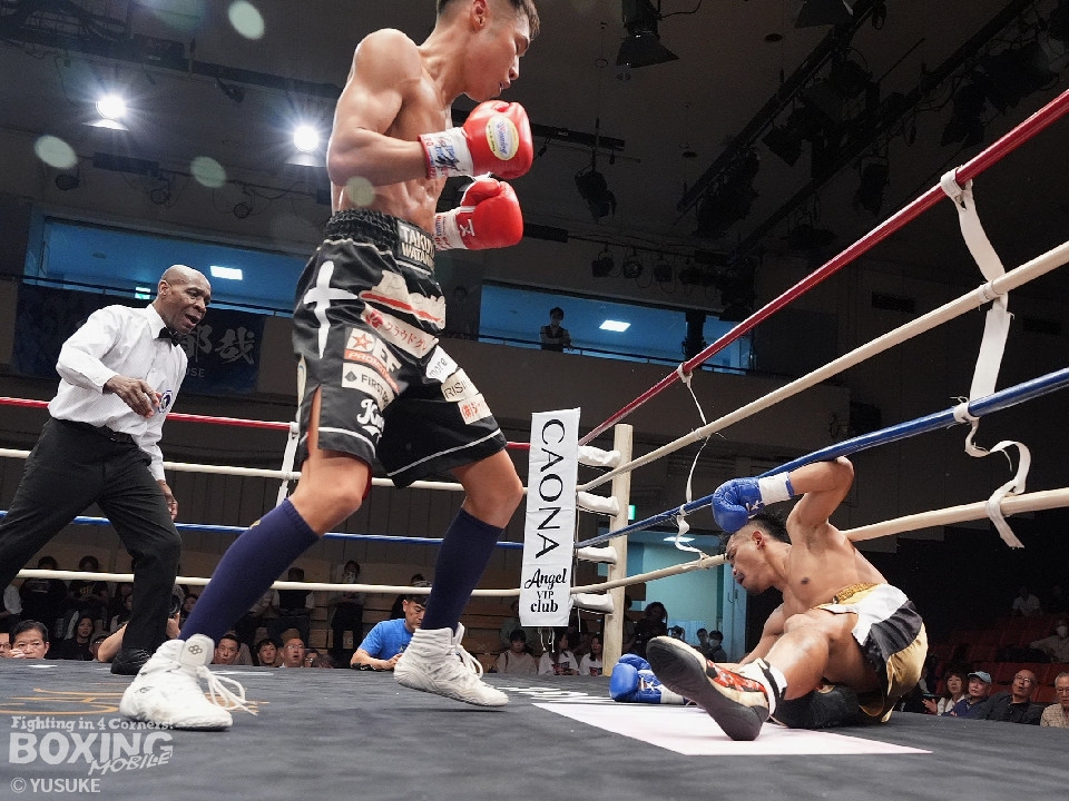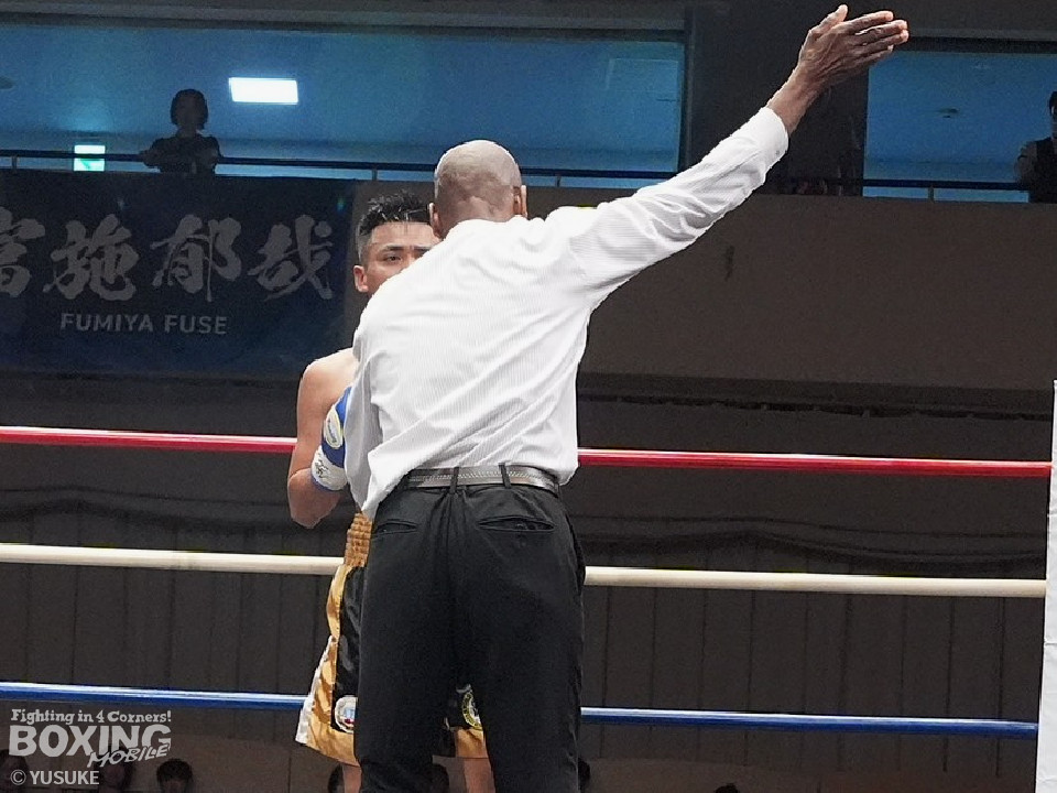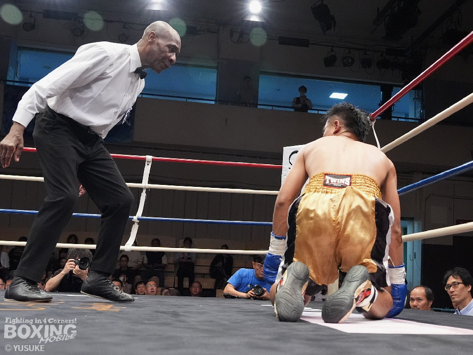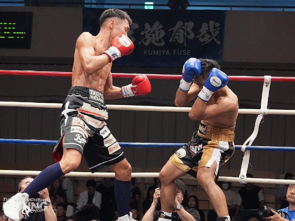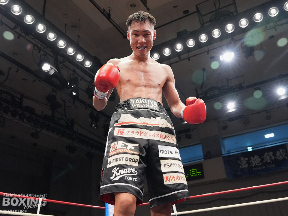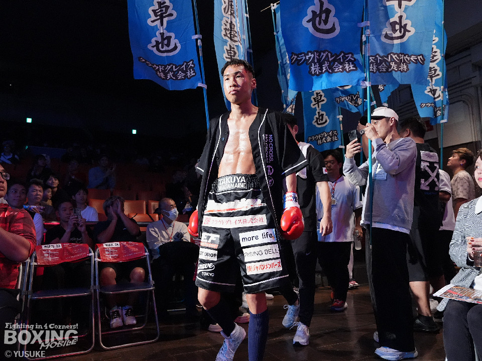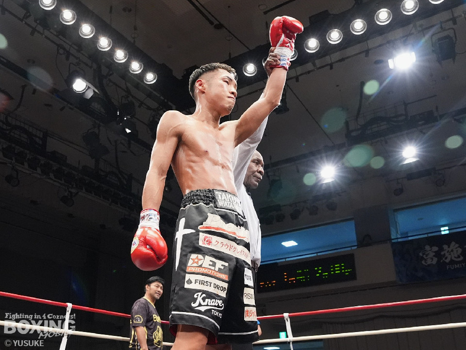 試合:元WBOアジアパシフィック王者の渡邉がジリジリと距離を詰めて単発の左フックをヒット。パティパーンはのらりくらりとつかみどころのない動きを見せた。2回、渡邉はプレスをかけて左ボディで動きを止めるとドンピシャの右ストレートでダウンをゲット。立ち上ったパティパーンだが、ダメージありと見たレフェリーは10カウントを数え上げた。渡邉は見事なKO勝ちで復活を遂げた。