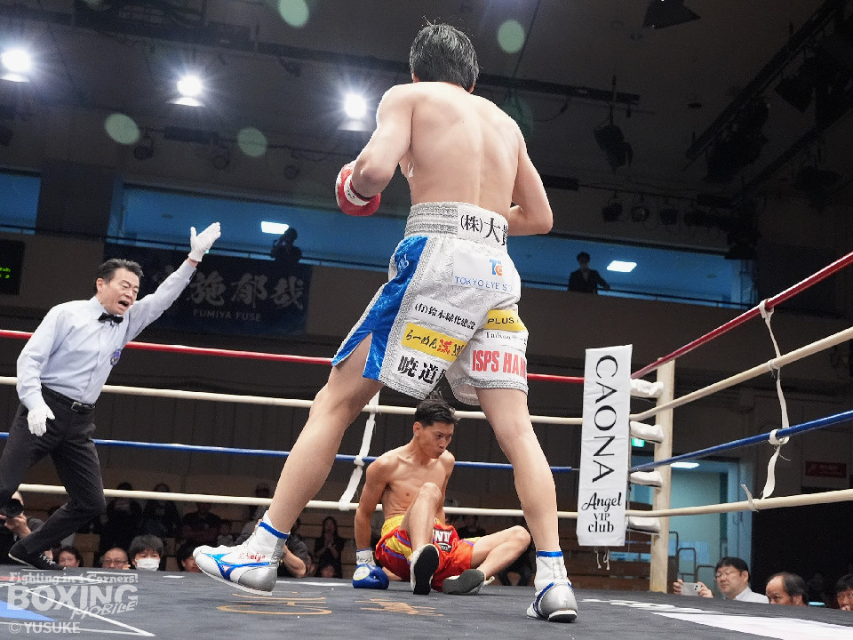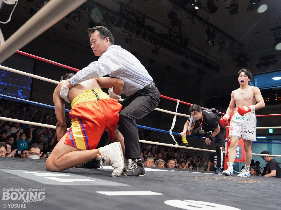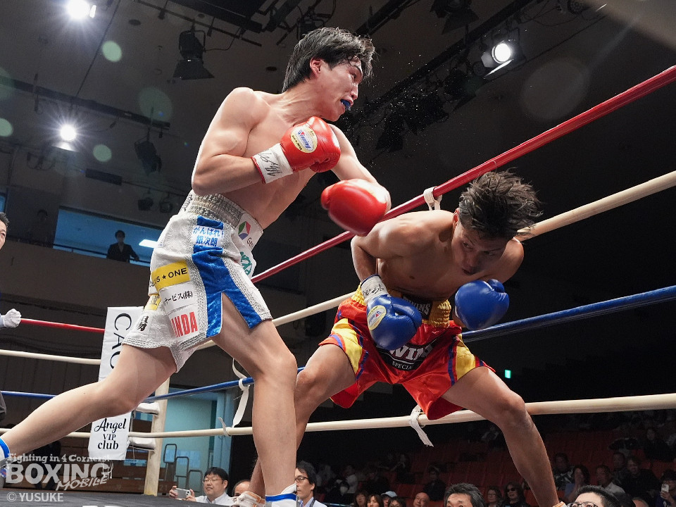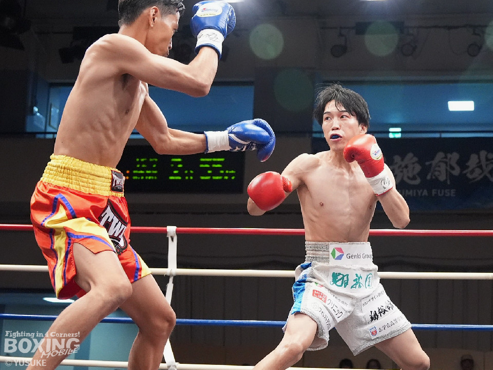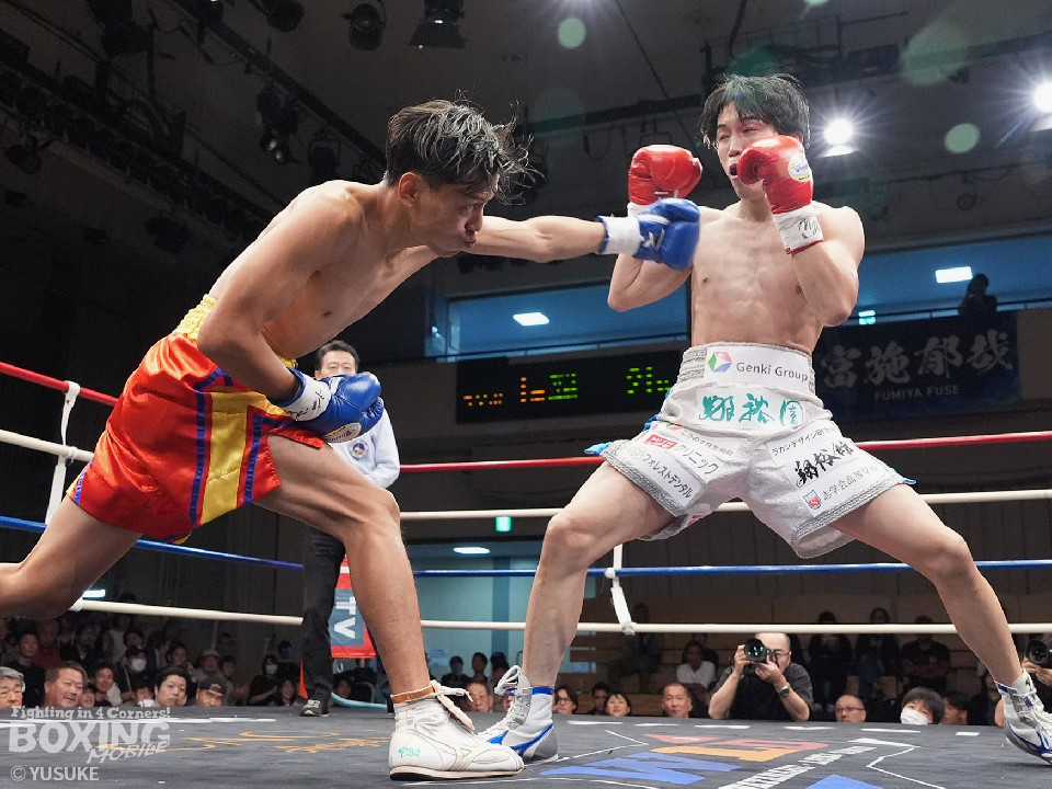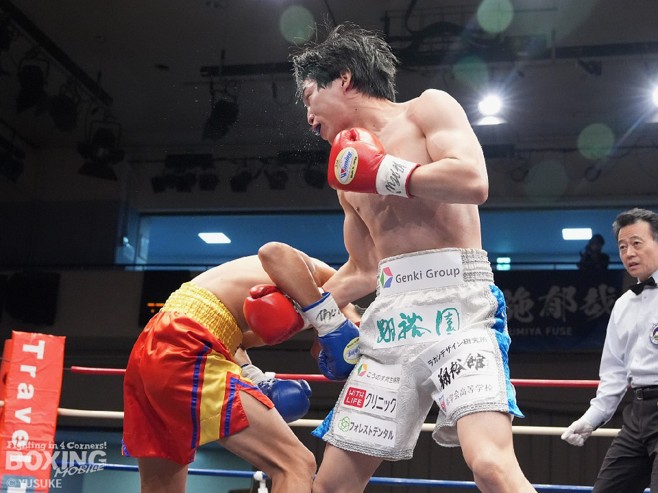 試合:サウスポー富施がプレスをかけて積極的に仕掛けるとワンツーでダウンを先取。再開後、攻撃の手を緩めず迫ると左ストレートで倒しレフェリーストップに持ち込んだ。ダメージが深いユッティチャイは担架で運ばれた。富施が初回KO勝ちでメインイベンターとしての役割を果たした。