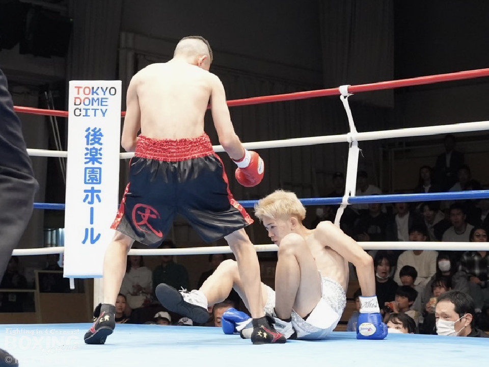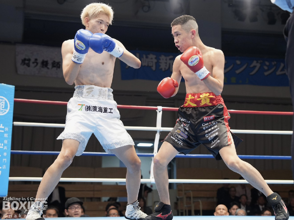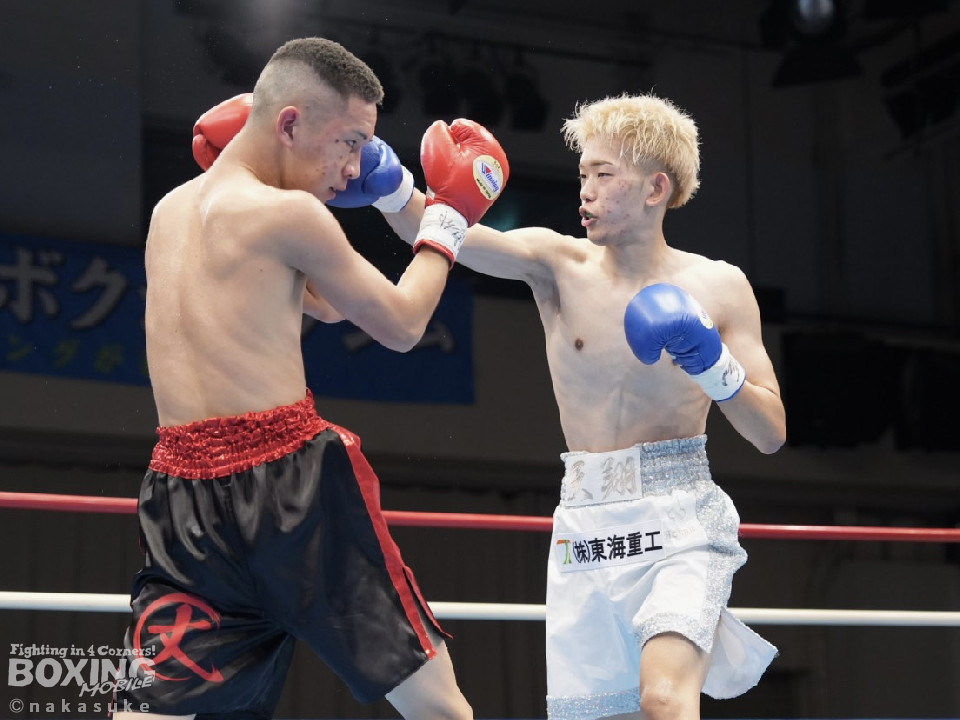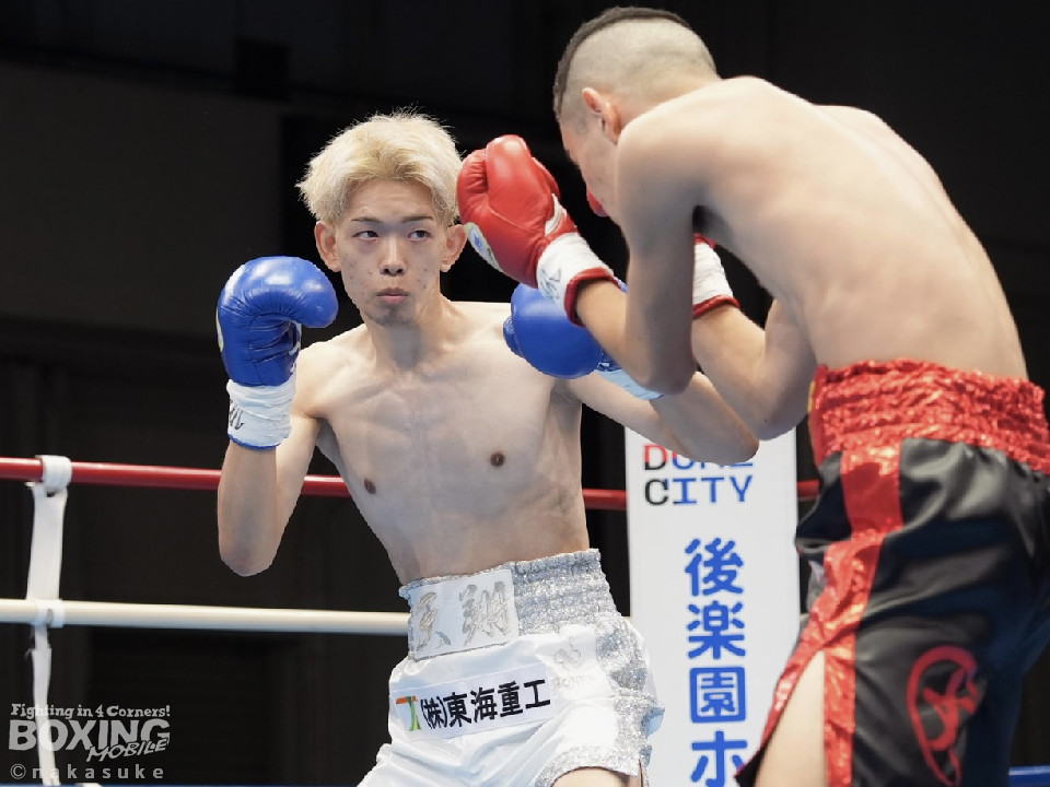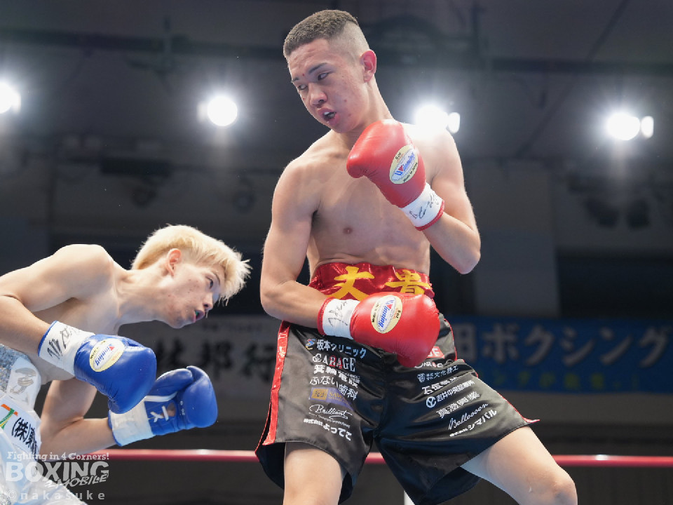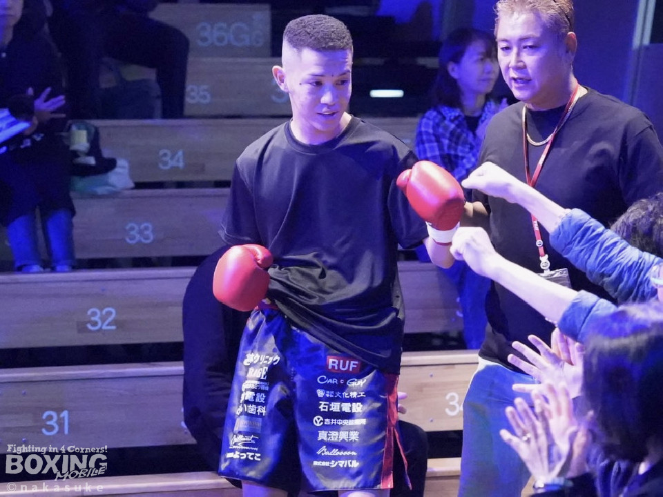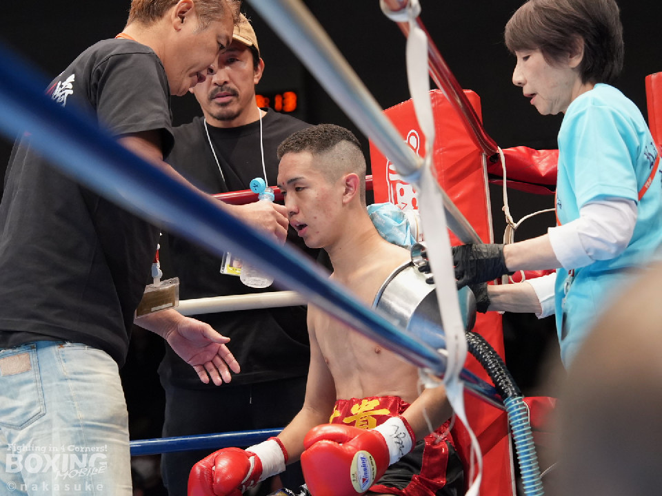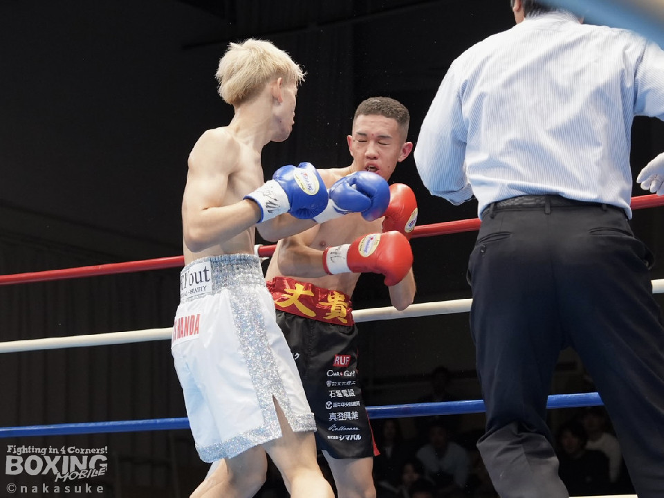 試合:開始10秒、サウスポー斉藤の左ストレートが火を噴きダウンを奪取。出鼻を挫かれた磯部だが、ジャブから立て直しを図るとワンツーを返した。2回、磯部はワンツーで顔を弾くと上下に打ち分け反撃。3回、磯部はワンツーでグラつかせるとパンチをまとめてフィニッシュにつなげた。磯部が逆転KOで初勝利を飾った。