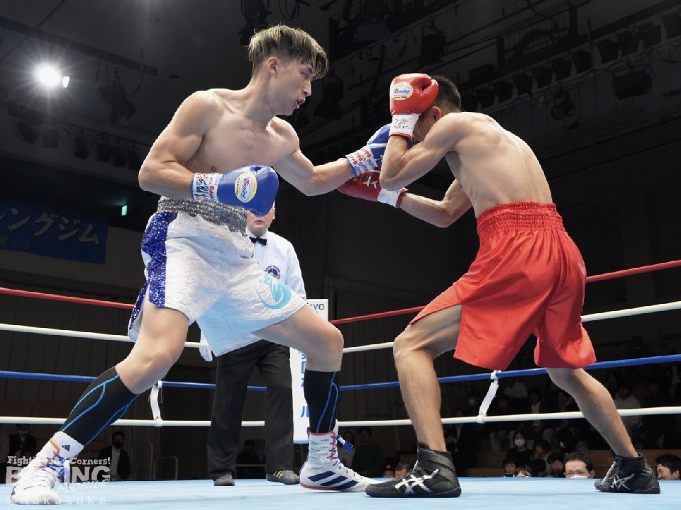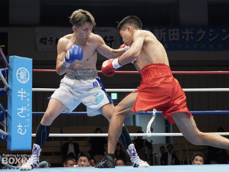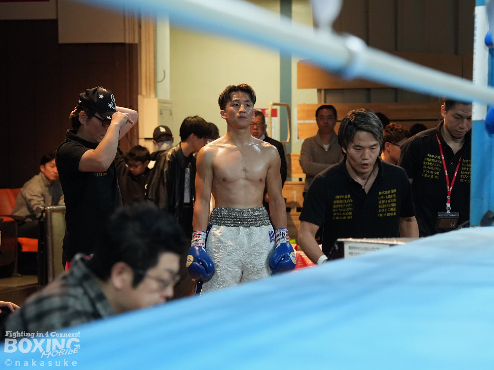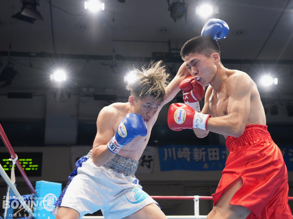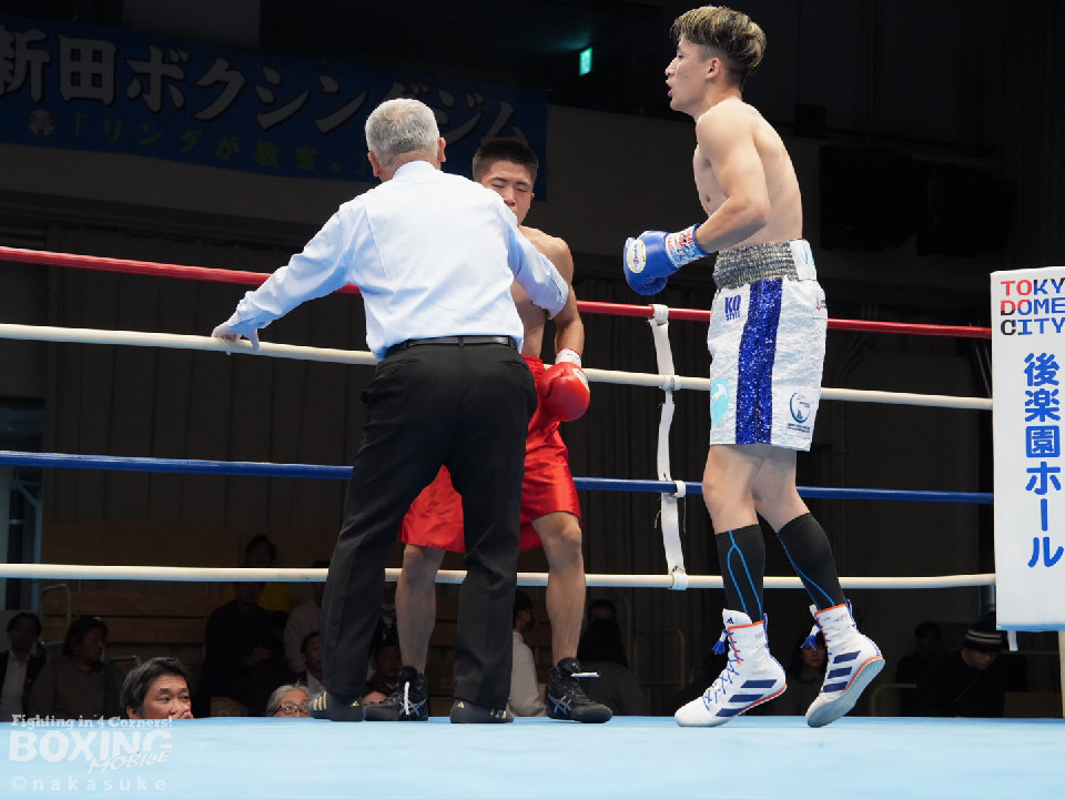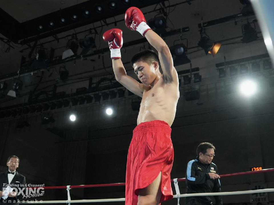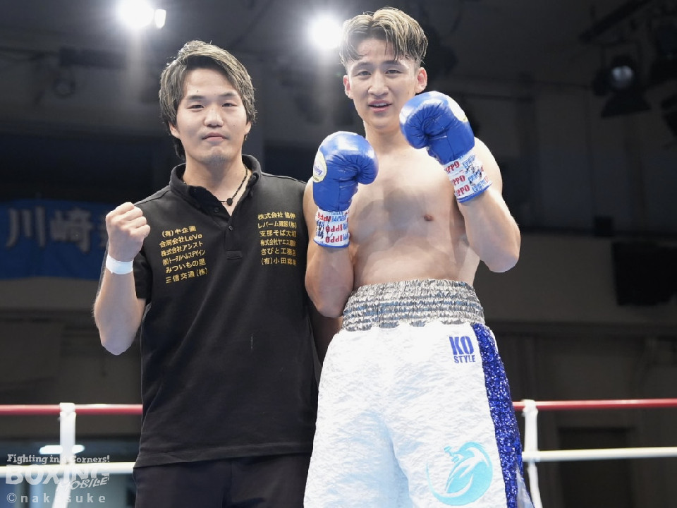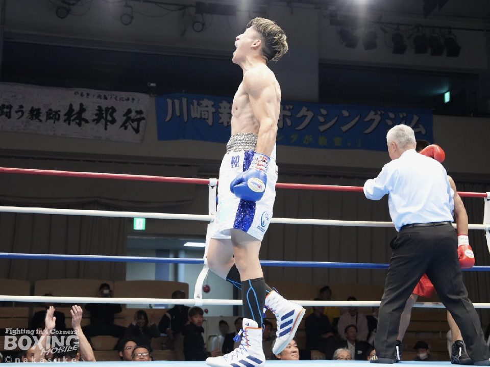 試合:渡邊がジャブでリズムを掴むとワンツーでガクッと腰を沈めさせてチャンス到来。高野も必死にパンチを返したが、渡邊は攻撃の手を緩めず。ワンツー連打でレフェリーストップに持ち込んだ。初勝利した渡邊は雄たけびを挙げた。