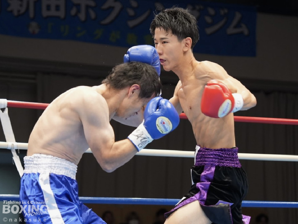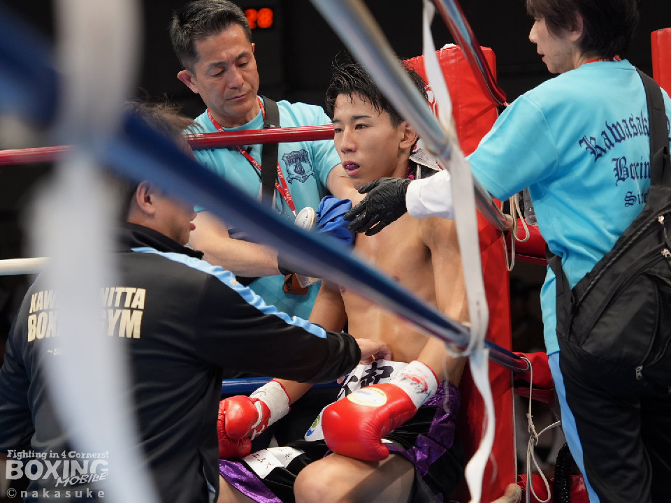 試合:脇が変則的な動きで右フックから仕掛けるが、内藤はジャブで突き放して対応。ワンツー左ボディを軸にペースを掌握した。2回、脇は左右フックを繰り出すが、内藤は左ボディを突き刺すと怒涛の連打でレフェリーストップに持ち込んだ。