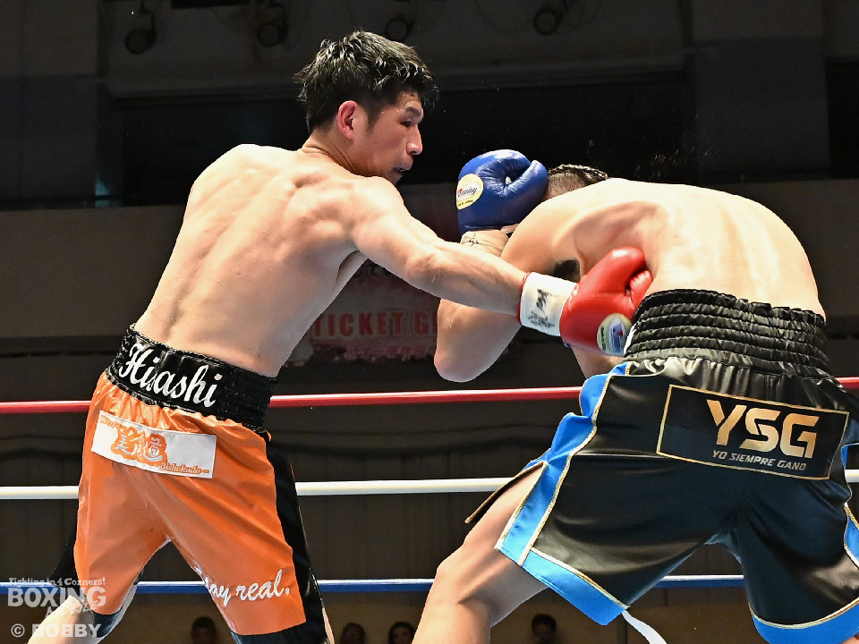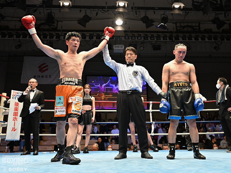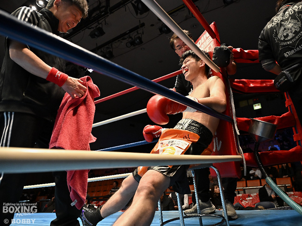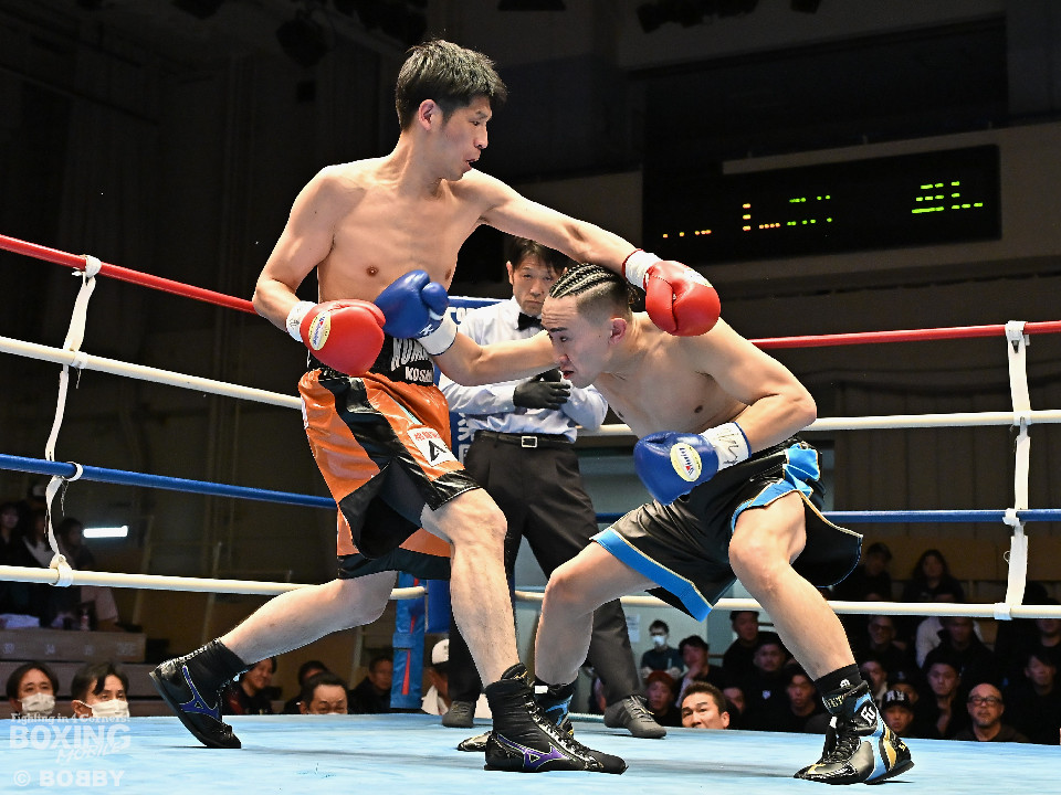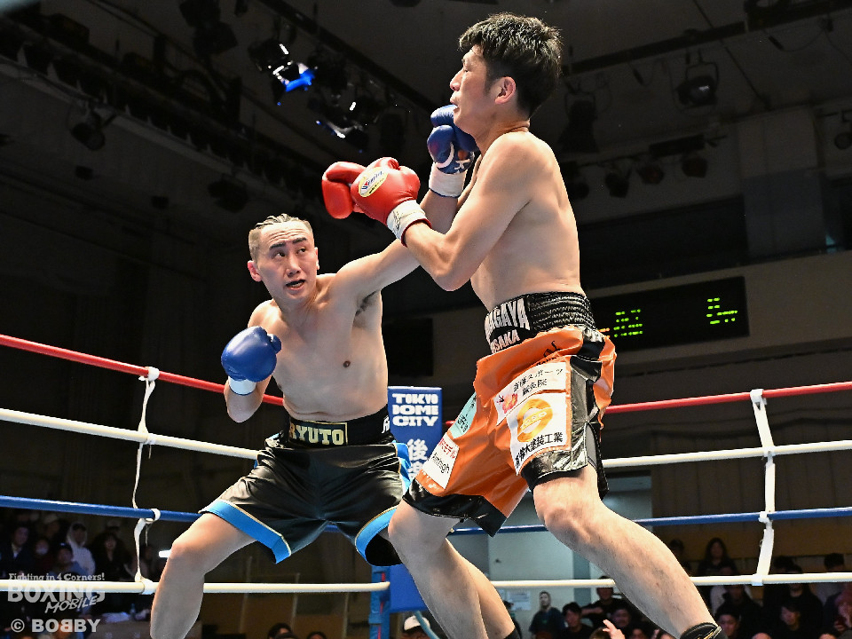 試合:ジャブでタイミングを測るサウスポー加藤に対し、新田は踏み込んで連打から左ボディを叩き、加藤をロープに押し込み連打をまとめた。2回、左右ボディを叩いた新田はパンチを上に返した。3回、左ボディから左ストレートにつなげた加藤はバランを崩した新田に右フックをヒットした。4回、ジャブから左アッパーにつなげた加藤は右ボディを叩き、ノーモーションの左をヒットした。5回、右ボディを叩いた加藤は、左アッパーから右を打ち下ろした。6回、ジャブと足で距離を作った加藤はジャブから左につなげ、右フックを返した。2者の支持を得た加藤が日本ランキングを守り抜いた。