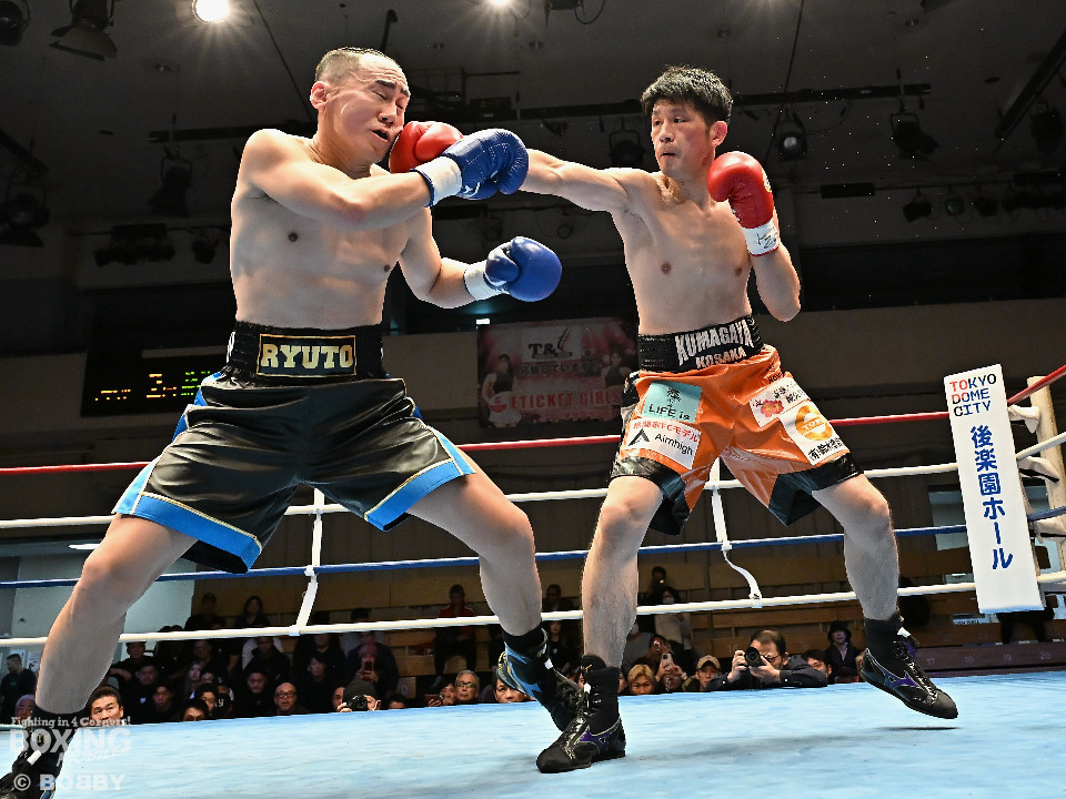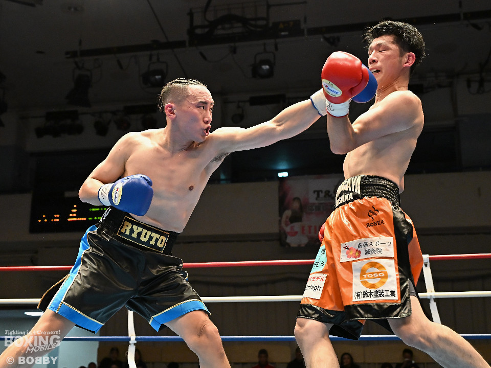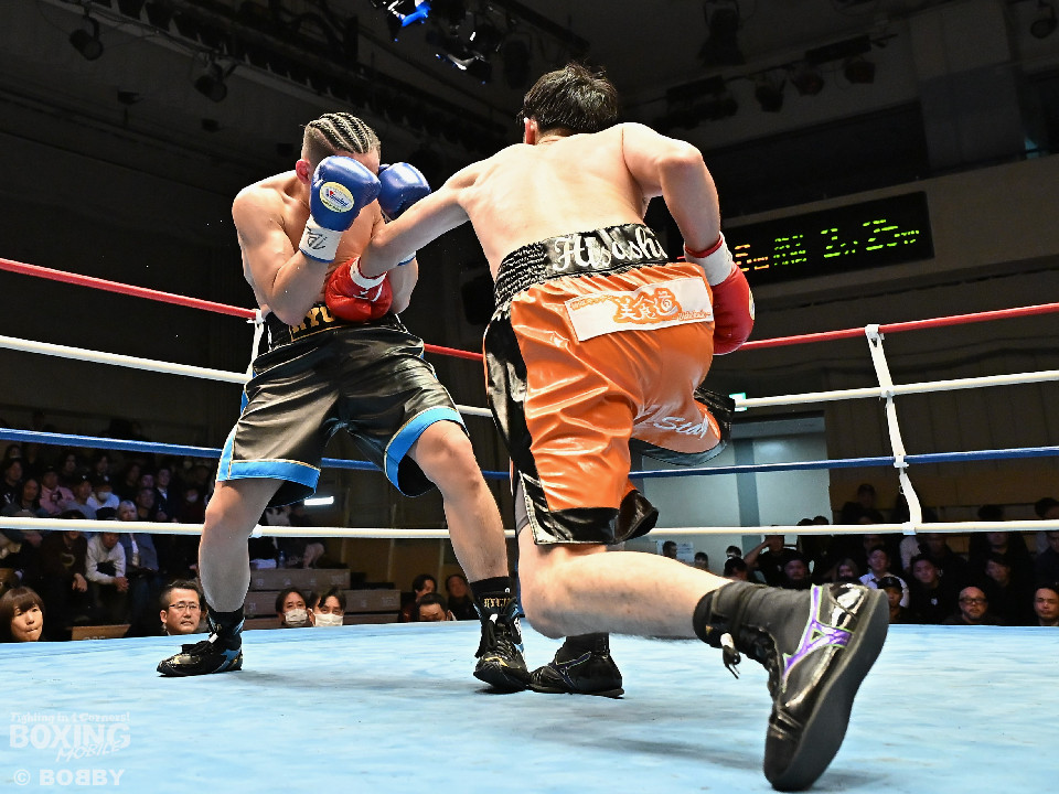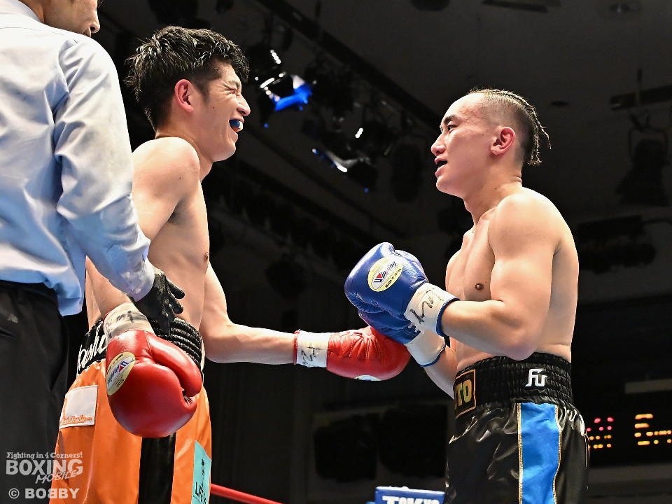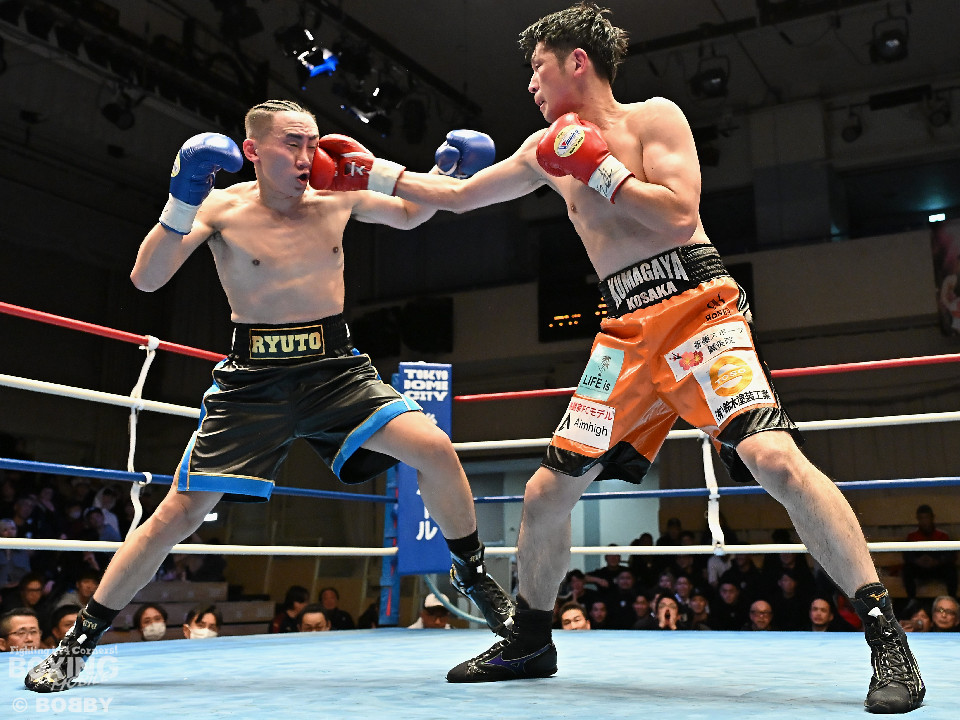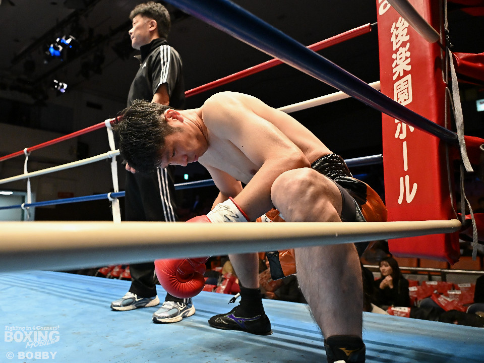 試合:ジャブでタイミングを測るサウスポー加藤に対し、新田は踏み込んで連打から左ボディを叩き、加藤をロープに押し込み連打をまとめた。2回、左右ボディを叩いた新田はパンチを上に返した。3回、左ボディから左ストレートにつなげた加藤はバランを崩した新田に右フックをヒットした。4回、ジャブから左アッパーにつなげた加藤は右ボディを叩き、ノーモーションの左をヒットした。5回、右ボディを叩いた加藤は、左アッパーから右を打ち下ろした。6回、ジャブと足で距離を作った加藤はジャブから左につなげ、右フックを返した。2者の支持を得た加藤が日本ランキングを守り抜いた。