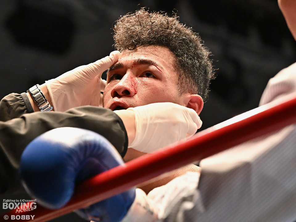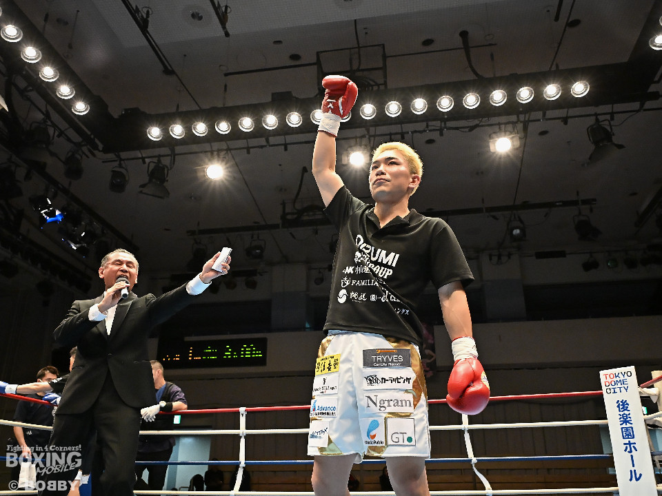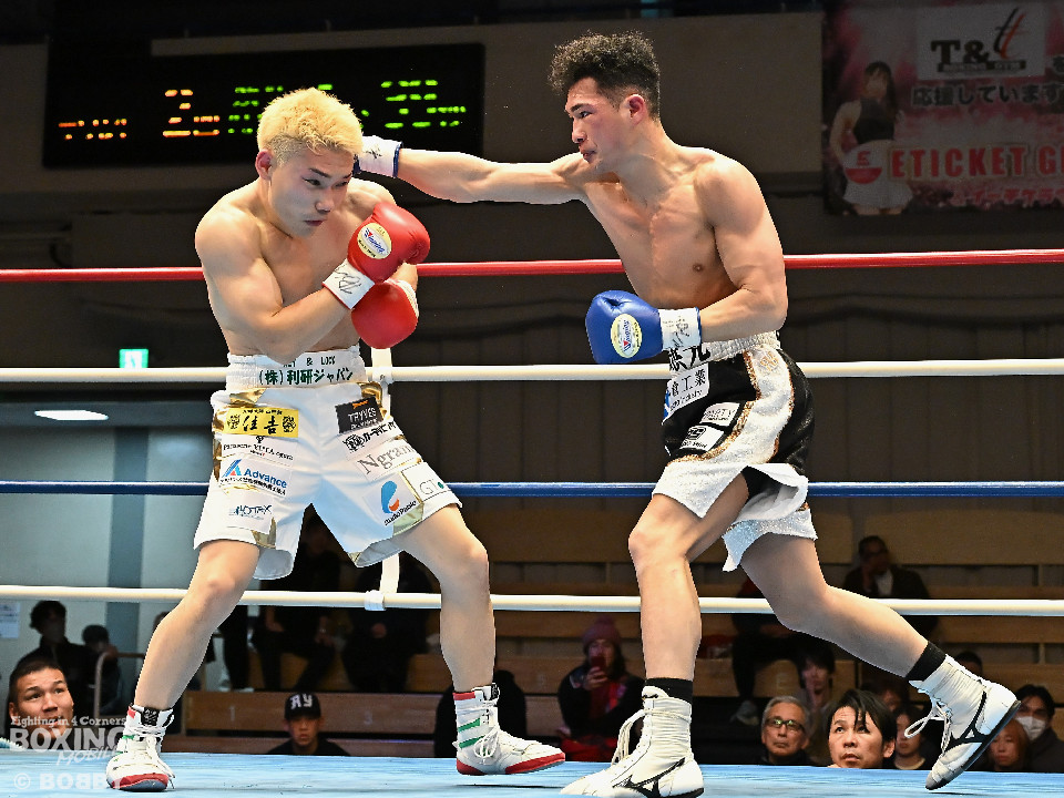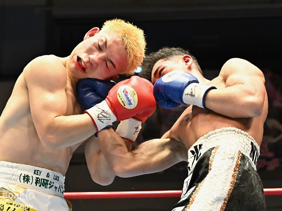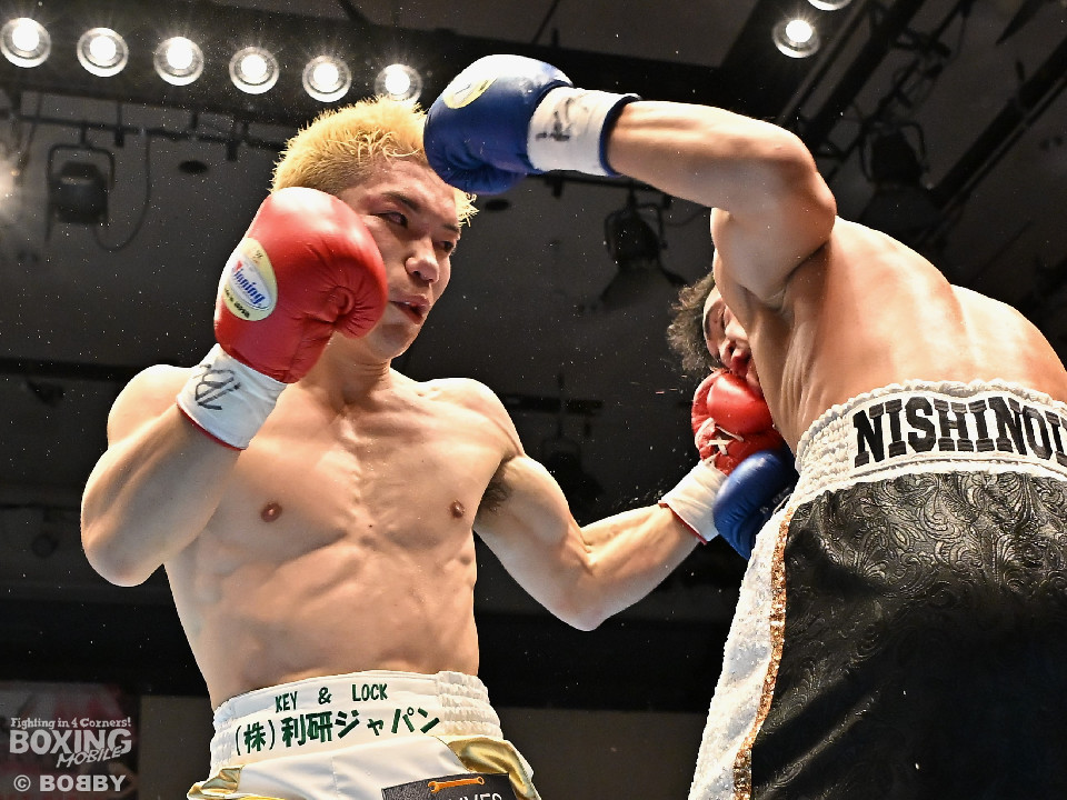 試合:ジャブから右フックで先制した鈴木はワンツーから左フックにつなげた。2回、ワンツーで仕掛ける西野入に対し、鈴木は西野入をコーナーに押し込むと左右ボディから右フックを返した。3回、ワンツーで攻勢をかけた西野入は左を上下に打ち分け、右アッパーで顔を跳ね上げた。4回、ワンツーを軸に攻勢をかける西野入はワンツー連打をまとめ、左ボディから右アッパーにつなげた。この回、西野入はバッティングにより左目上をカットした。5回、ジャブから連打につなげた西野入の打ち終わりに鈴木が右をヒットした。5ラウンドの途中で西野入の傷が深く、試合続行不可能としたレフェリーが試合をストップ。当該ラウンドを含む負傷判定となった。結果、2者の支持を集めた西野入が判定勝利を手にした。