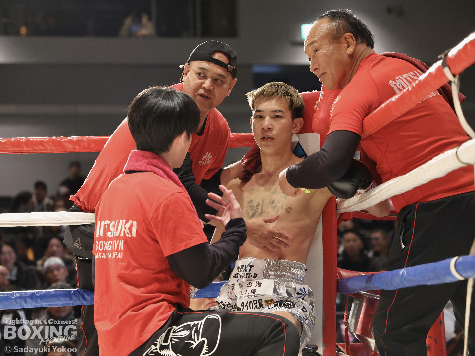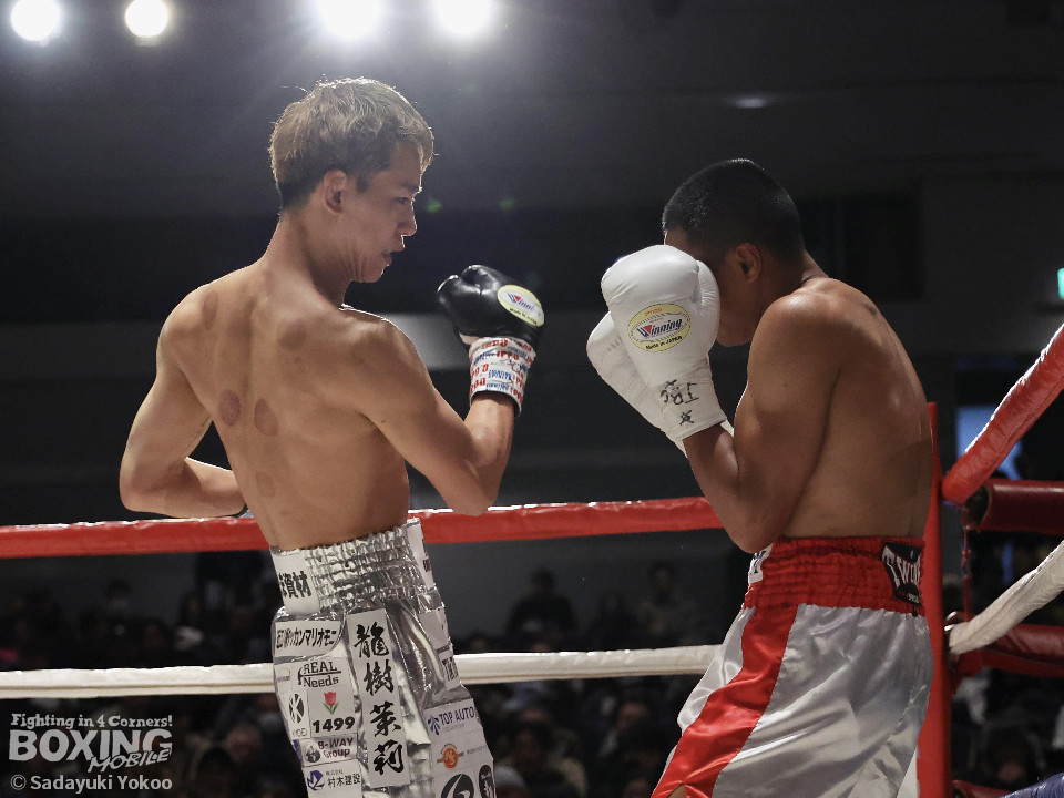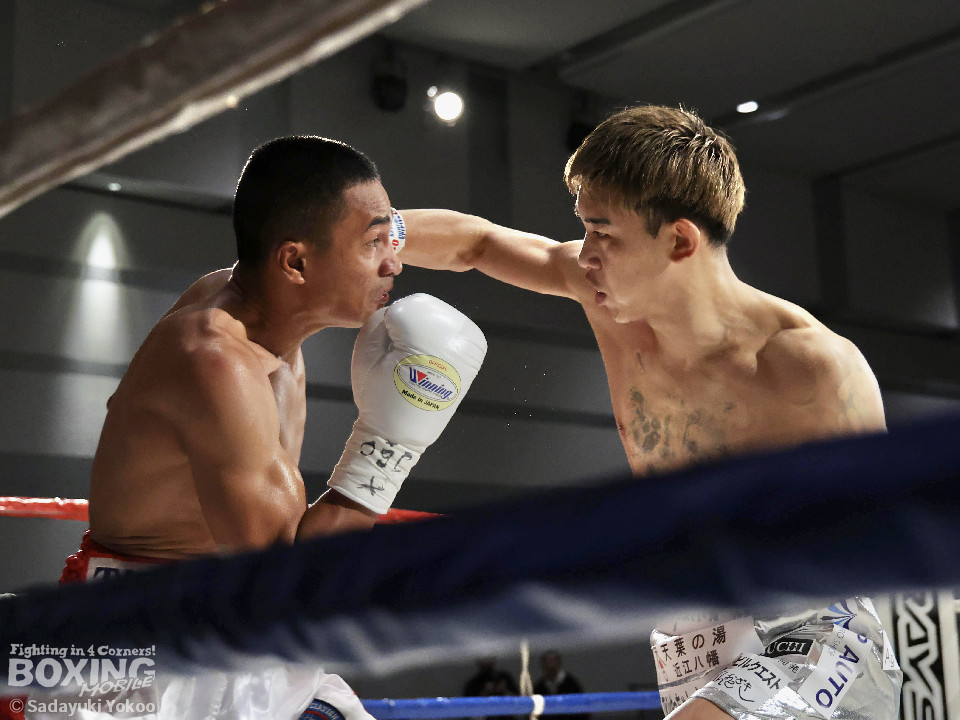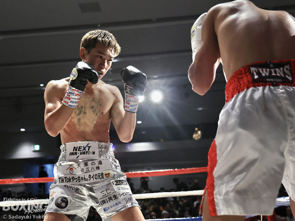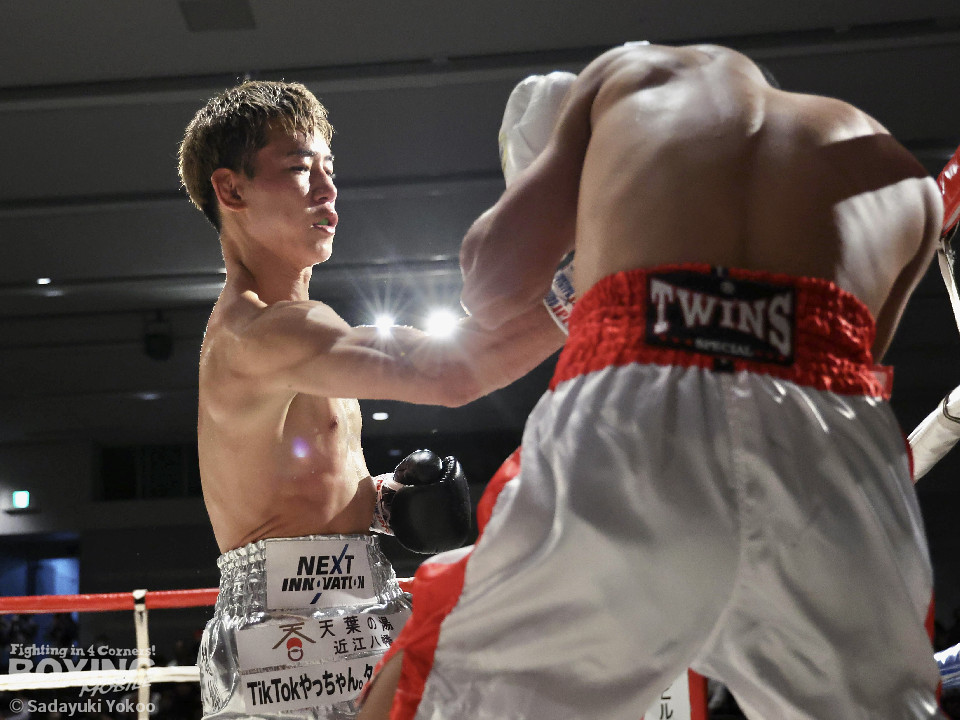 試合:中川がプレスをかけて右から切り込みアグレッシブな姿勢。2~3回、逃げ回る相手を追いかけた中川は左ボディ、右フックをヒット。しかし、決定打を決め切るまでには至らず。4回、時折左フックを繰り出すナッタポンだが、中川はボディワークで冷静に対応。6~7回、ナッタポンはのらりくらりと戦いながら要所で右フックをヒット。8回、中川は右クロスを決めると最後まで攻め立てたが、捕まえ切るまでには至らなかった。ジャッジ2者の支持を得た中川が4連勝を飾った。
