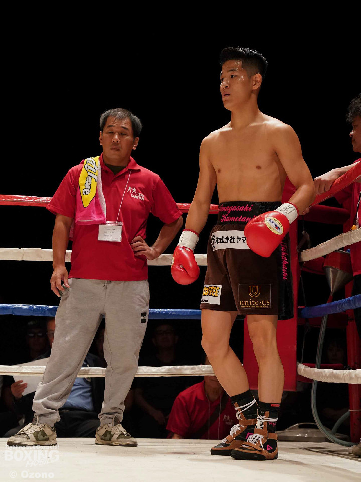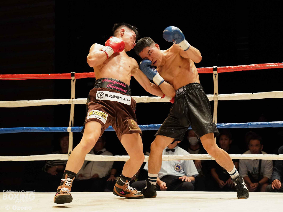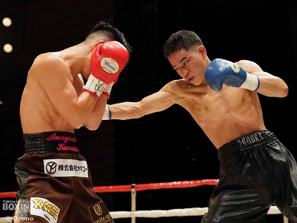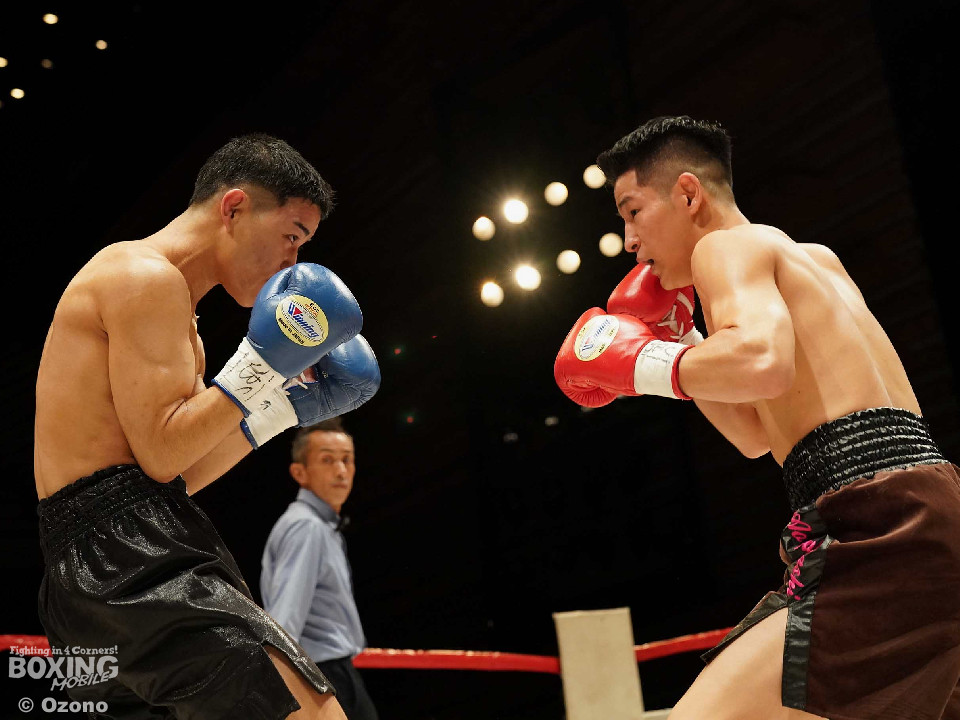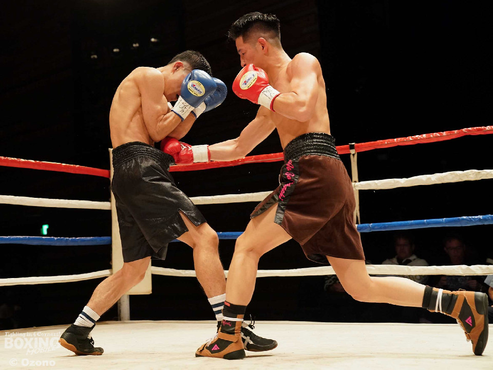 試合:高橋が丁寧にジャブを突きながら右ボディアッパー、左ボディで先制攻撃。2回、サウスポー岡久は前に出て左オーバーハンドを繰り出すが、髙橋は冷静に対応。3回、髙橋はプレスをかけてワンツーで顔を弾くとラウンド終盤には左ボディで動きを止めてポイントを加点。岡久はヒッティングで左目尻をカットした。4回、髙橋は左ボディで効かせるとボディにパンチを集めて勝利を決定づけた。